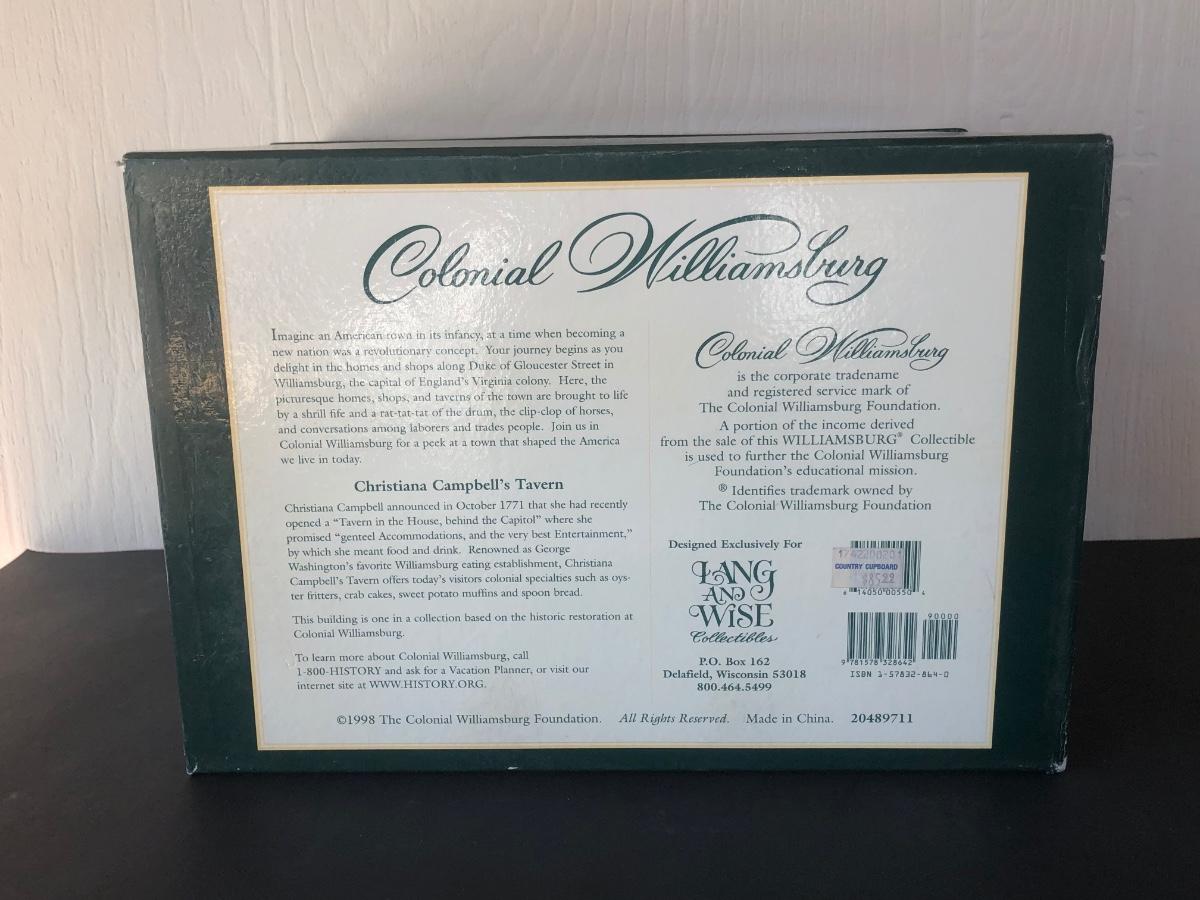 LOT 7X: 1998 Lang & Wise Collectibles Colonial Williamsburg #11 "Christiana Campbell's Tavern" w/ Box (20489711)