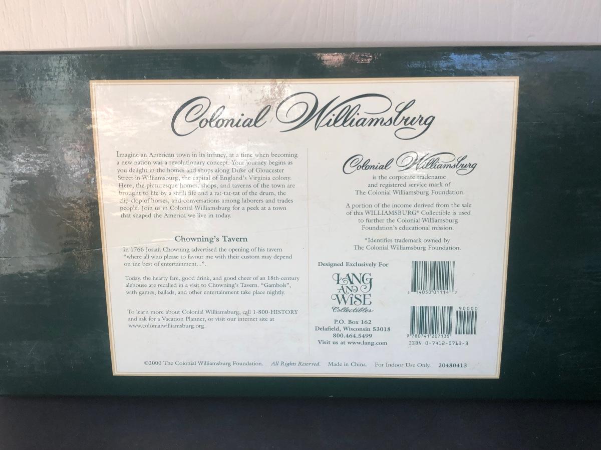 LOT 8X: 2000 Lang & Wise Collectibles Colonial Williamsburg #13 "Chowning's Tavern" w/ Box (20480413)