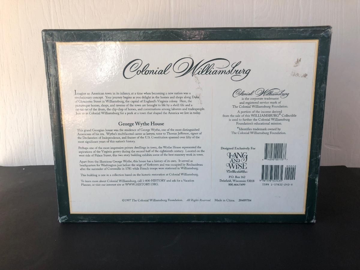 LOT 9X: 1997 Lang & Wise Collectibles Colonial Williamsburg #4 "George Wythe House" w/ Box (20489704)