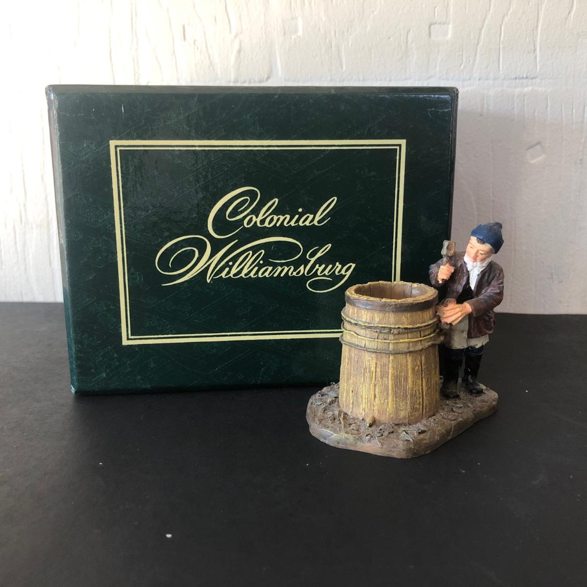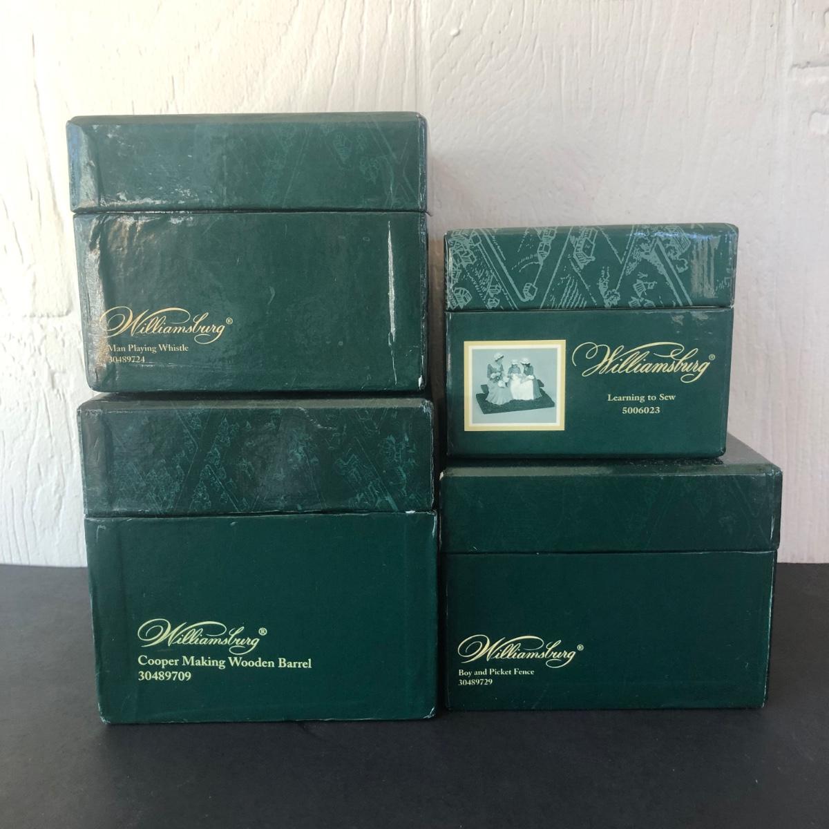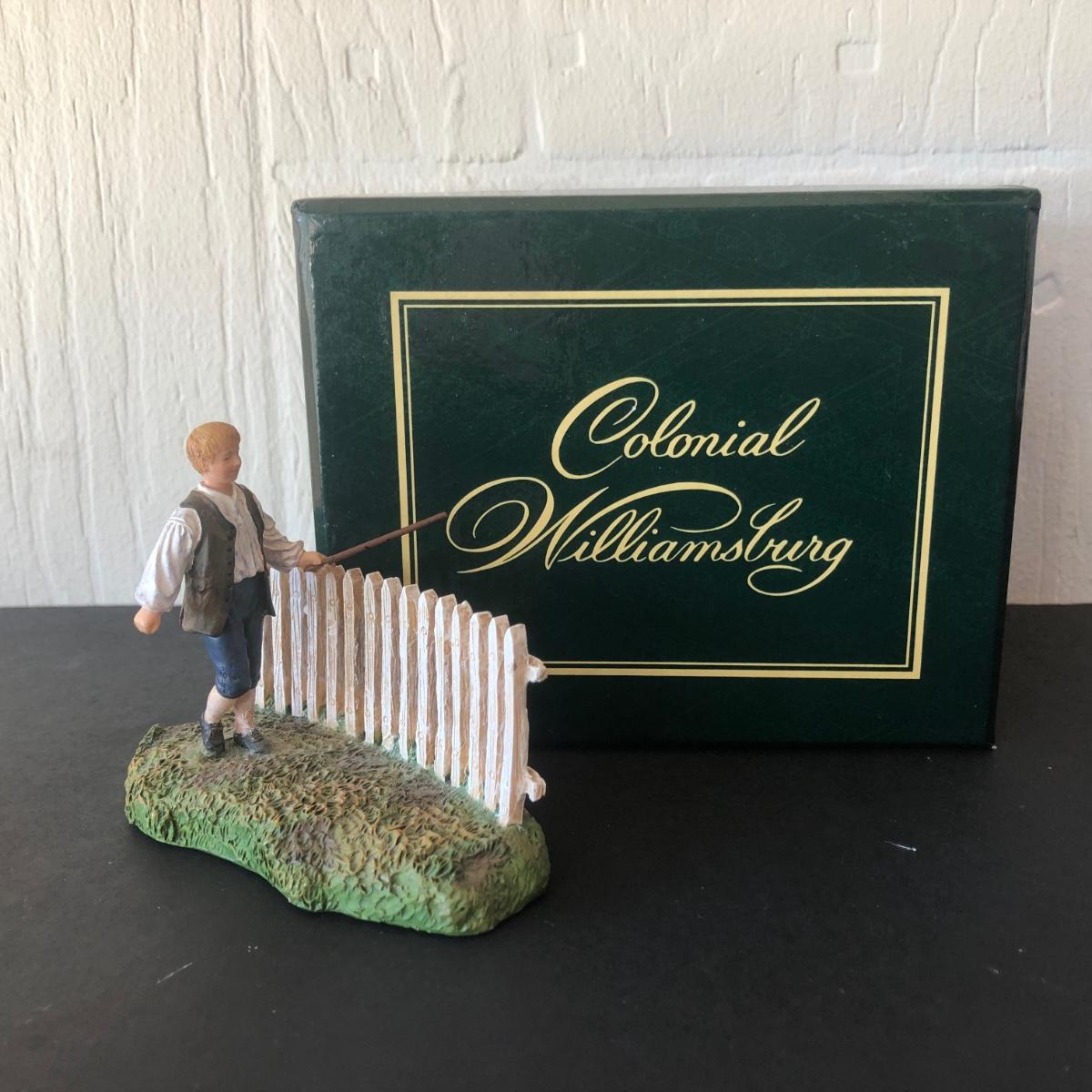 LOT 15X: Colonial Williamsburg Collectibles w/ Boxes - 1998 Man Playing Whistle (30489724), 1997 Cooper Making Wooden Barrel (30489709), 1998 Boy & Picket Fence (30489729) & More