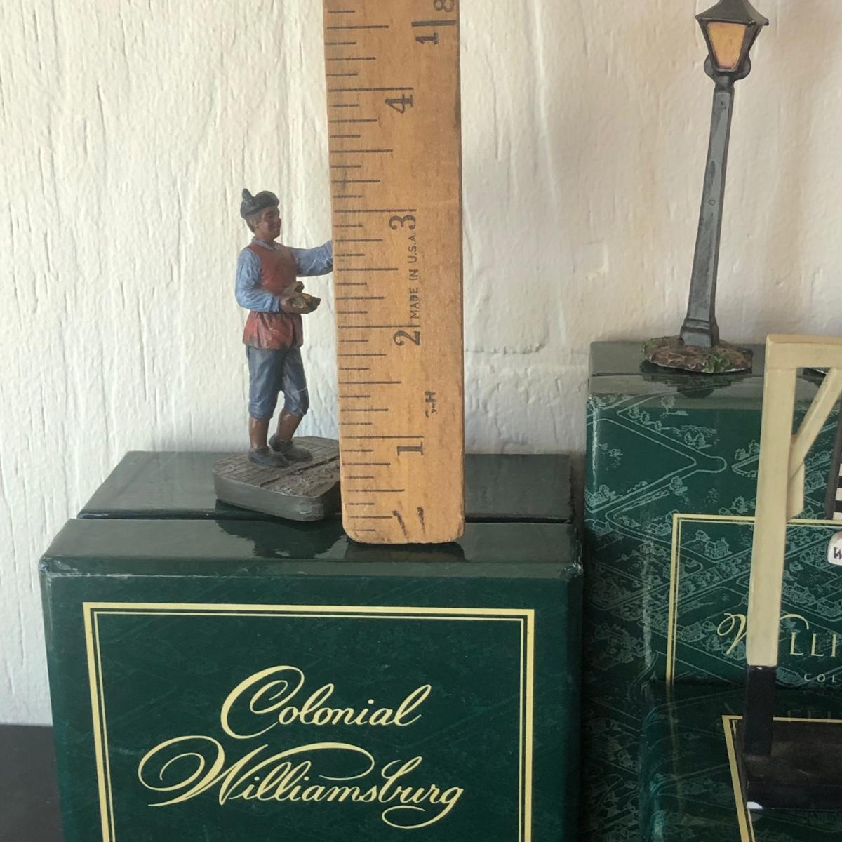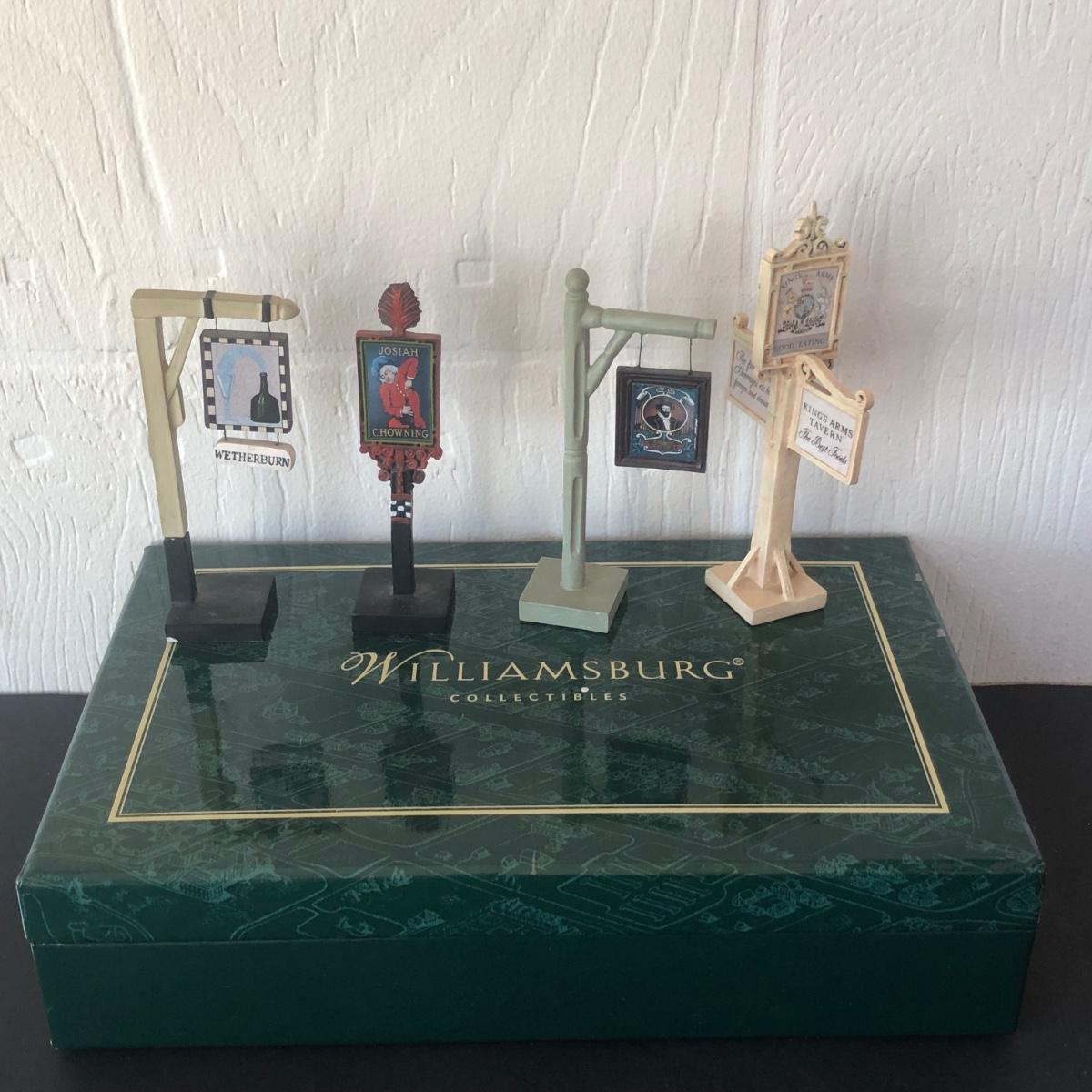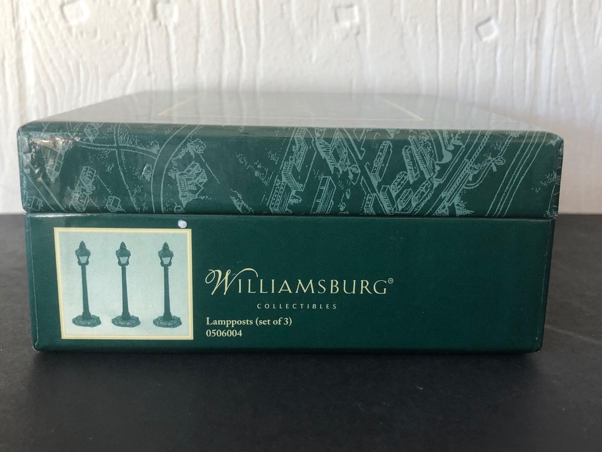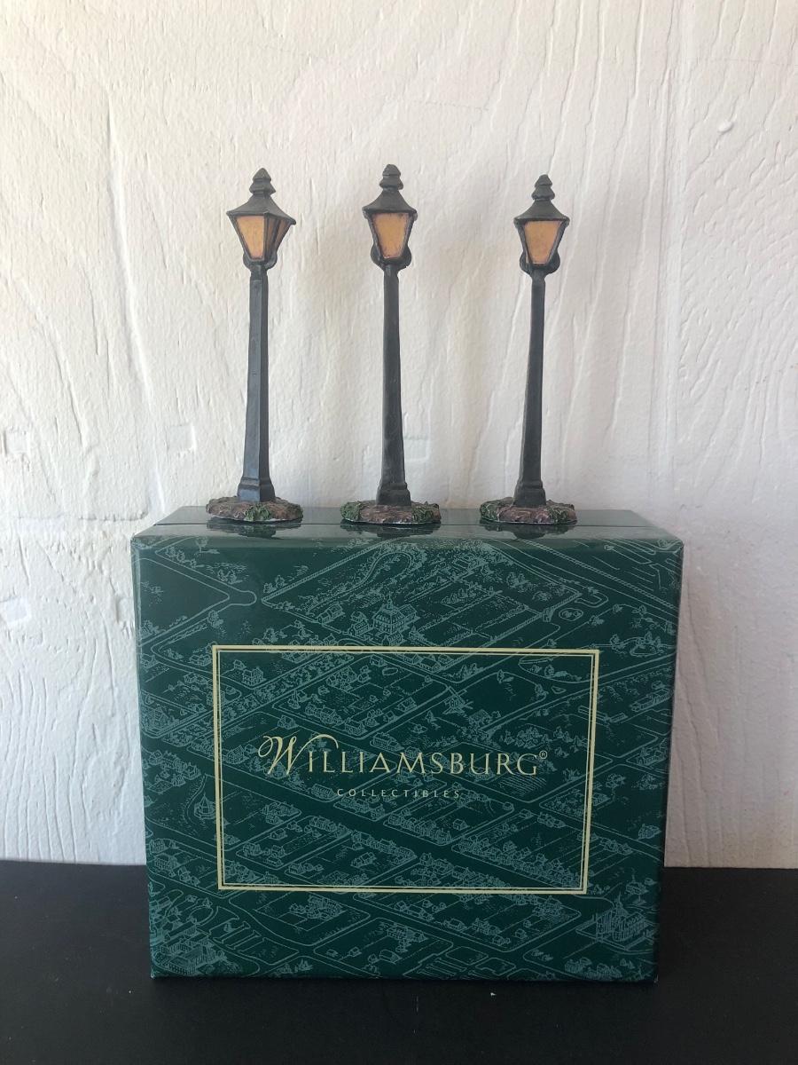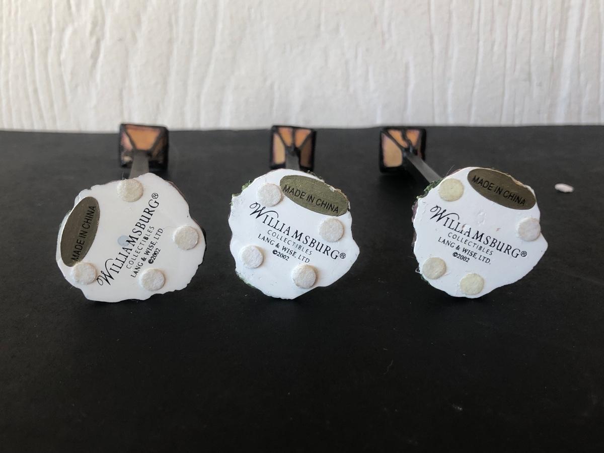 LOT 17X: Colonial Williamsburg Collectibles w/ Boxes - 2002 Lampposts (0506004), 1998 Man Tending Cresset (30489720) & 2004 Tavern Signs (0506013)