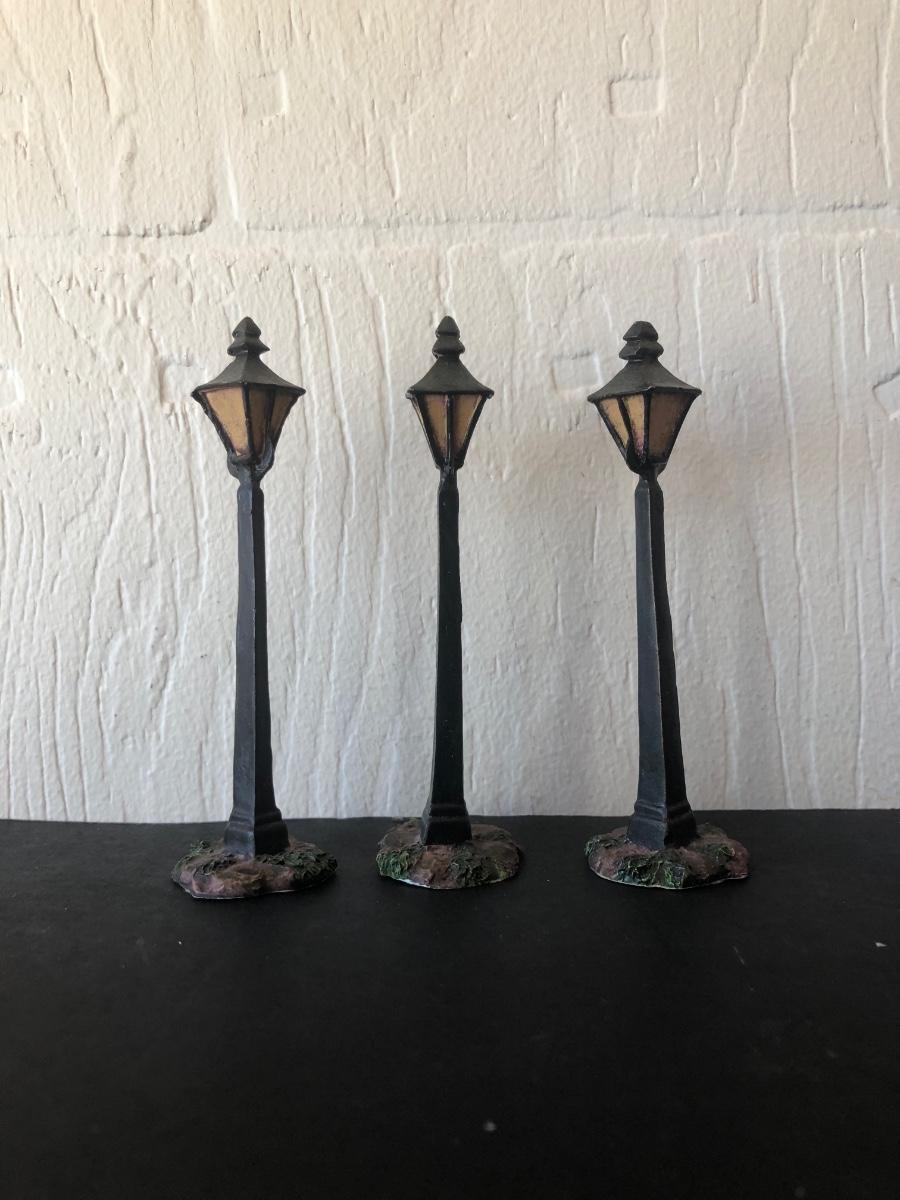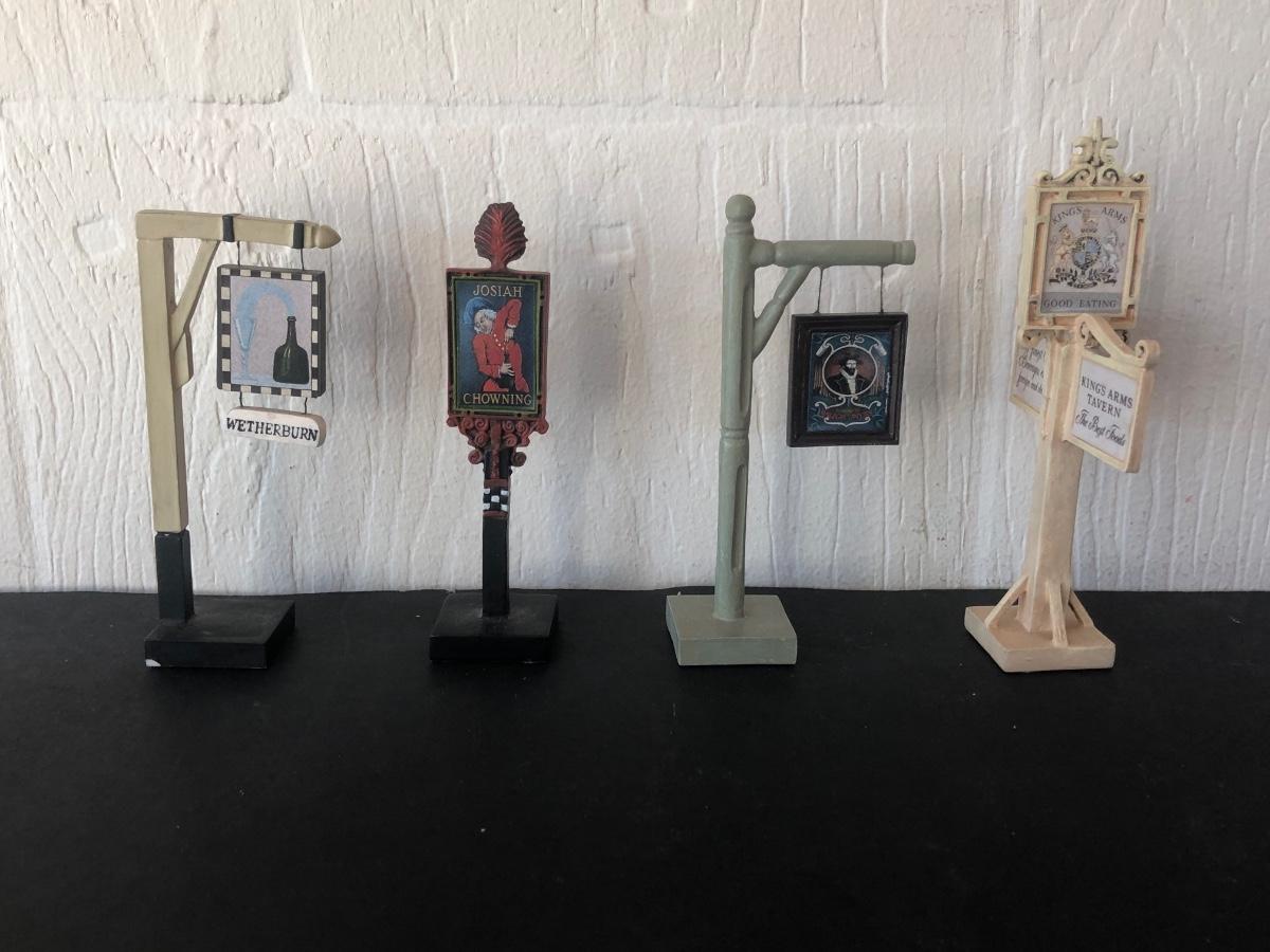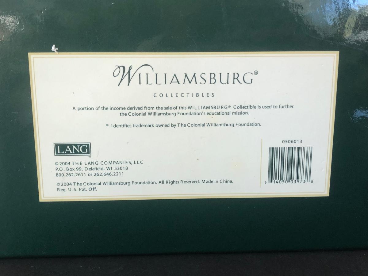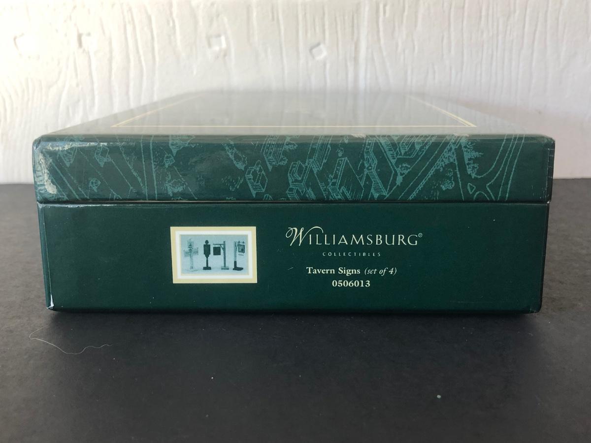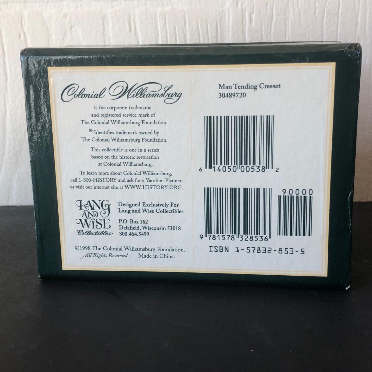 LOT 17X: Colonial Williamsburg Collectibles w/ Boxes - 2002 Lampposts (0506004), 1998 Man Tending Cresset (30489720) & 2004 Tavern Signs (0506013)