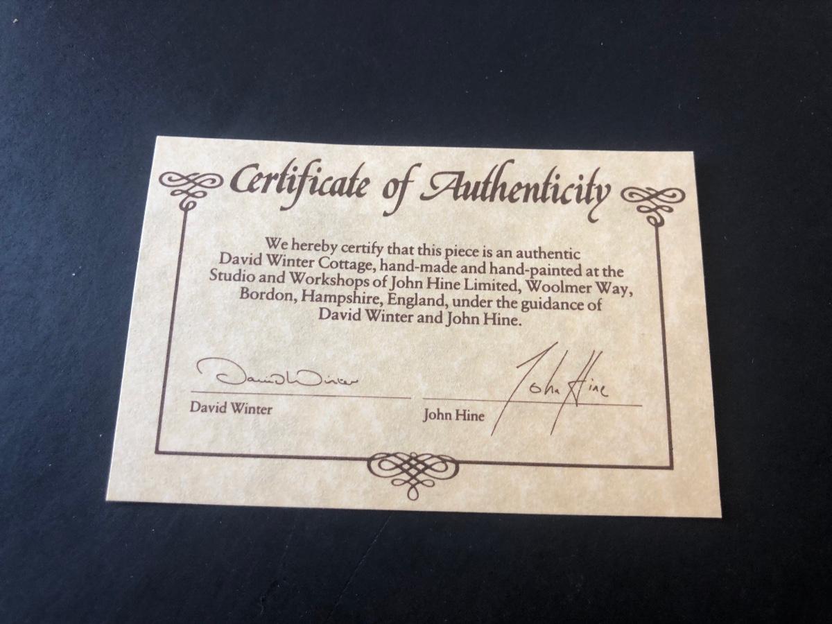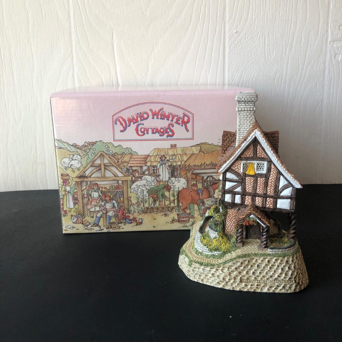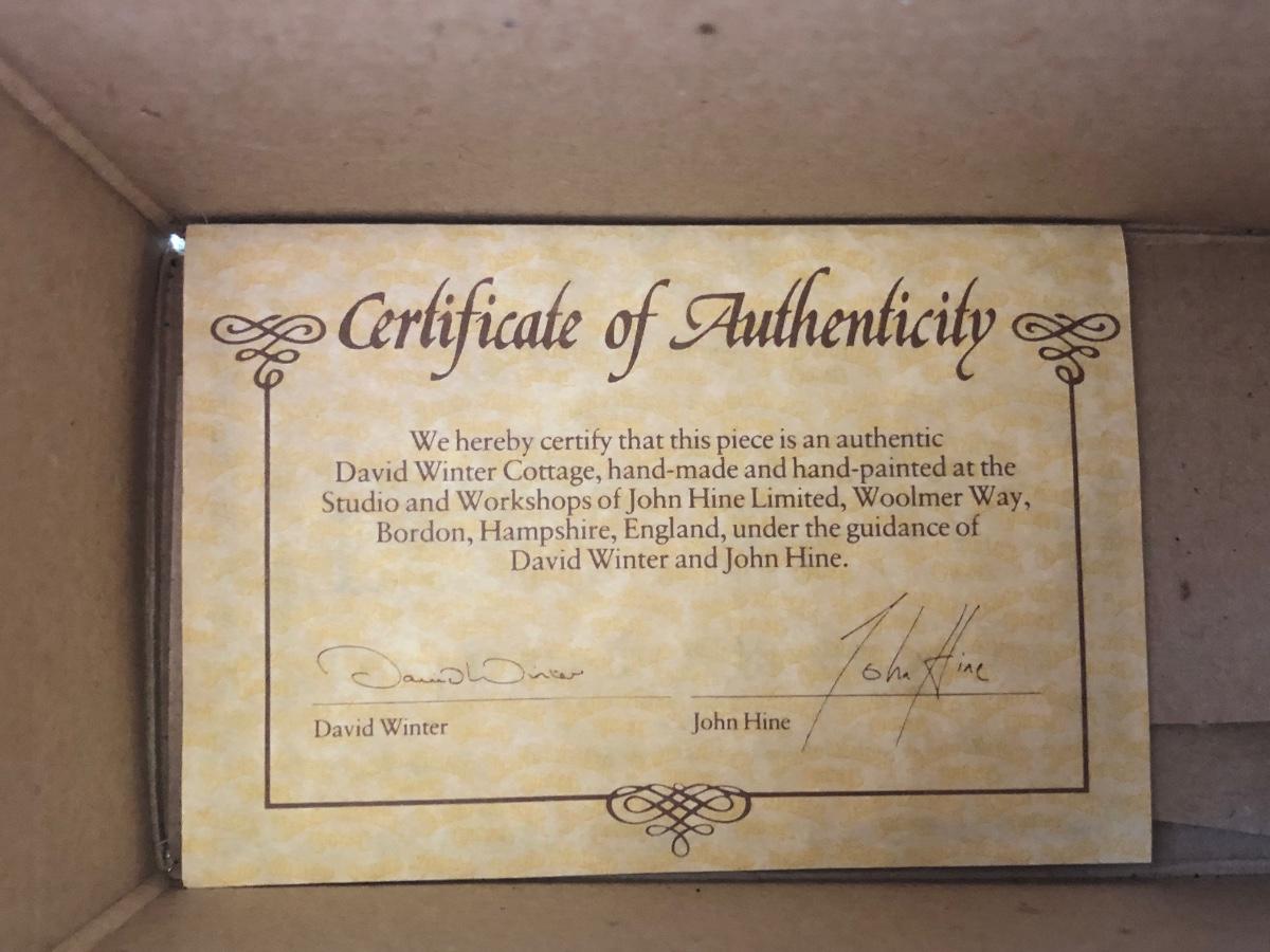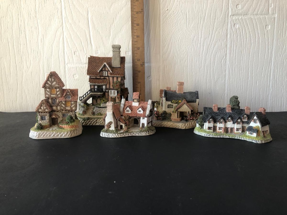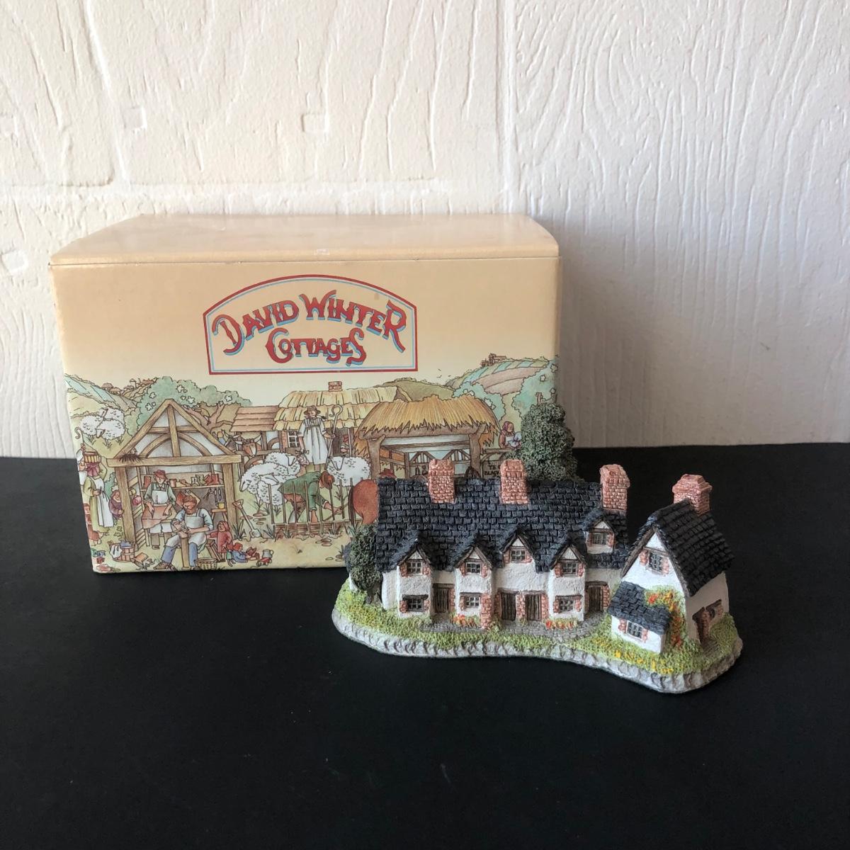 LOT 21X: David Winter Cottages w/ Boxes - 1987 Lace Makers Cottage, 1987 Lock Keepers Cottage, 1993 The Quack's Cottage, 1985 Craftsmens Cottages & 1985 The Schoolhouse