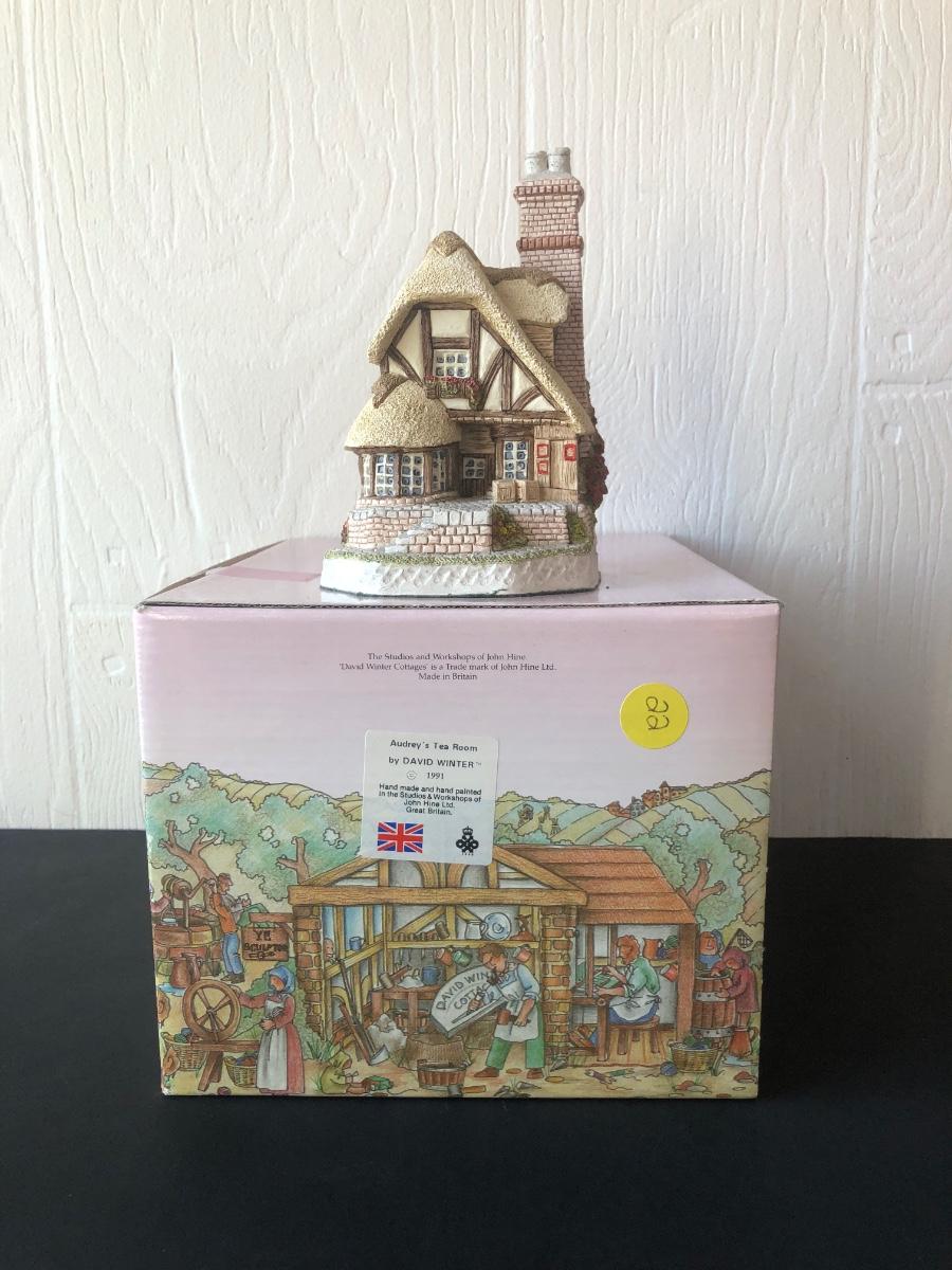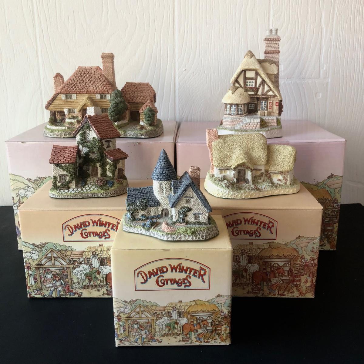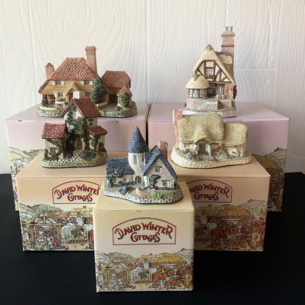 LOT 22X: David Winter Cottages w/ Boxes - 1985 Kent Cottage, 1991 Audrey's Tea Room, 1982 Ivy Cottage, 1980 Rose Cottage & 1985 Vicarage