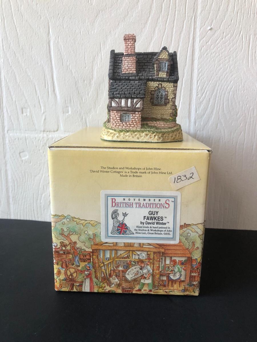 LOT 24X: David Winter Cottages British Traditions w/ Boxes - Grouse Moor Lodge, Pudding Cottage, Guy Fawkes & Harvest Barn