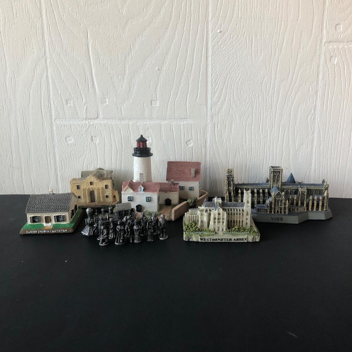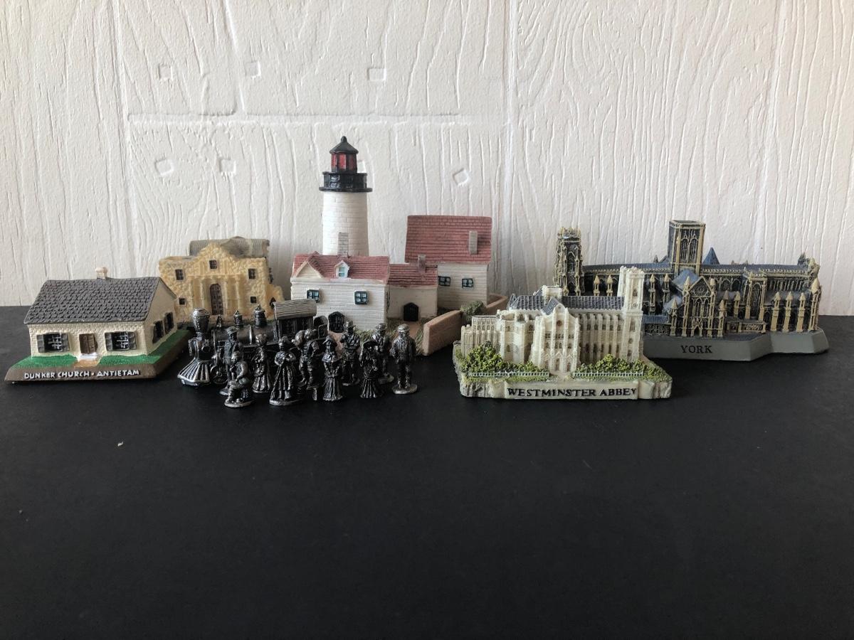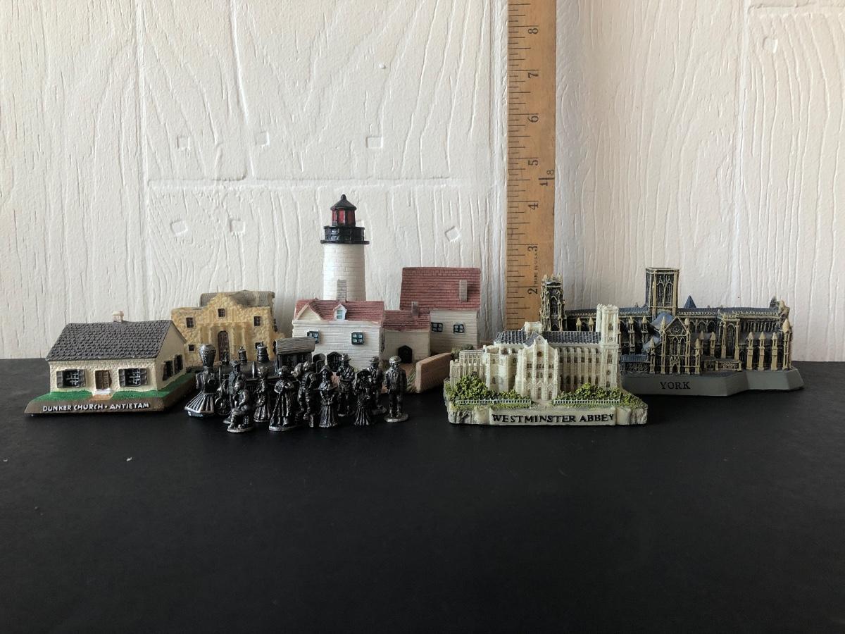 LOT 30X: Miniature Buildings - Westminster Abbey, York Minster, Dunker Church (Antietam), 1993 Scaasis Originals Lighthouse, The Alamo & More