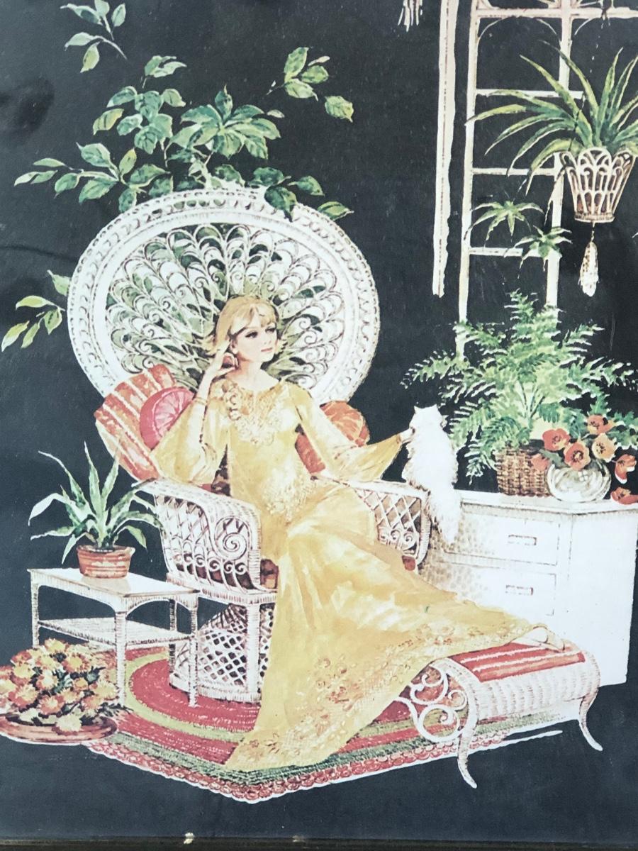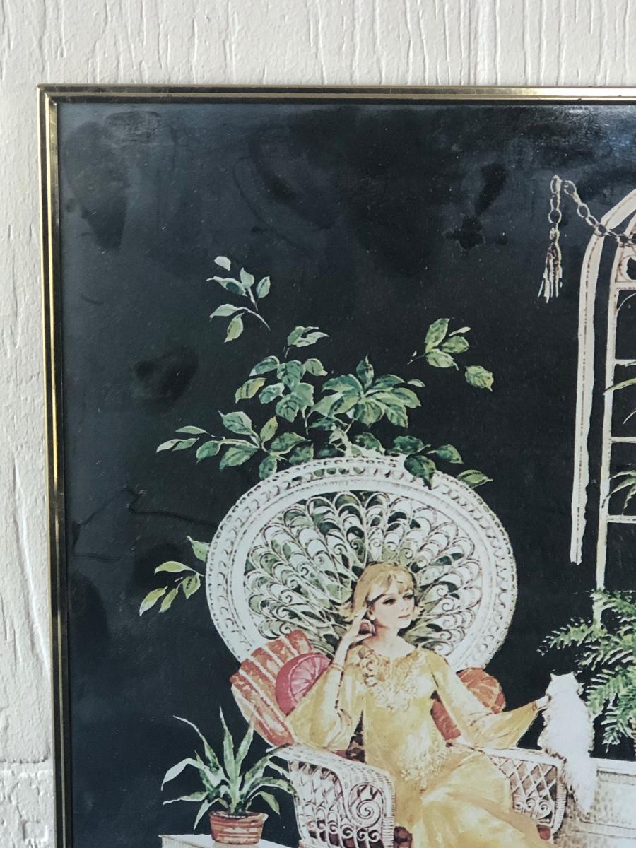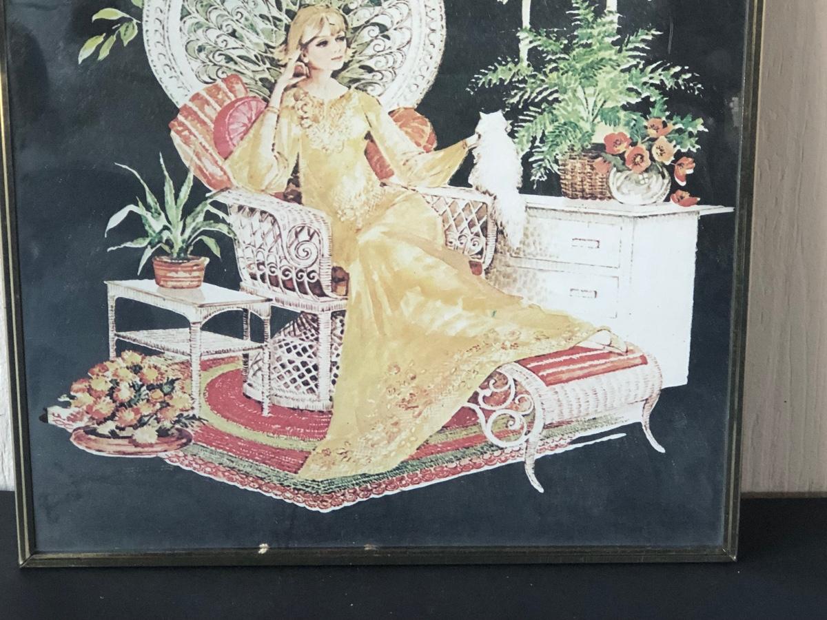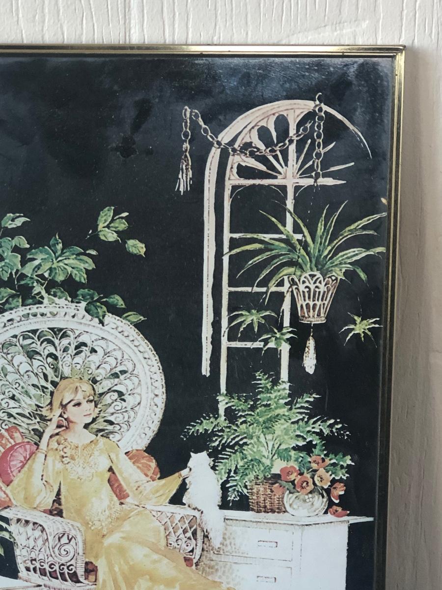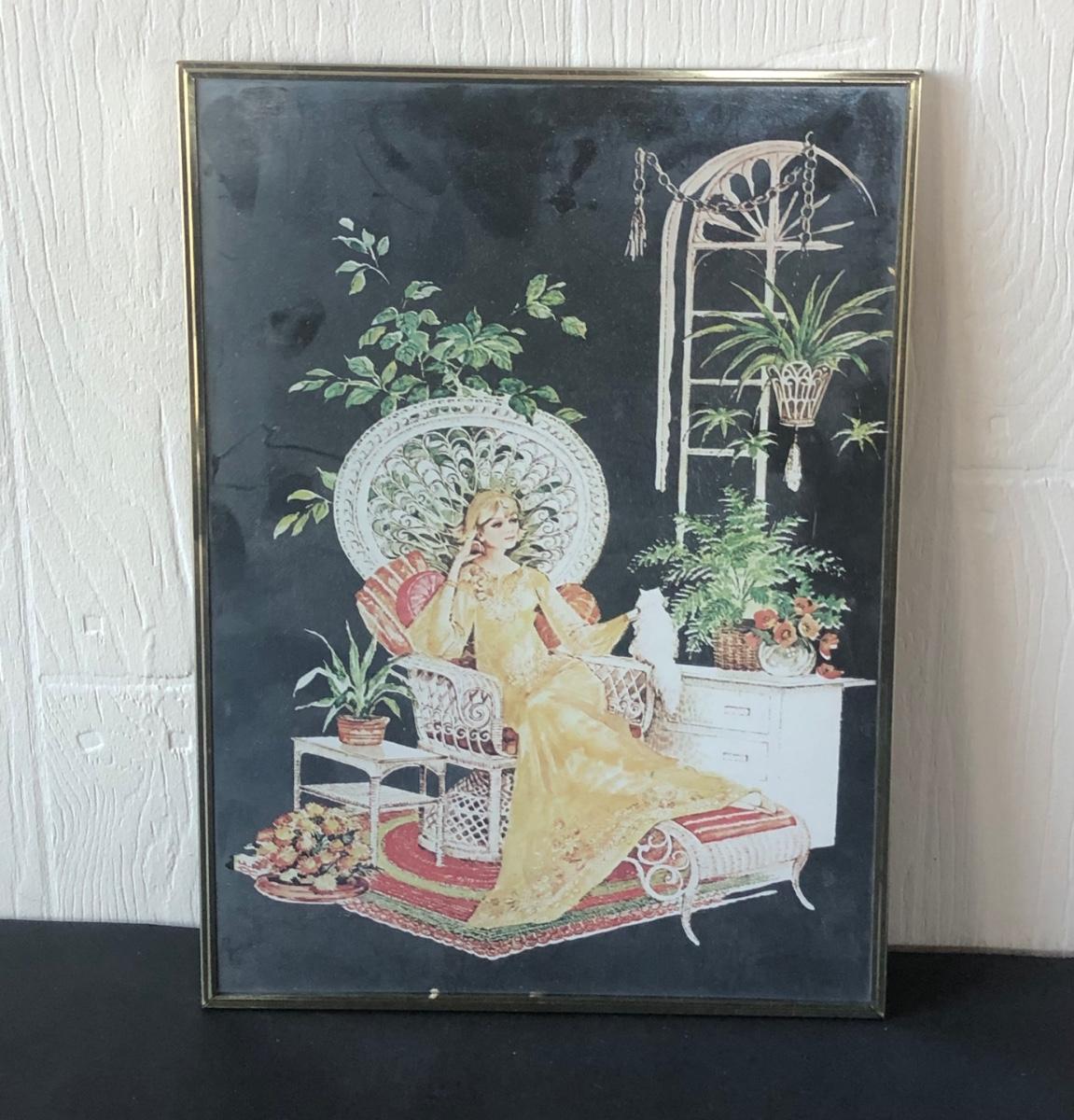 LOT 33X: Vintage Art Deco Style Mirror Serigraphy / Screen Print of Woman in Rattan Armchair