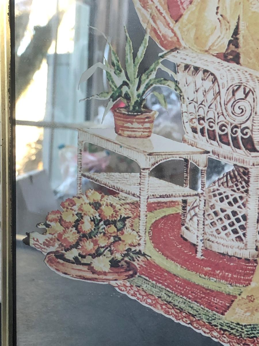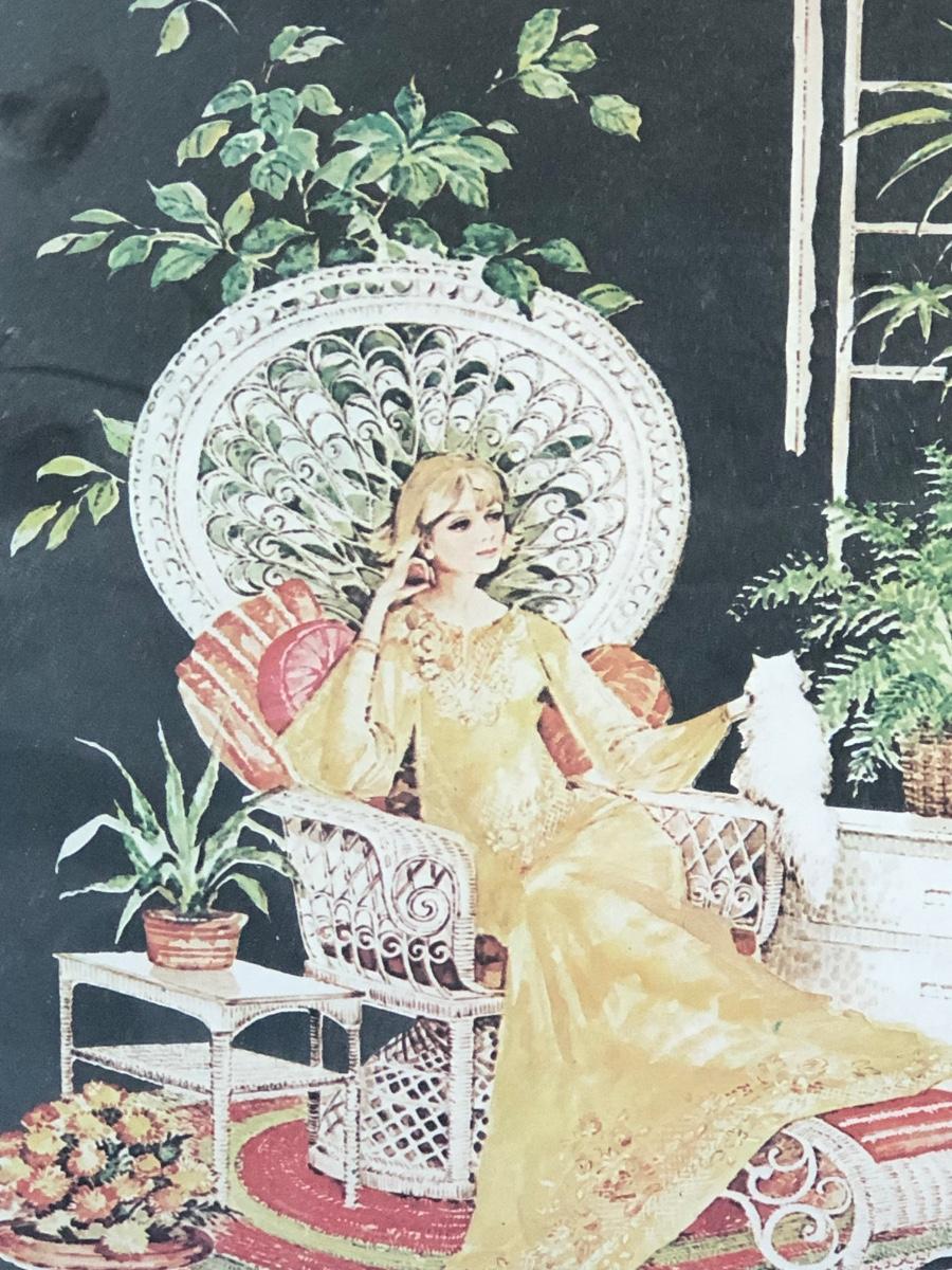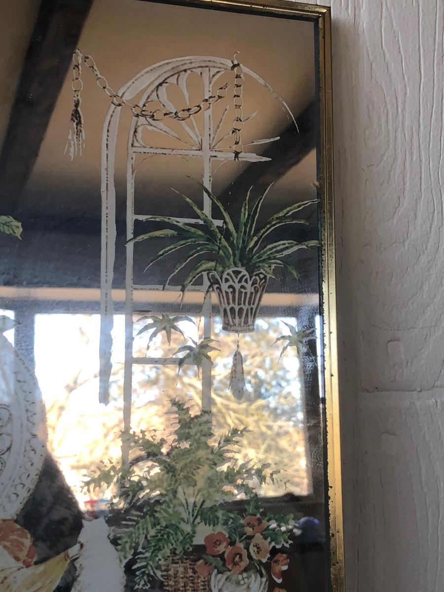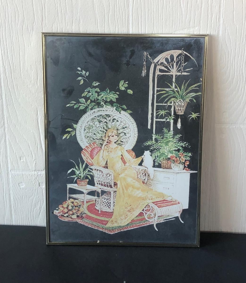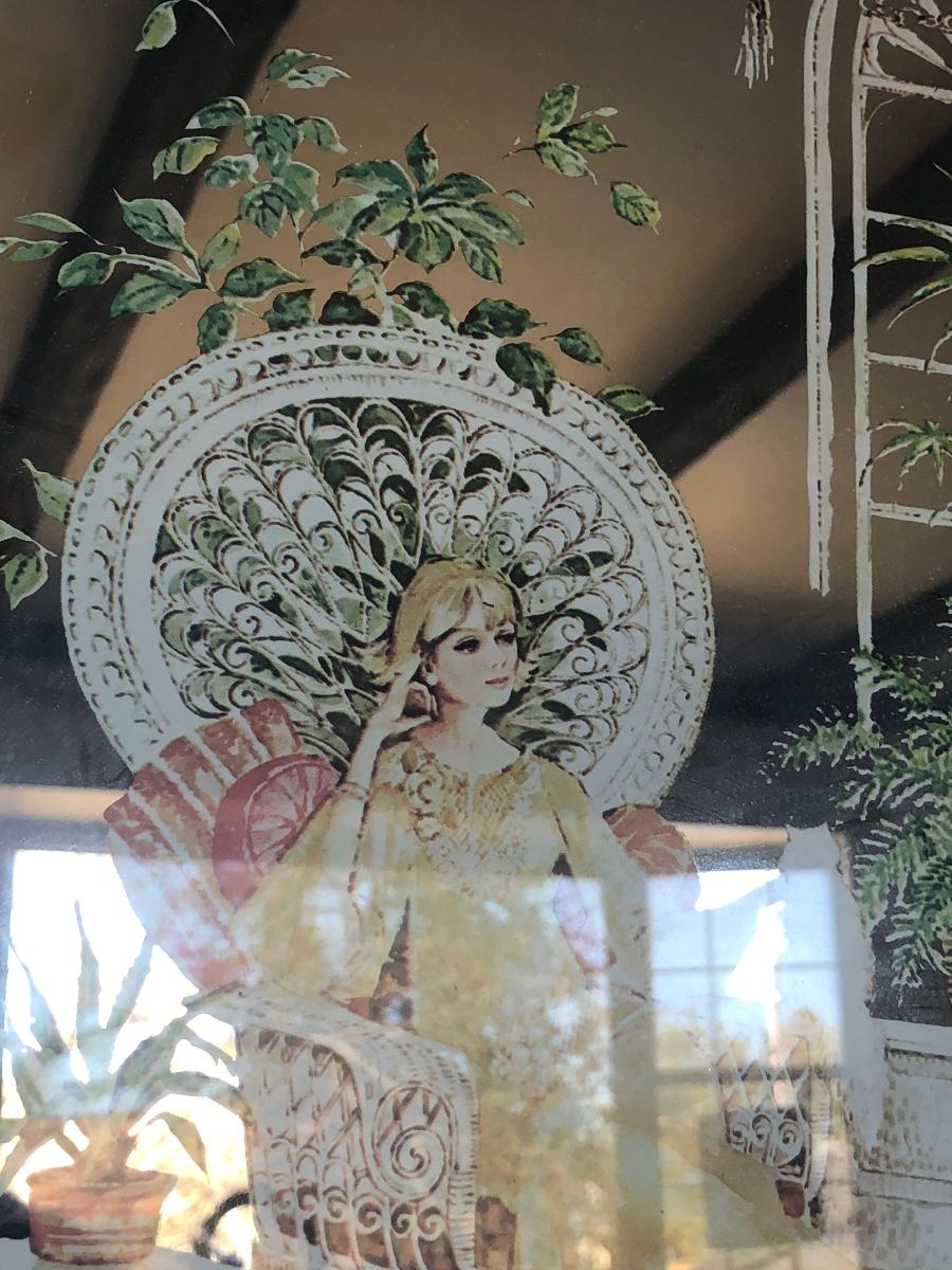 LOT 33X: Vintage Art Deco Style Mirror Serigraphy / Screen Print of Woman in Rattan Armchair