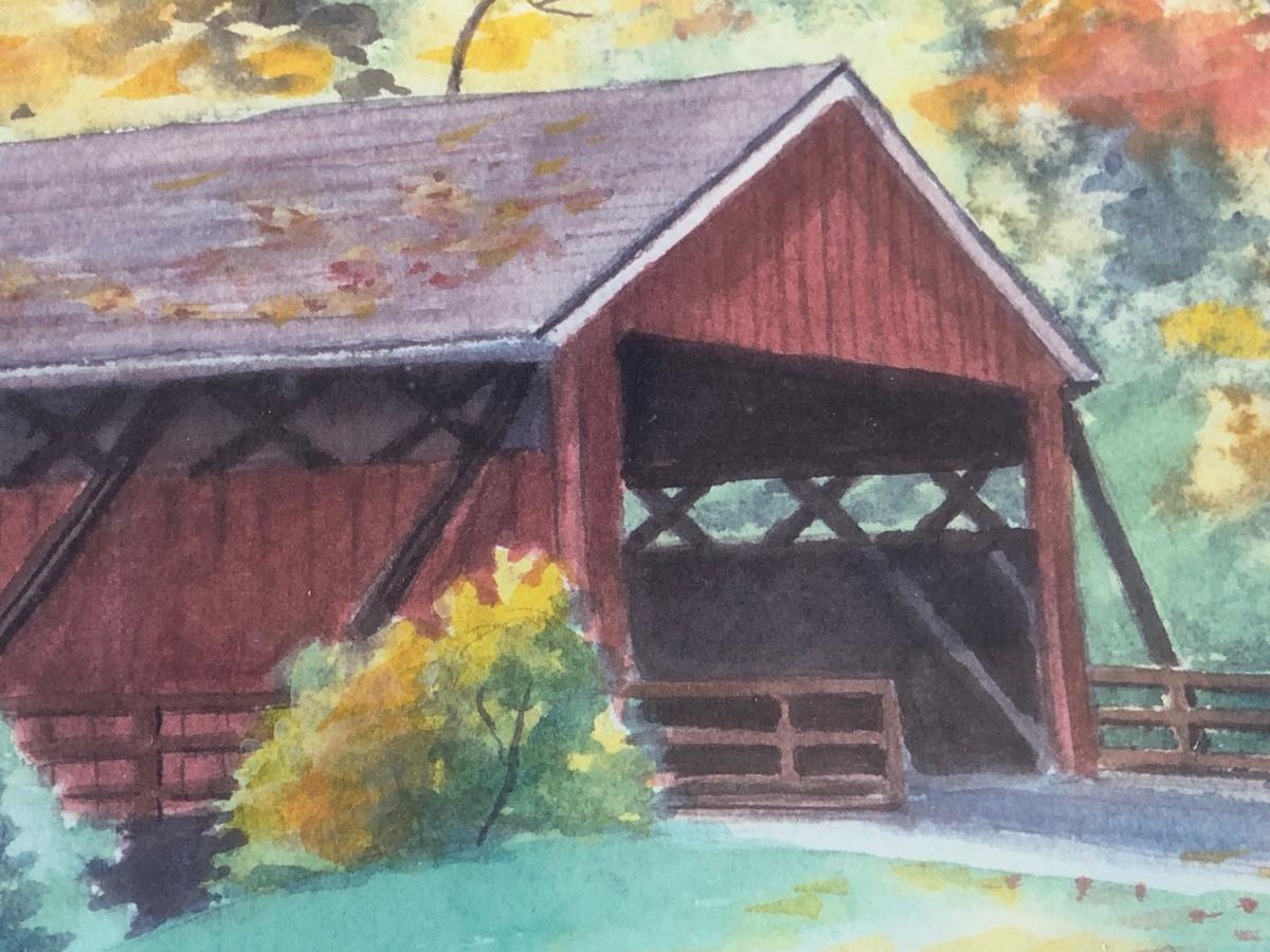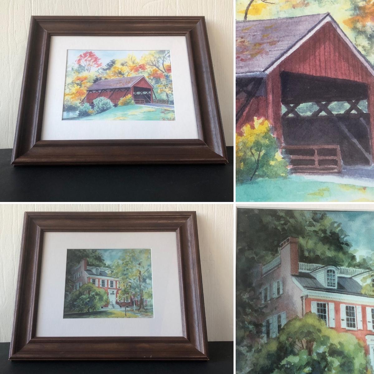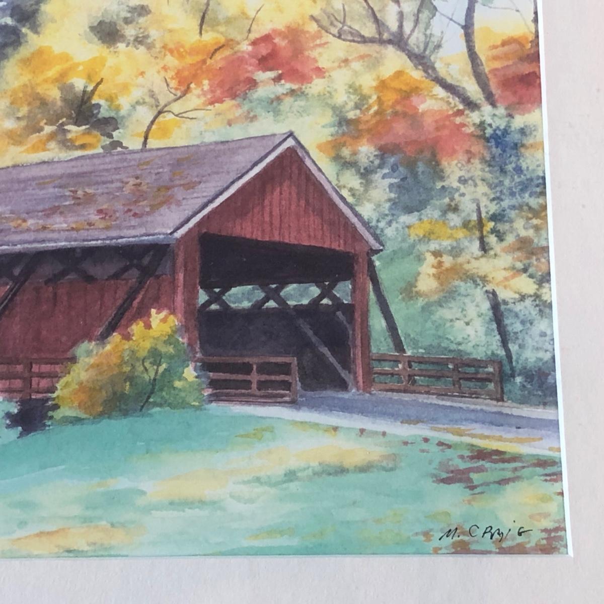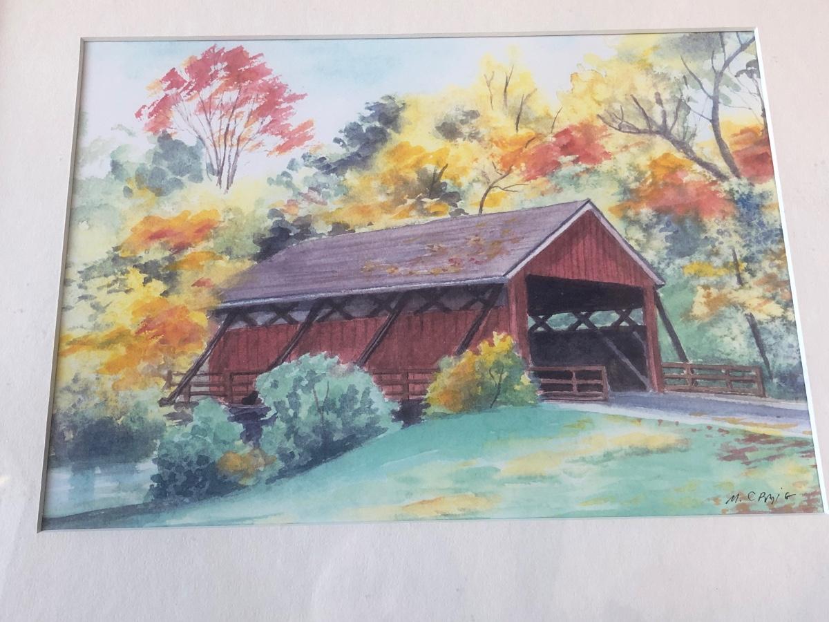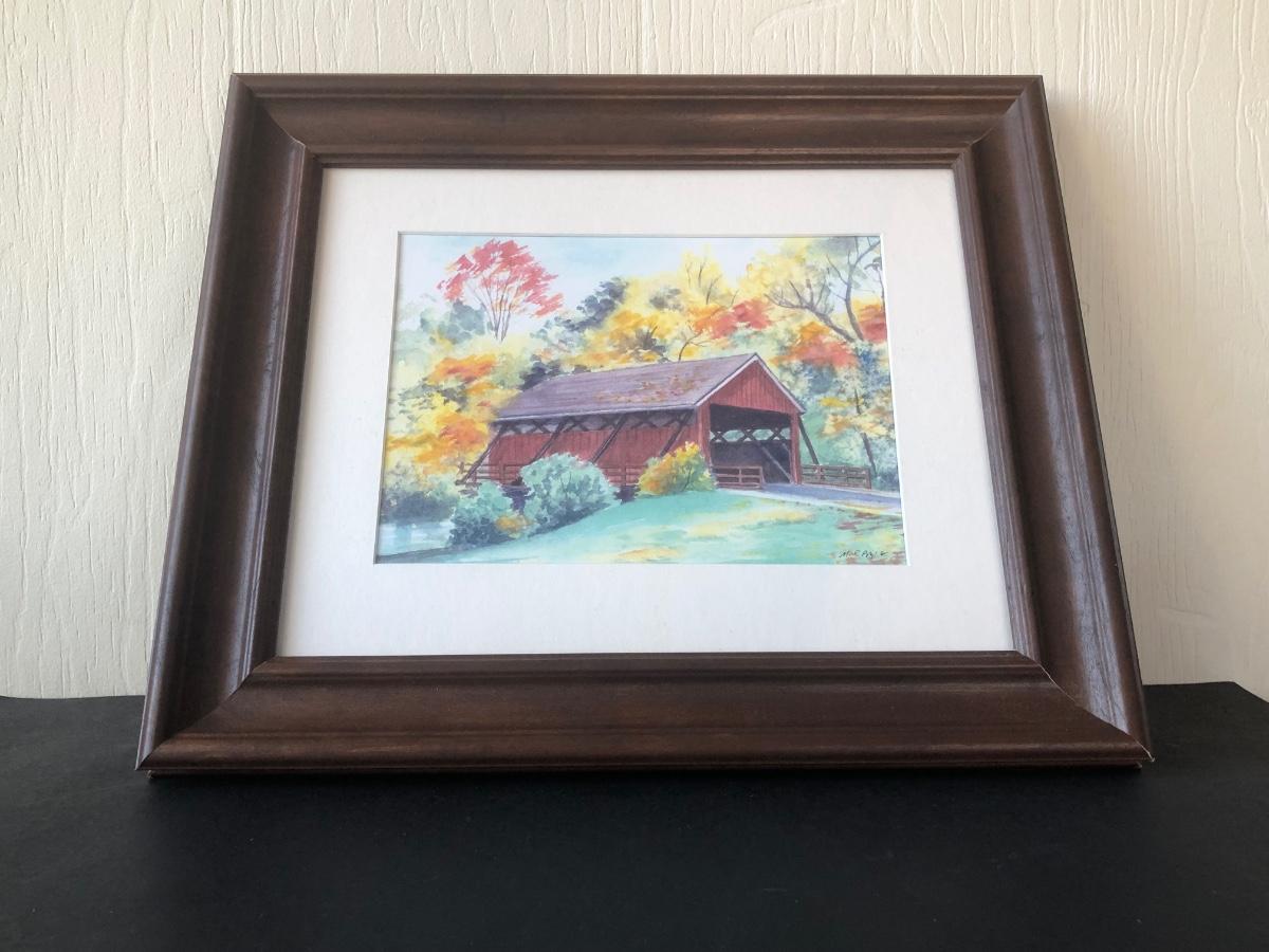 LOT 34X: Two Framed Art Prints - Building & Covered Bridge Signed "M. Craig"