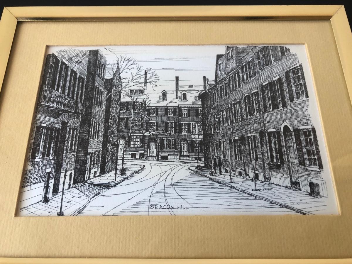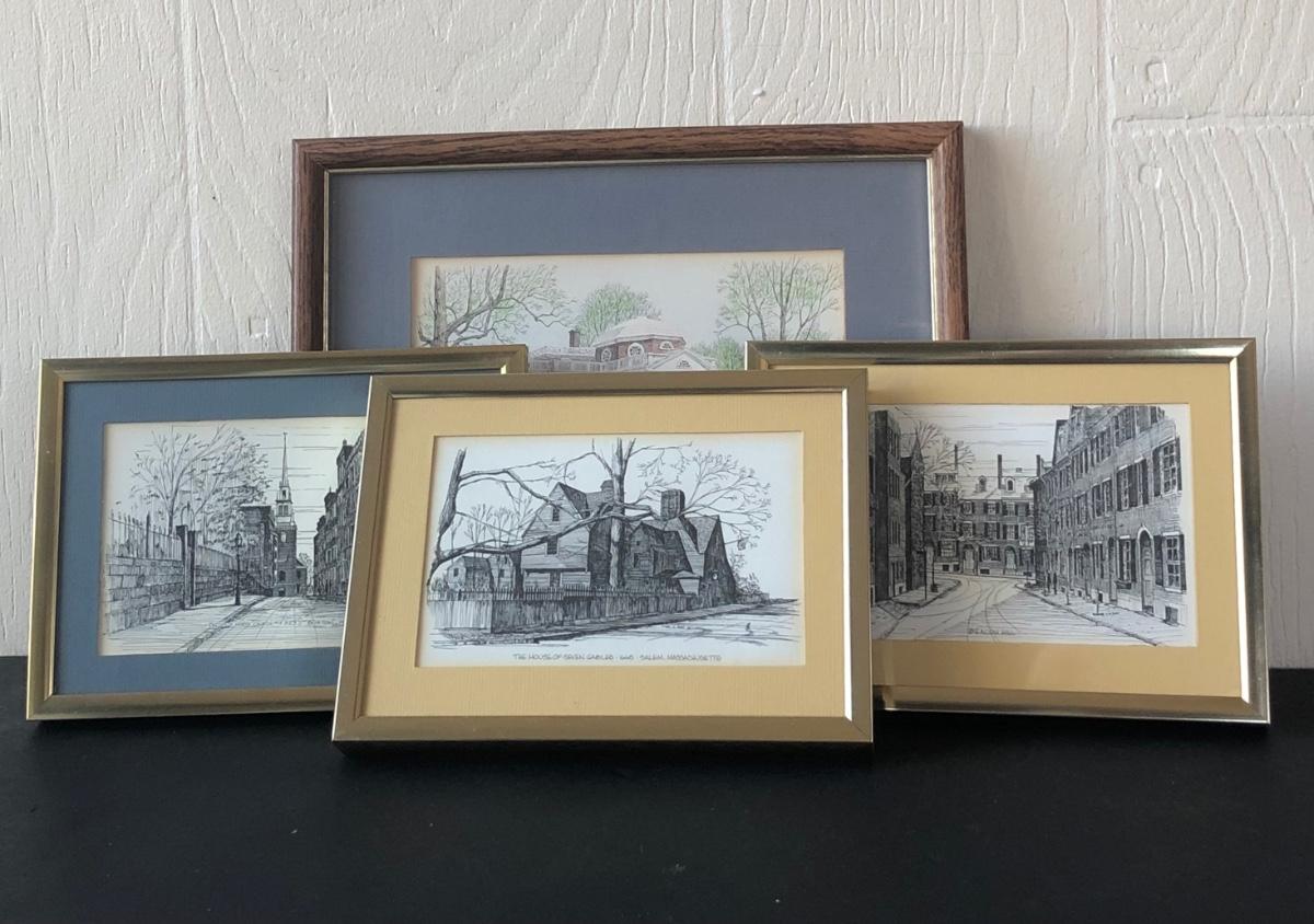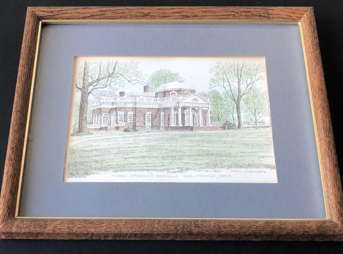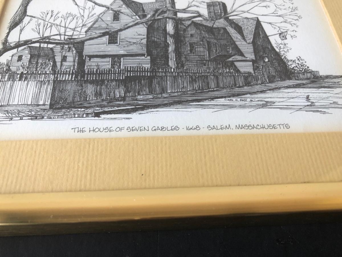 LOT 37X: Framed Clark M. Goff Prints - Thomas Jefferson's Monticello, Old North Church, House of Seven Gables & Beacon Hill