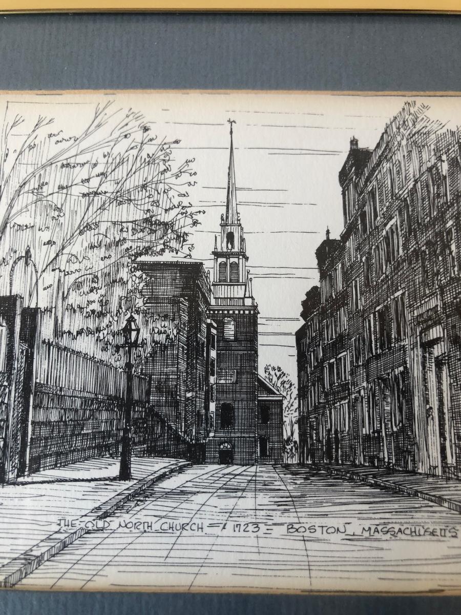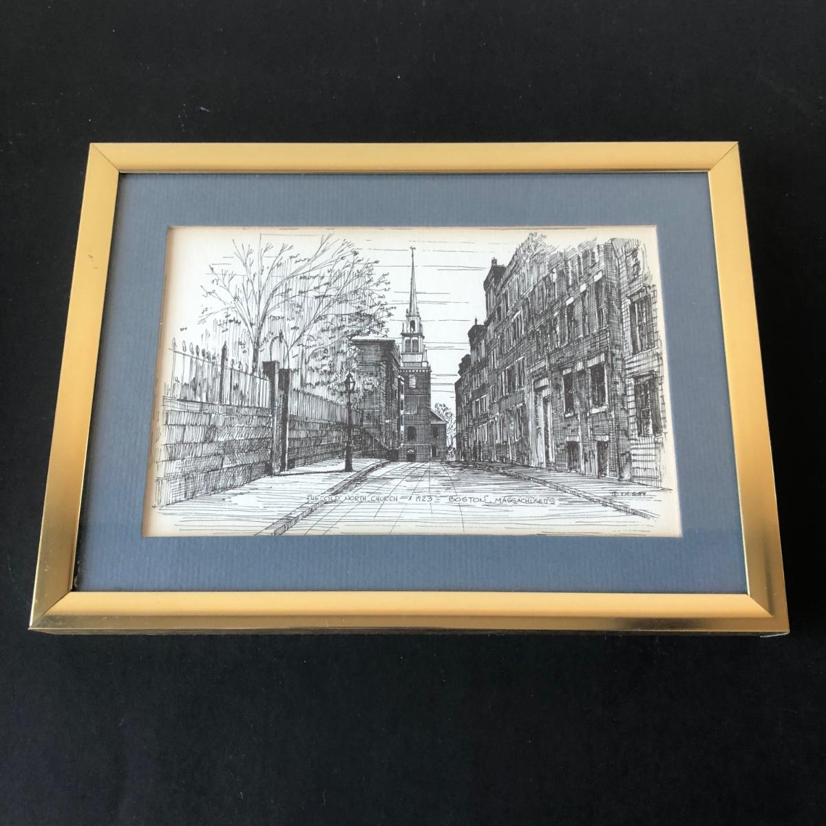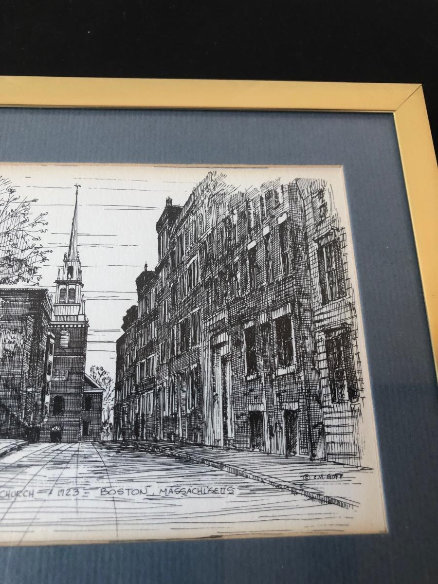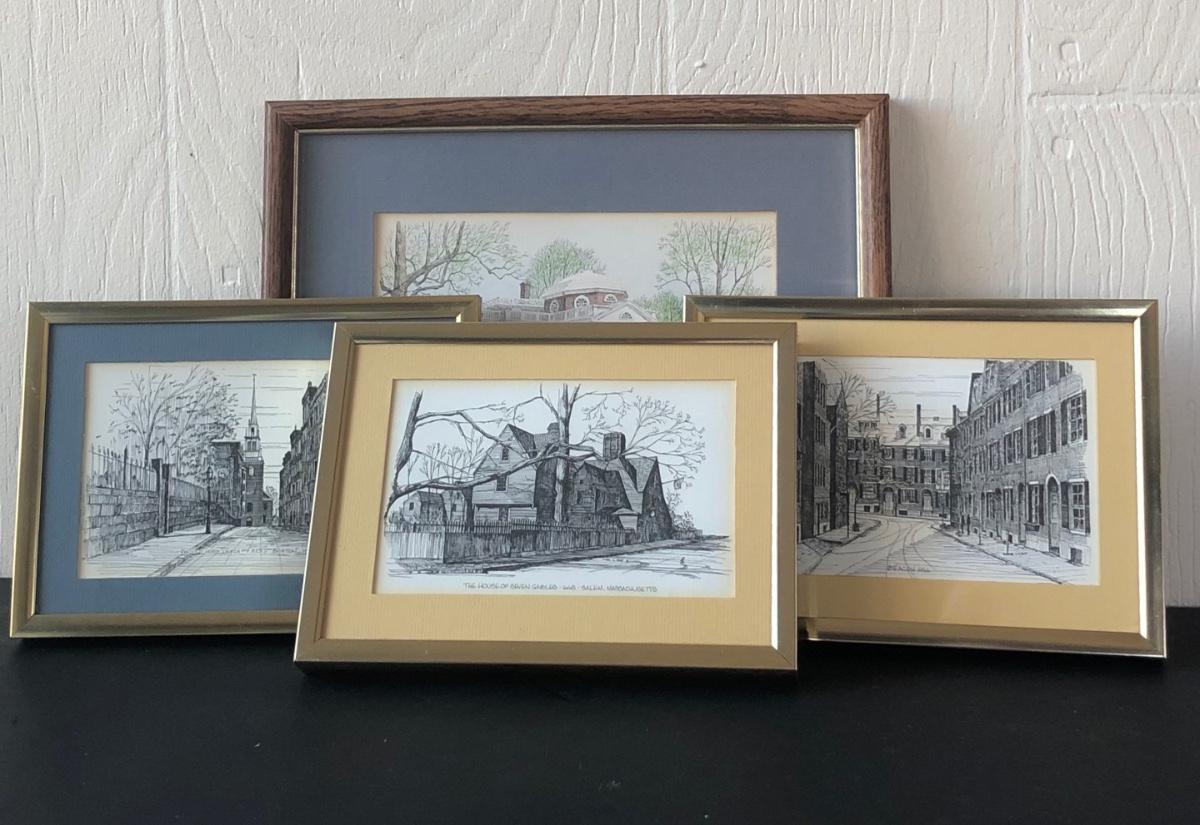 LOT 37X: Framed Clark M. Goff Prints - Thomas Jefferson's Monticello, Old North Church, House of Seven Gables & Beacon Hill
