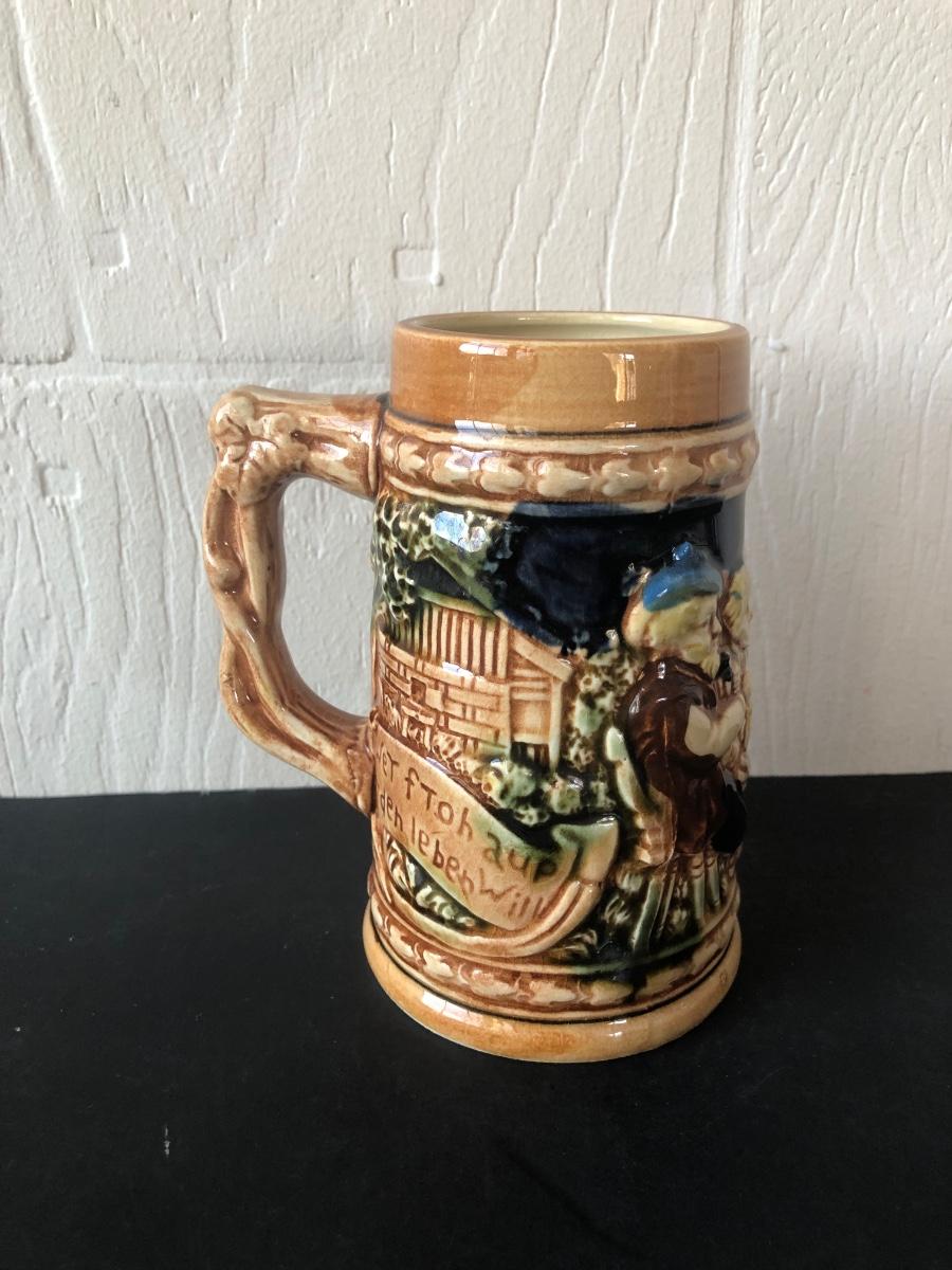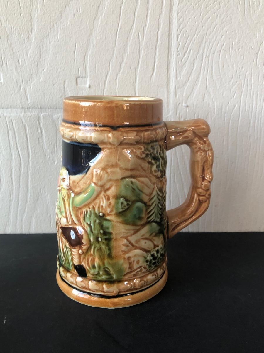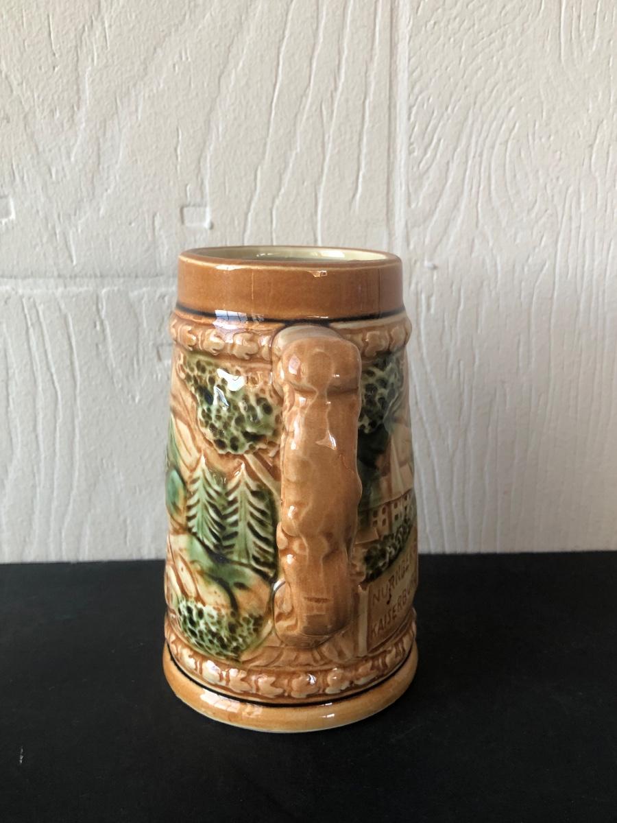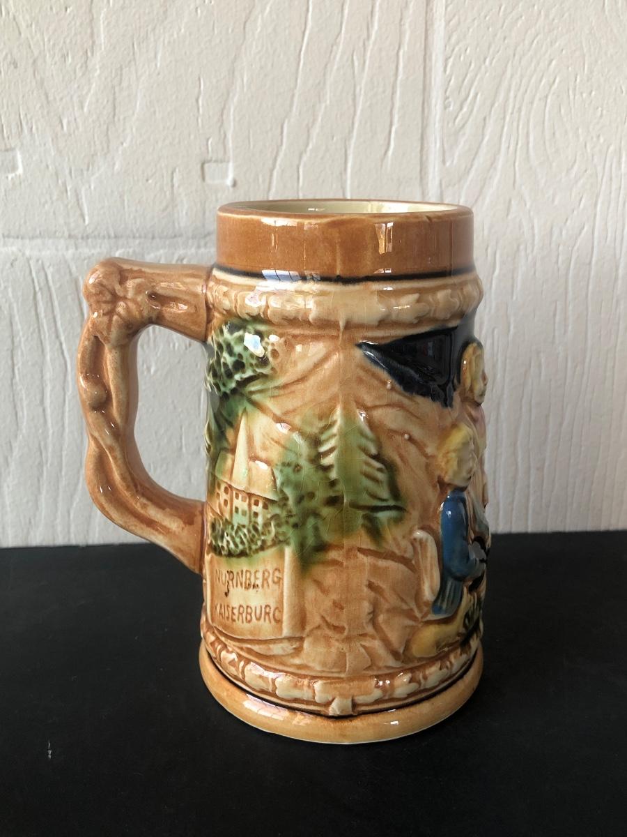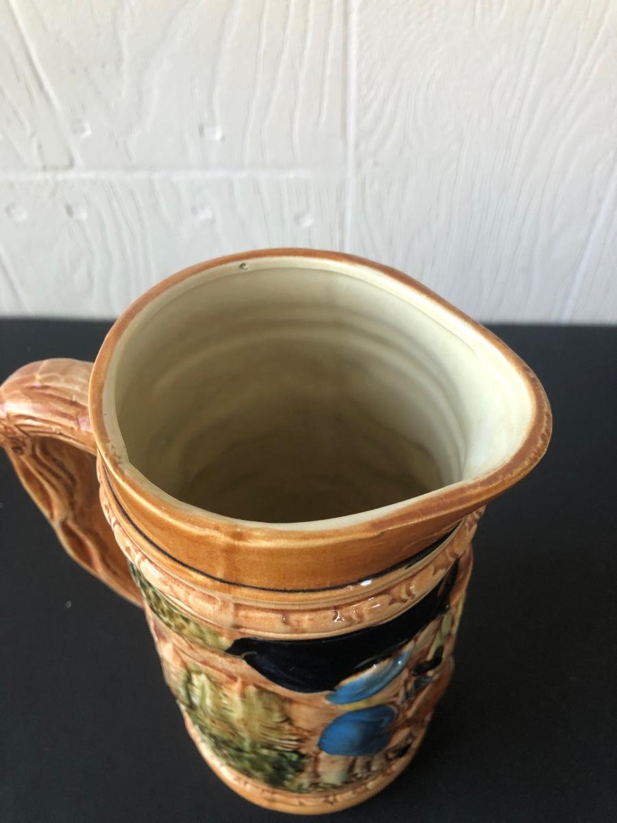 LOT 50L: Ceramic Stein w/ Canon Lid & Majolica Style Pitcher and Steins
