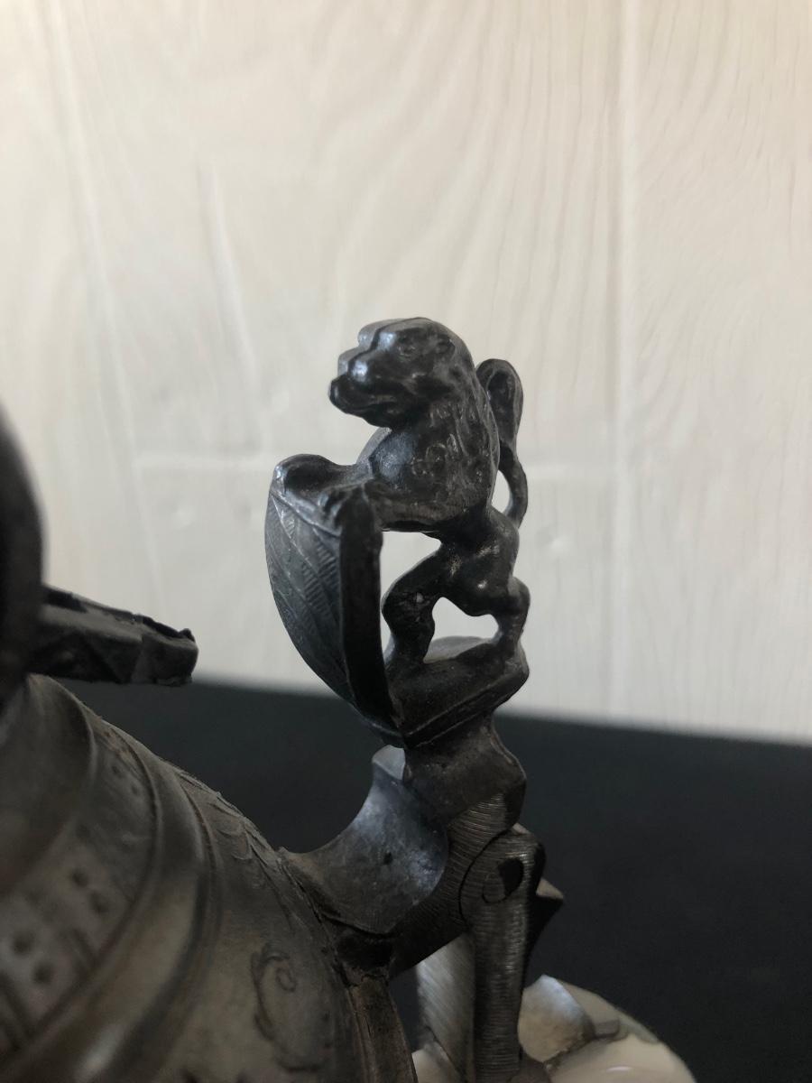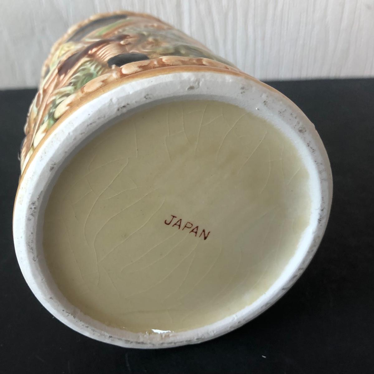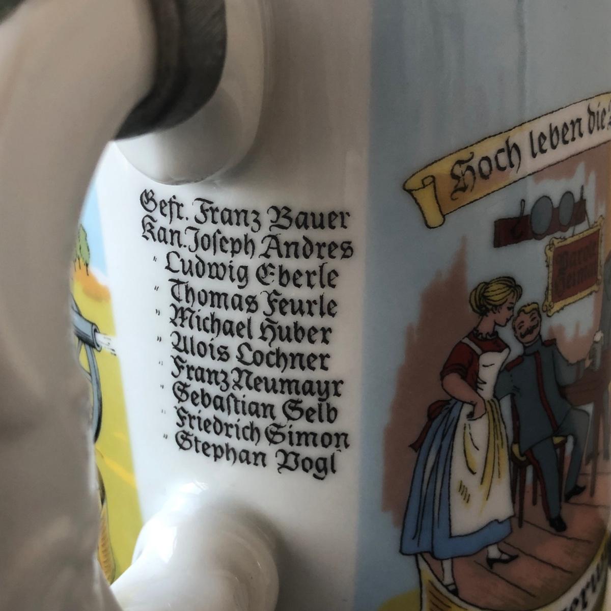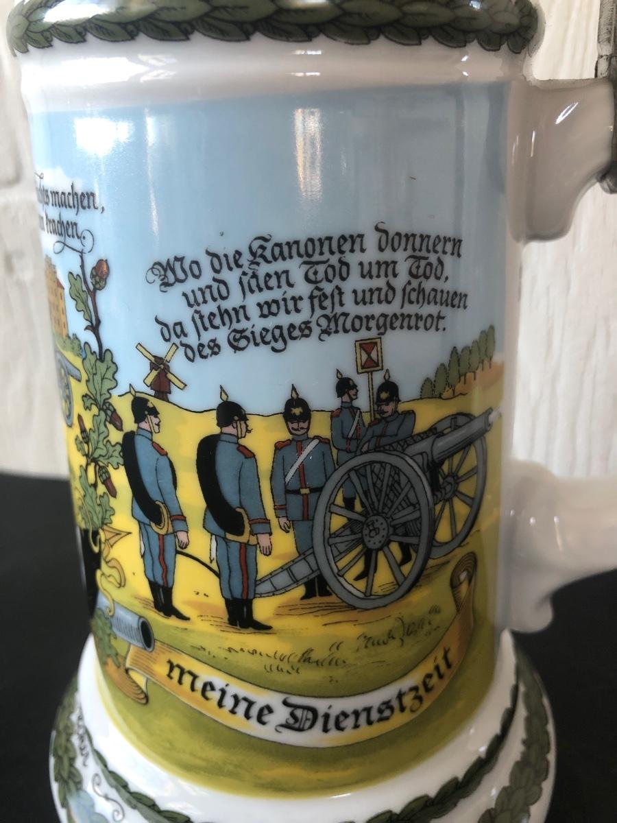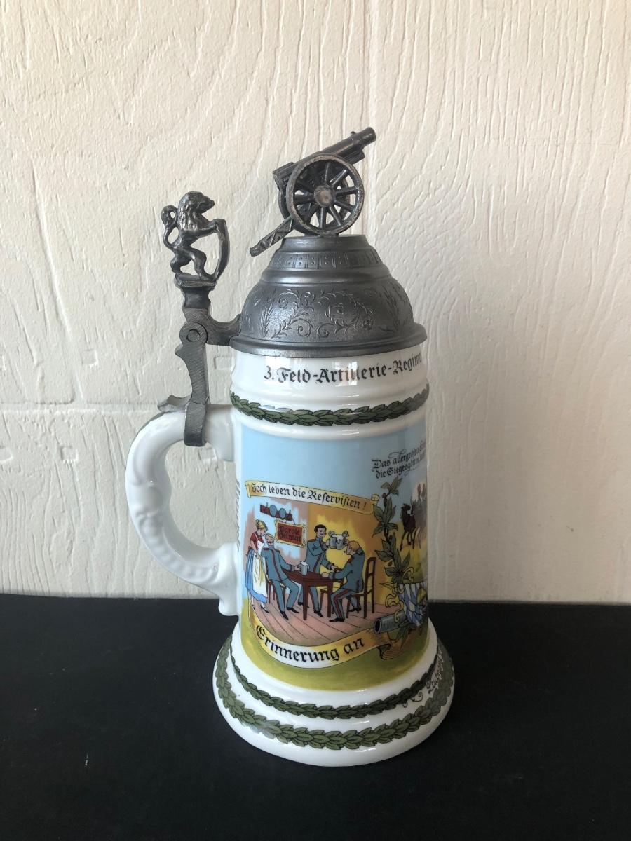 LOT 50L: Ceramic Stein w/ Canon Lid & Majolica Style Pitcher and Steins