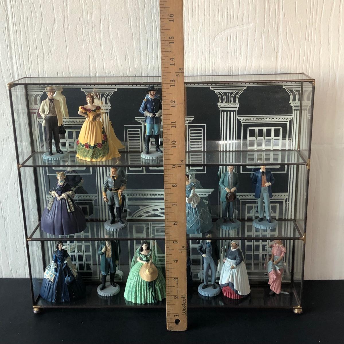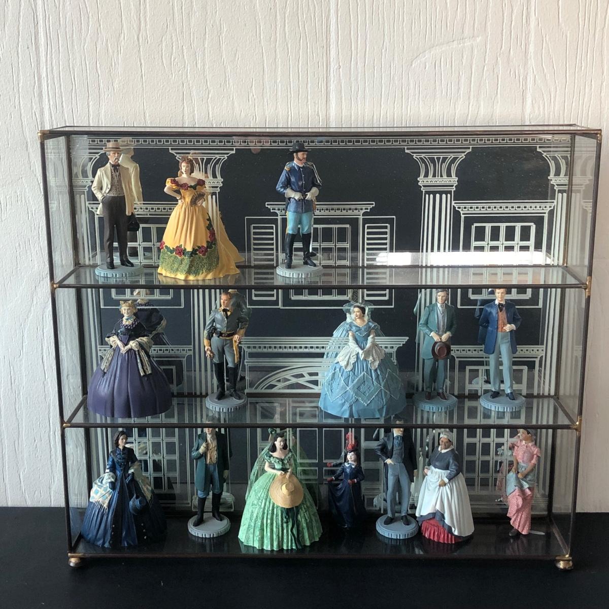 LOT 62L: 1990 Franklin Mint Gone with the Wind Figurines in Mirrored Display Case