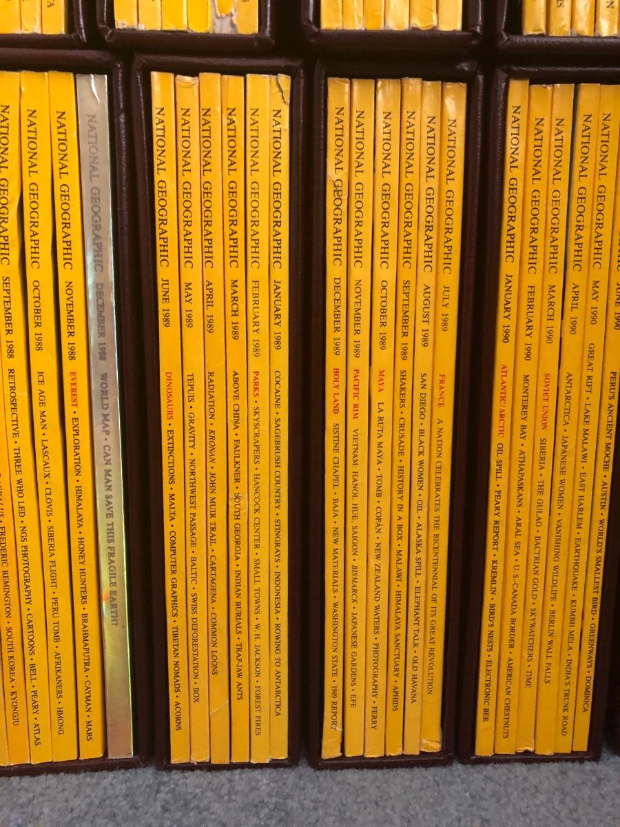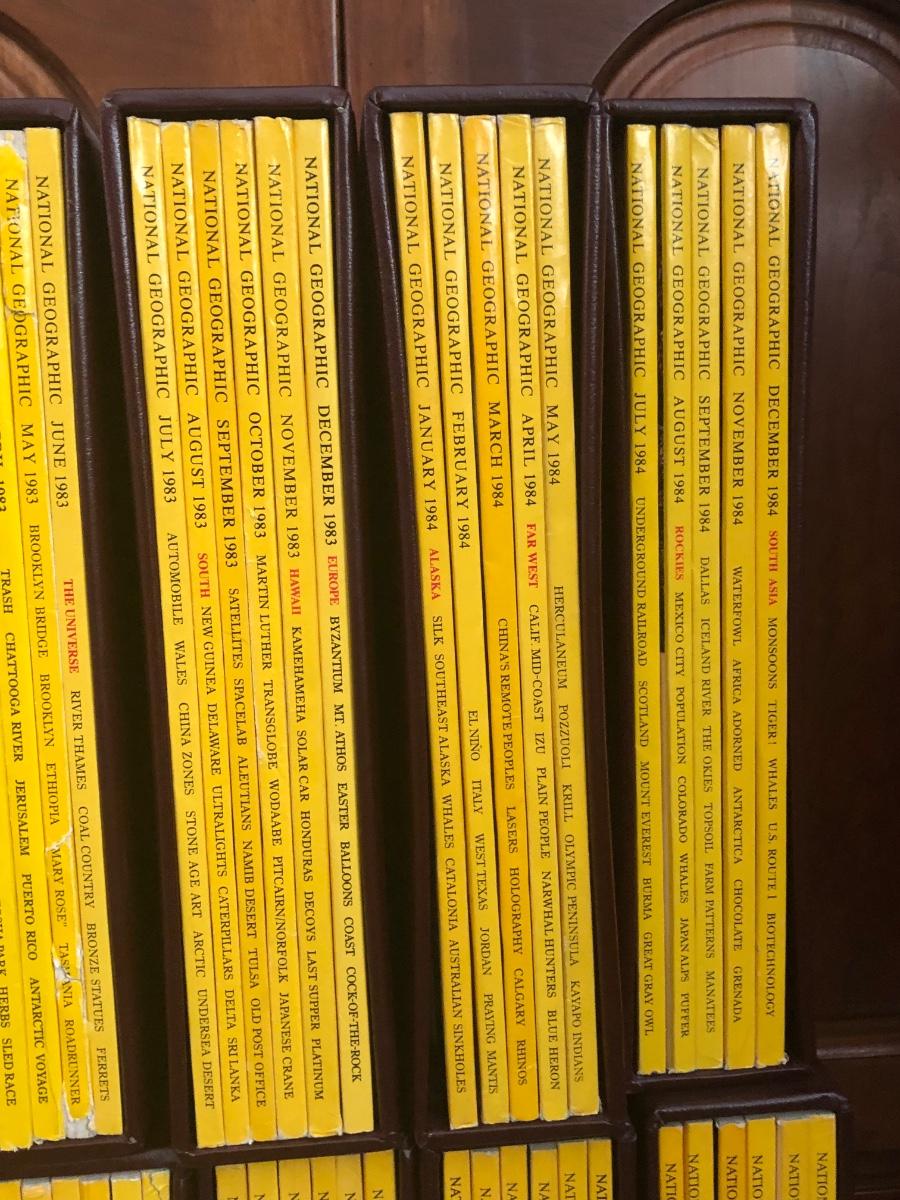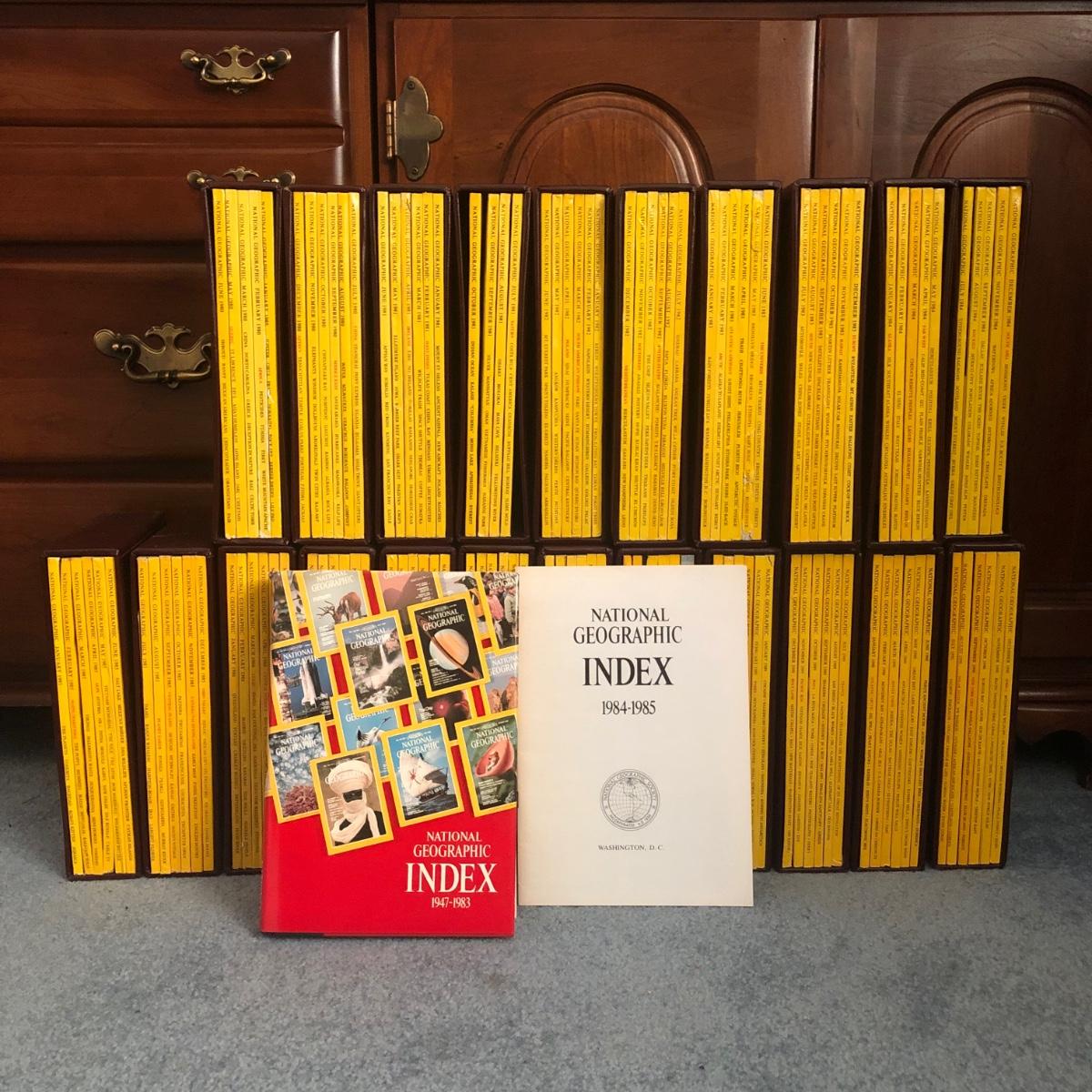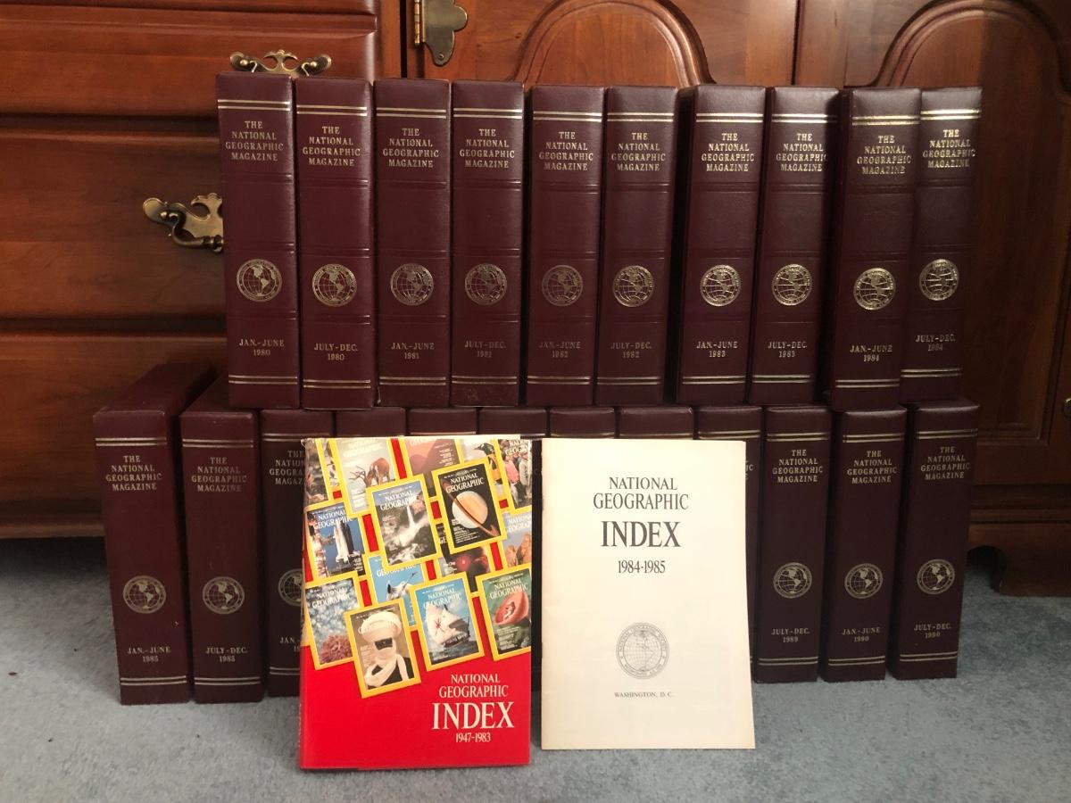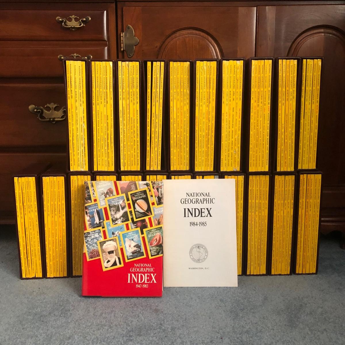 LOT 63L: Bound National Geographic Magazines 1980-1989 w/ Indexes for Previous Years