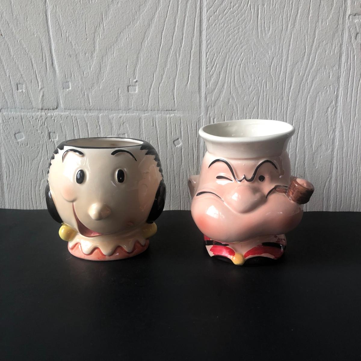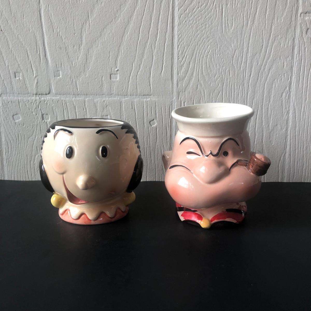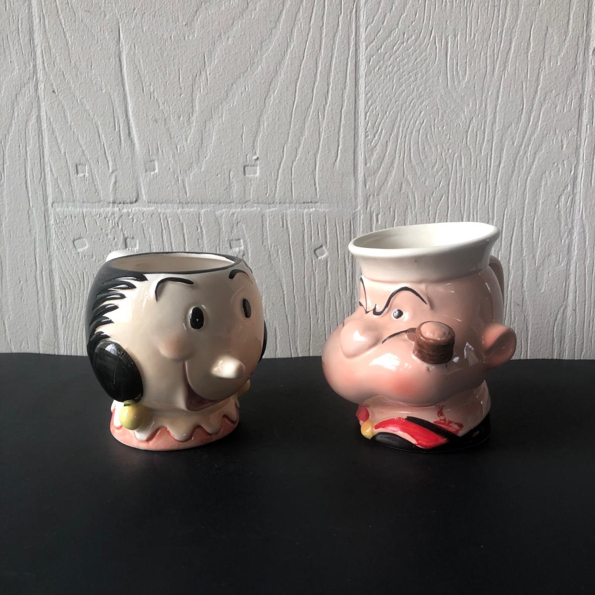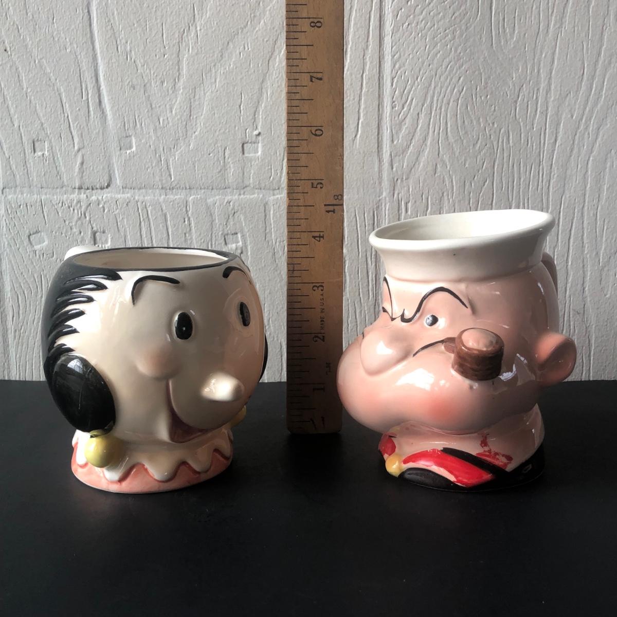 LOT 67K: Vintage 1980 King Features Sydicate, Inc. Popeye & Olive Oil Character Mugs