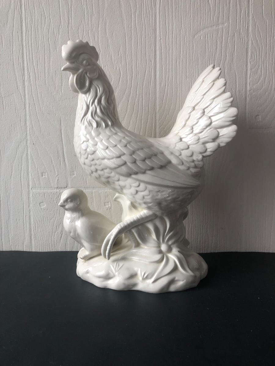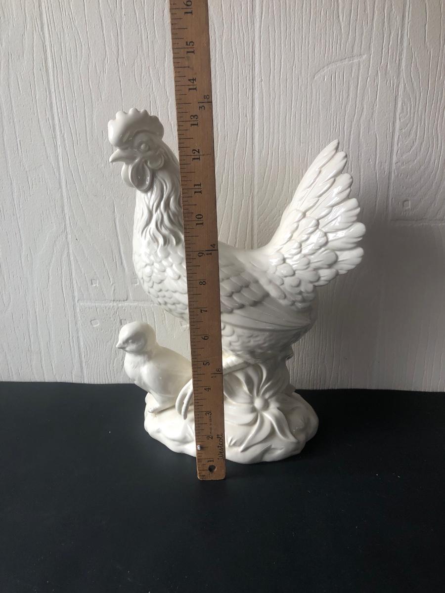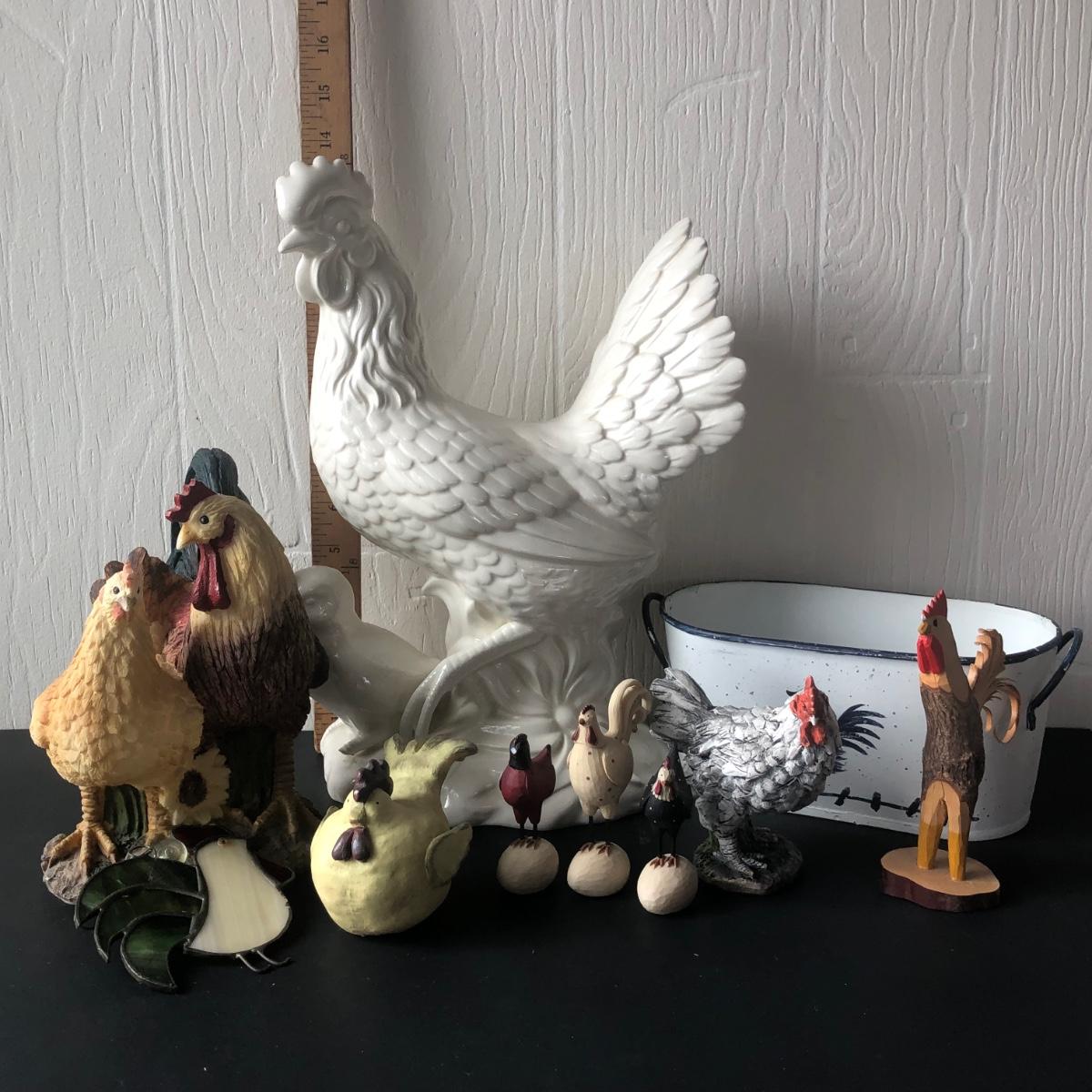 LOT 74K: Atlantic Mold White Rooster Statue, 2009 Dan Dipaolo Birds on Eggs, Wood Carved Rooster & More