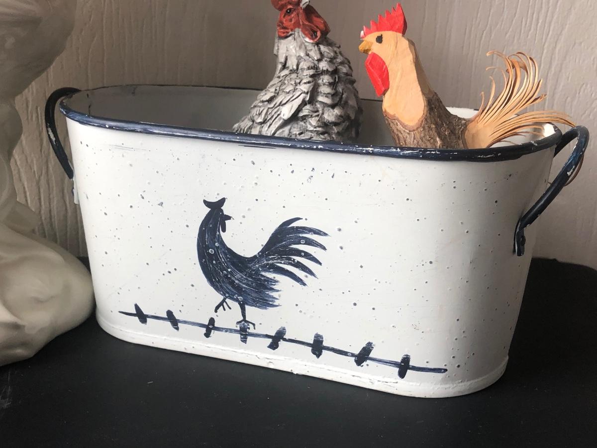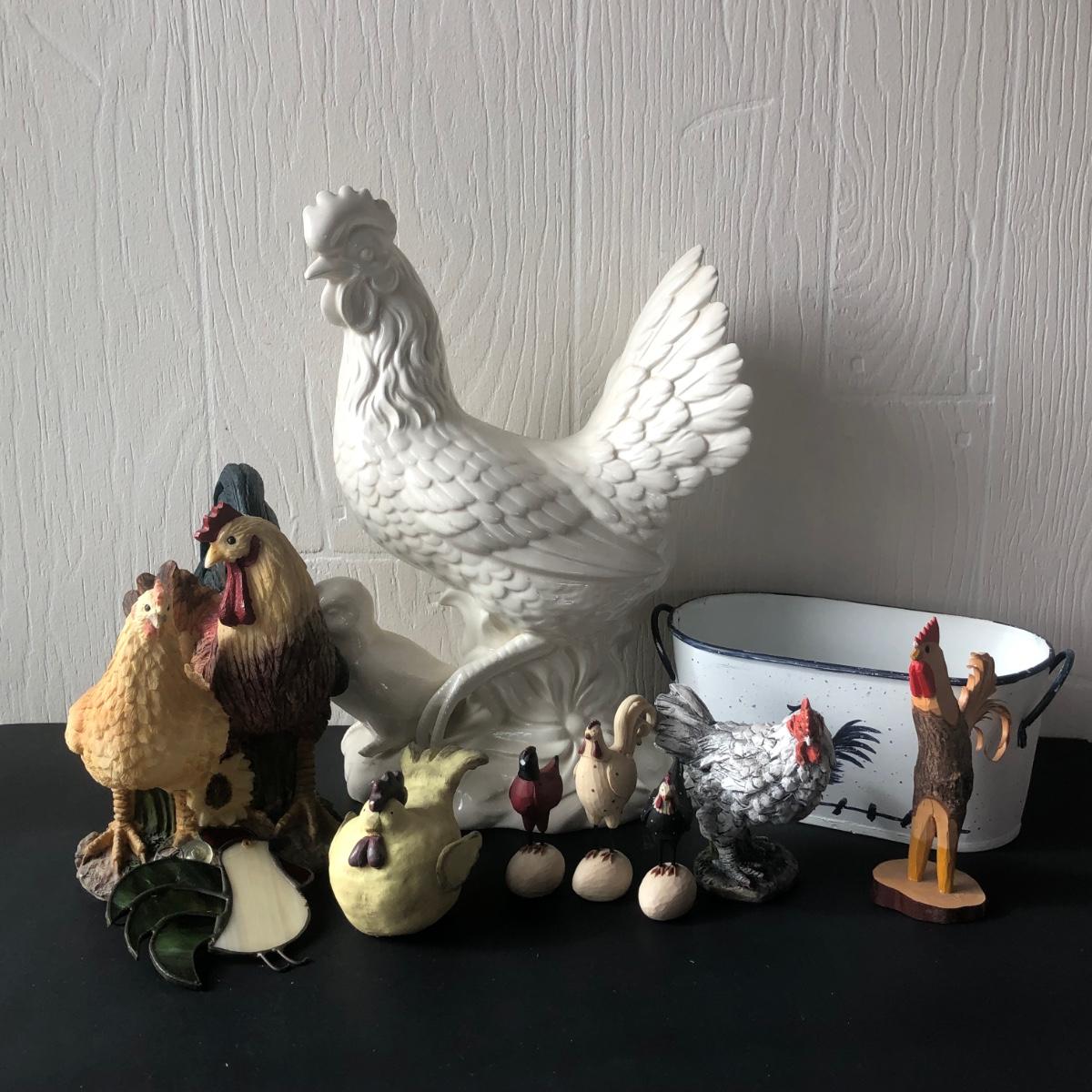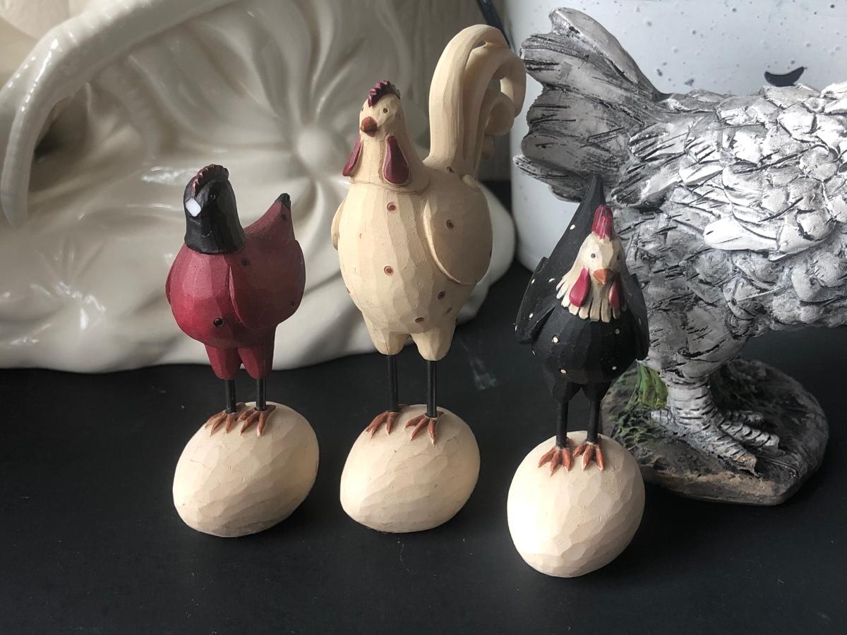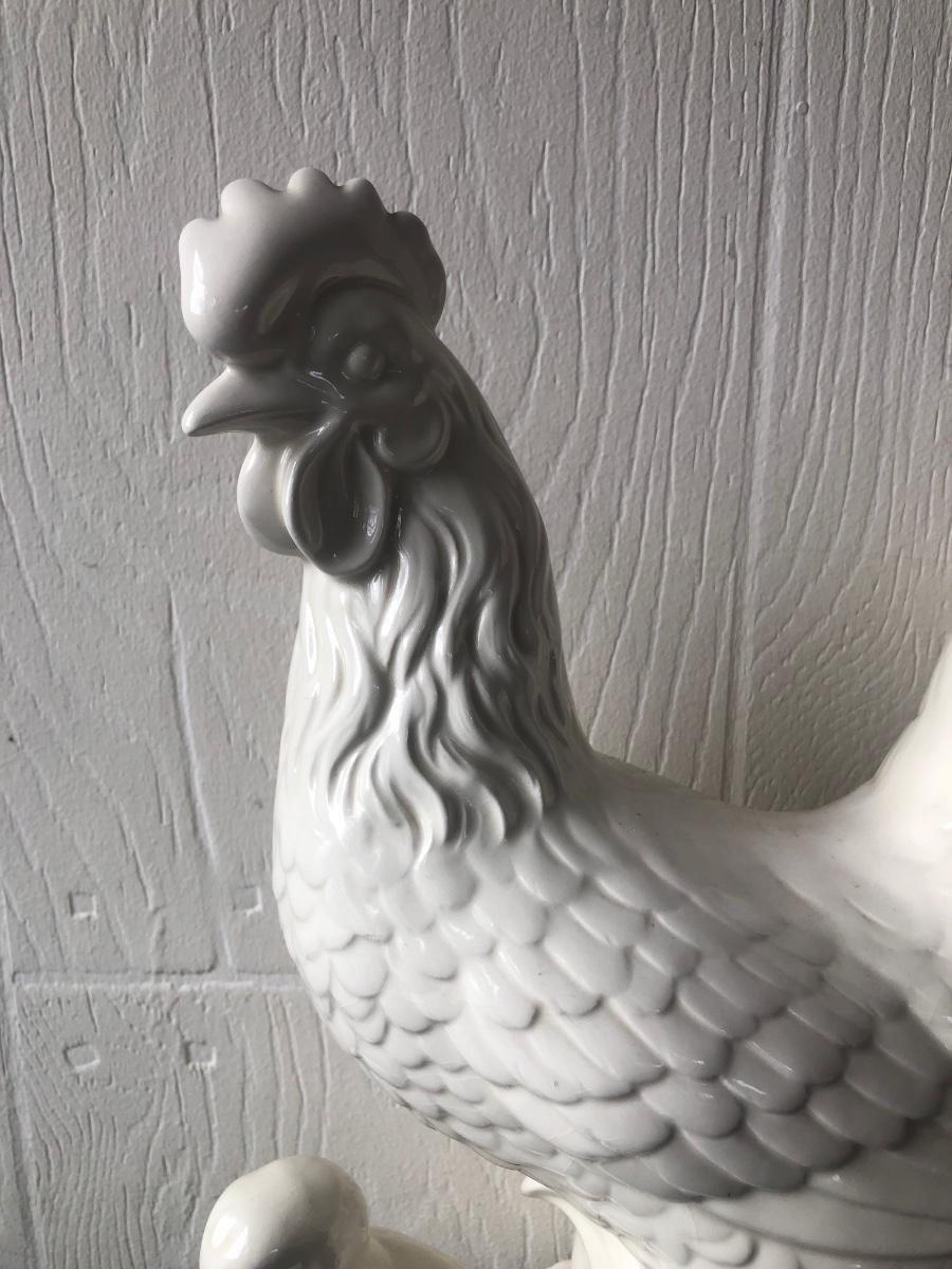 LOT 74K: Atlantic Mold White Rooster Statue, 2009 Dan Dipaolo Birds on Eggs, Wood Carved Rooster & More