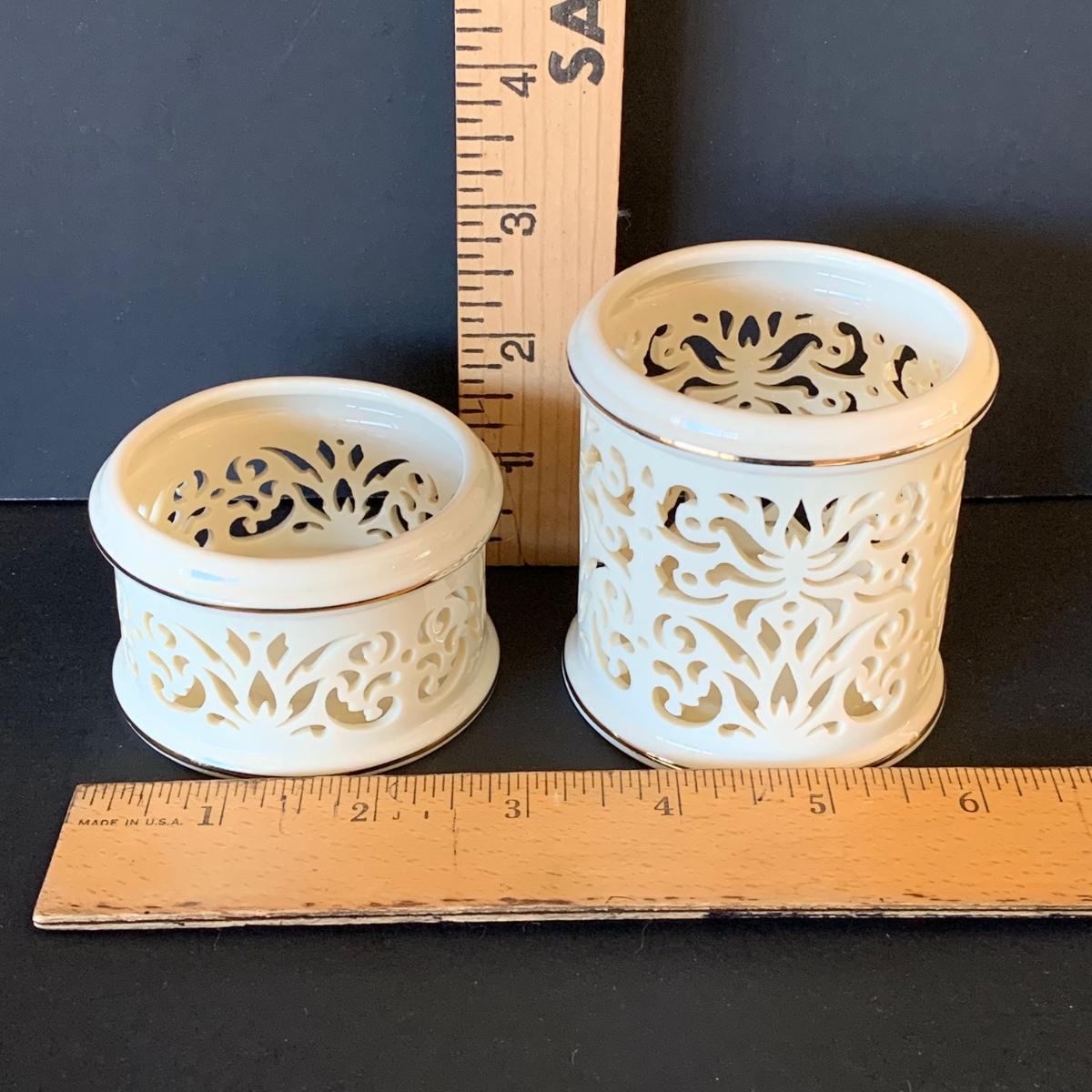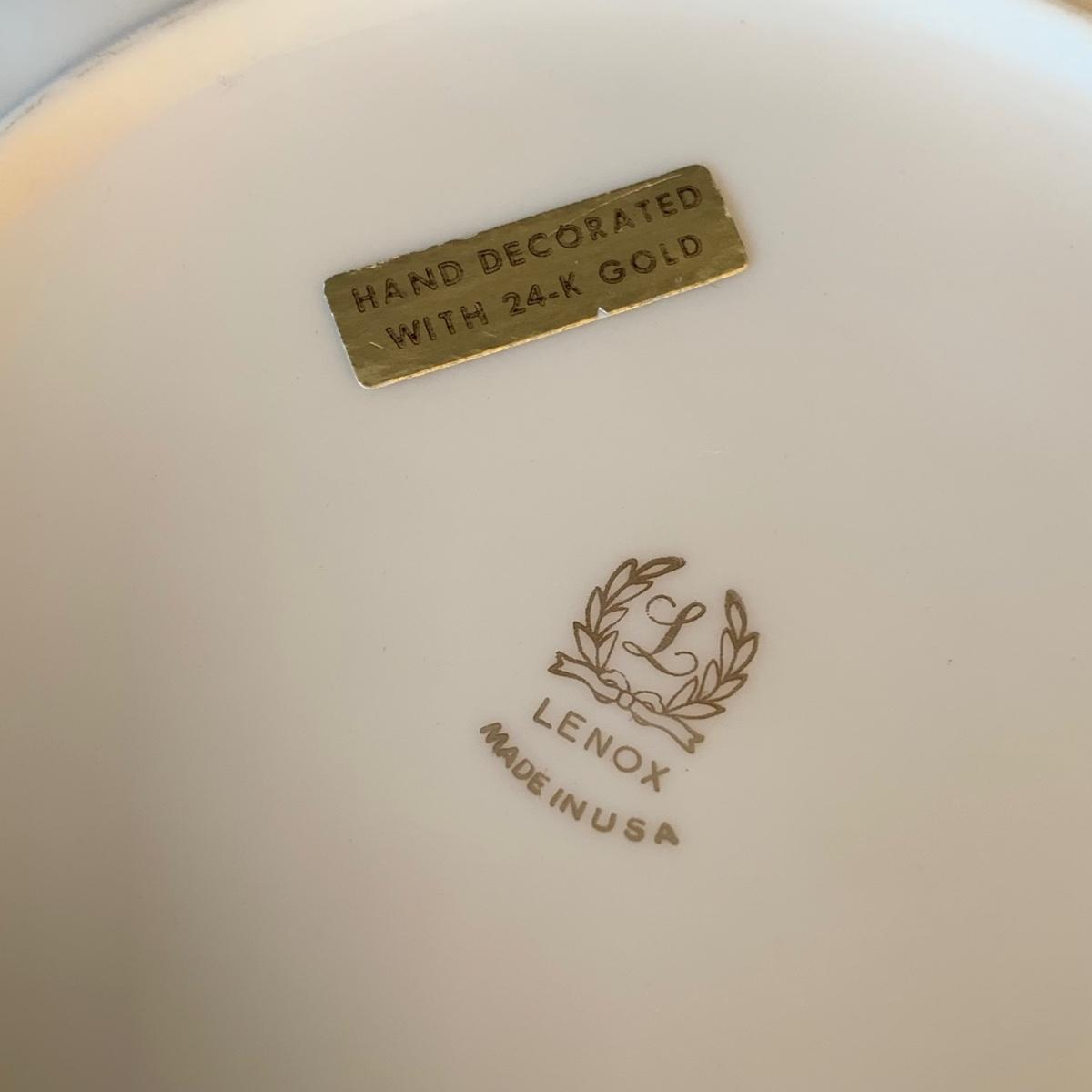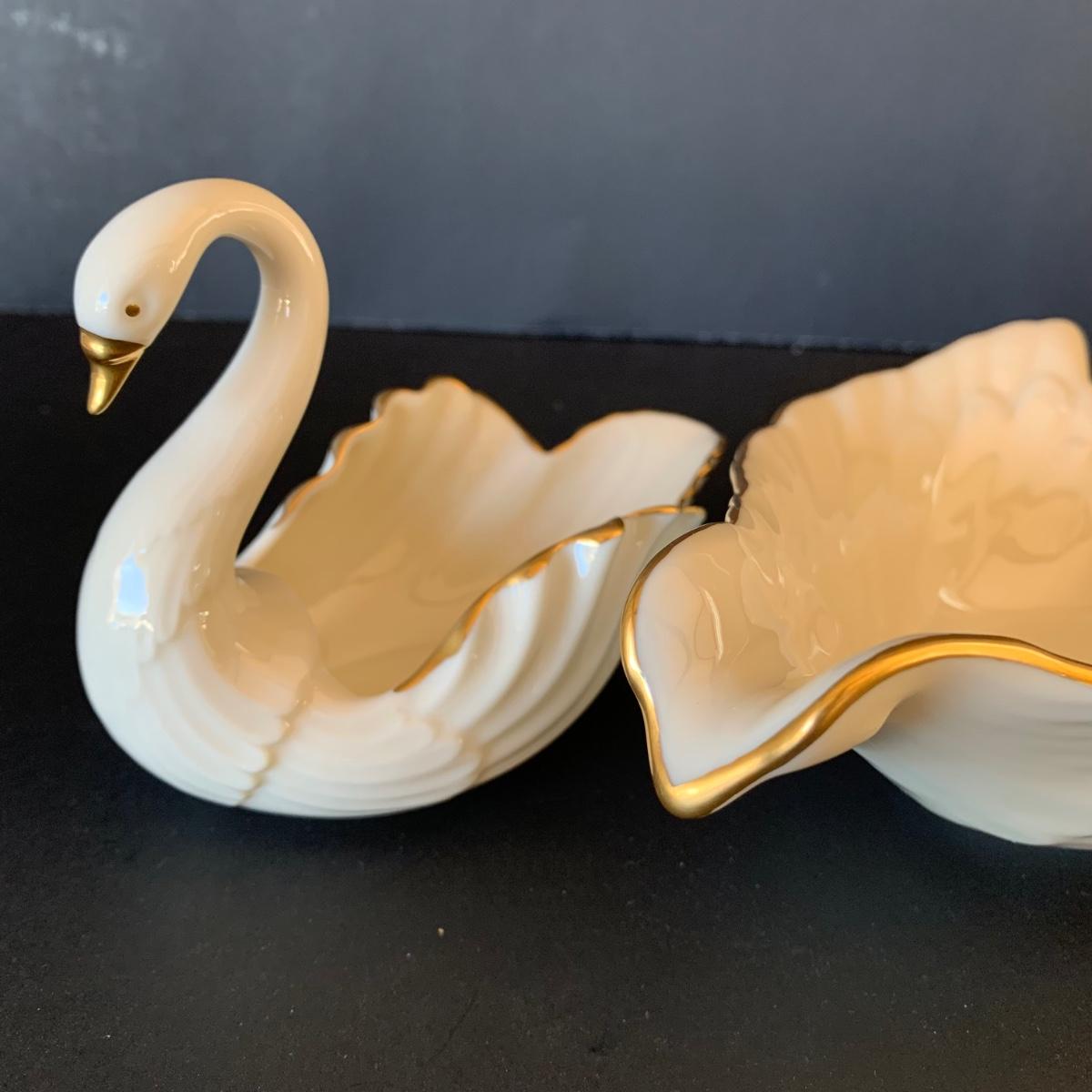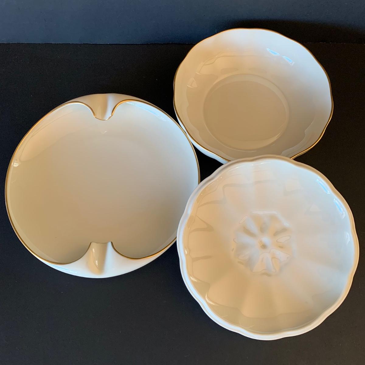 LOT 85 D: Vintage Lenox Collection W/ Gold Trim: Corinthian Collection Vase, Primrose Dish W/Lid, Mansfield Ashtray, 2 Illuminations Pierced Votives/Tea Light Holders, Dove Dish, & Swan Dish
