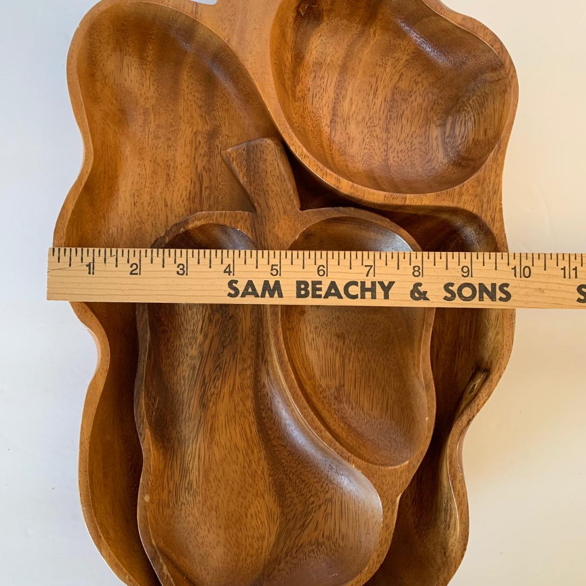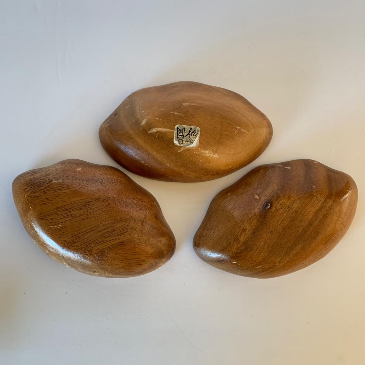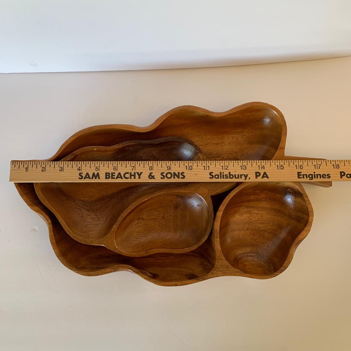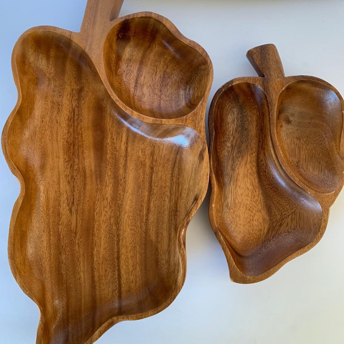 LOT 87 D: 2 Monkey Pod Wood Leaf Serving trays, 3 Monkey Pod Wood Shell Bowls, & More