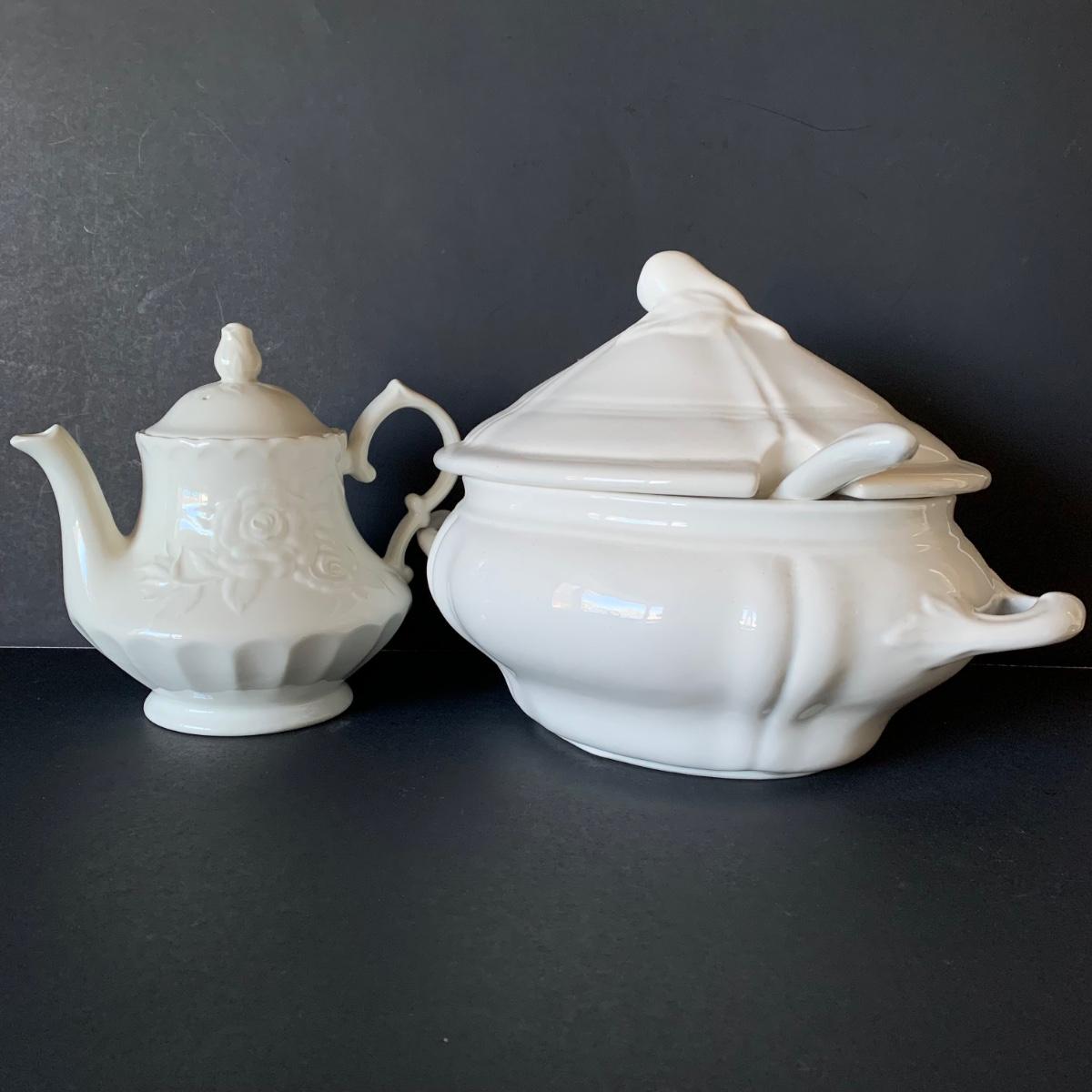LOT 91 D: Whittier Pottery Soup Tureen W/Ladle & A Floral Teapot