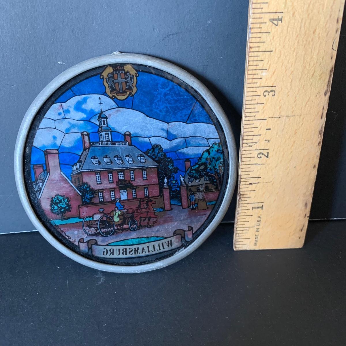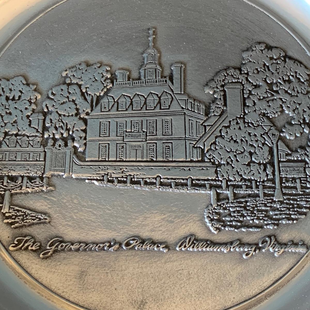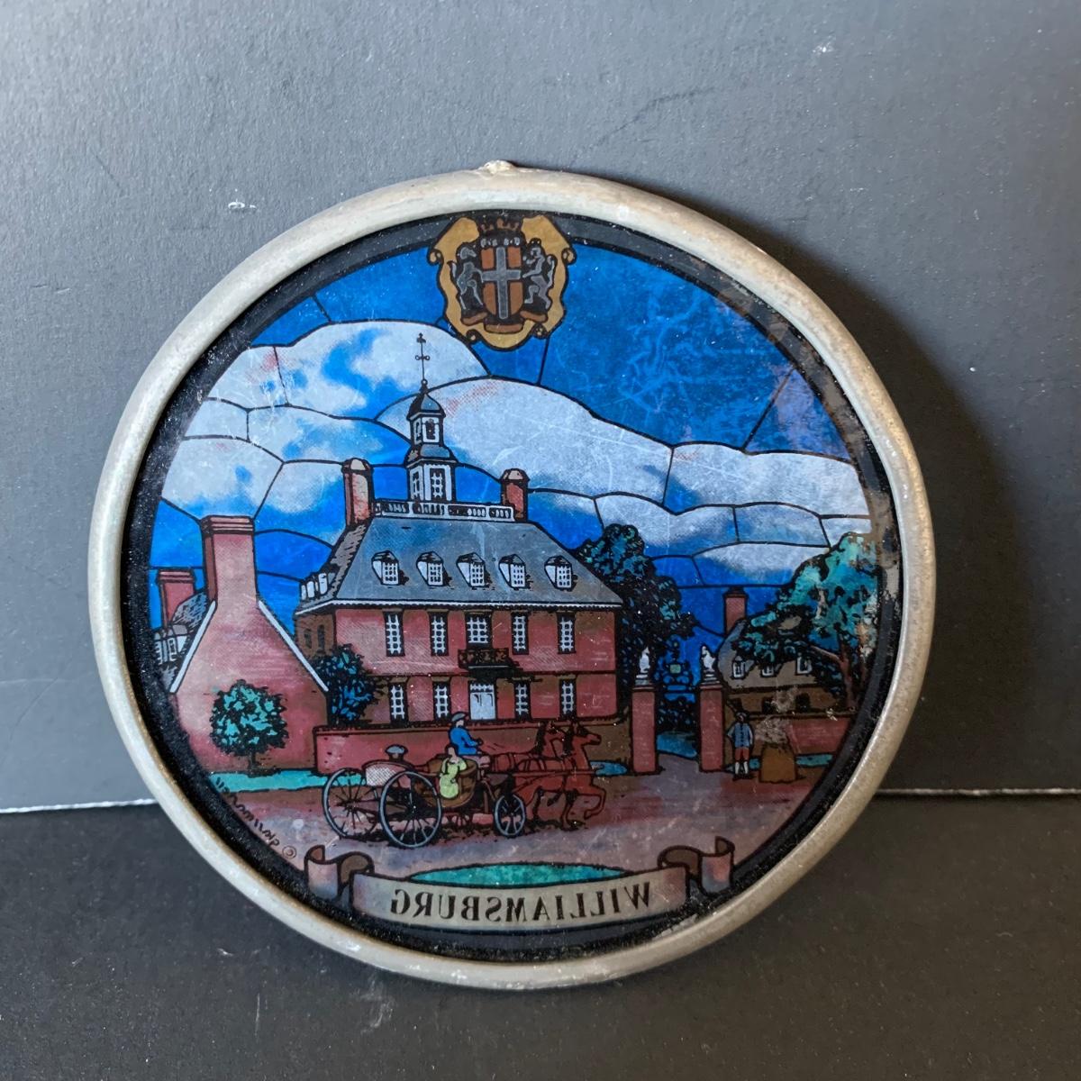 LOT 93 D: Williamsburg Governor's Palace Collection: Wilton Pewter Plate, Wine Glasses, & Stained Glass