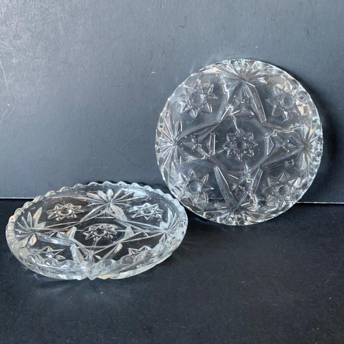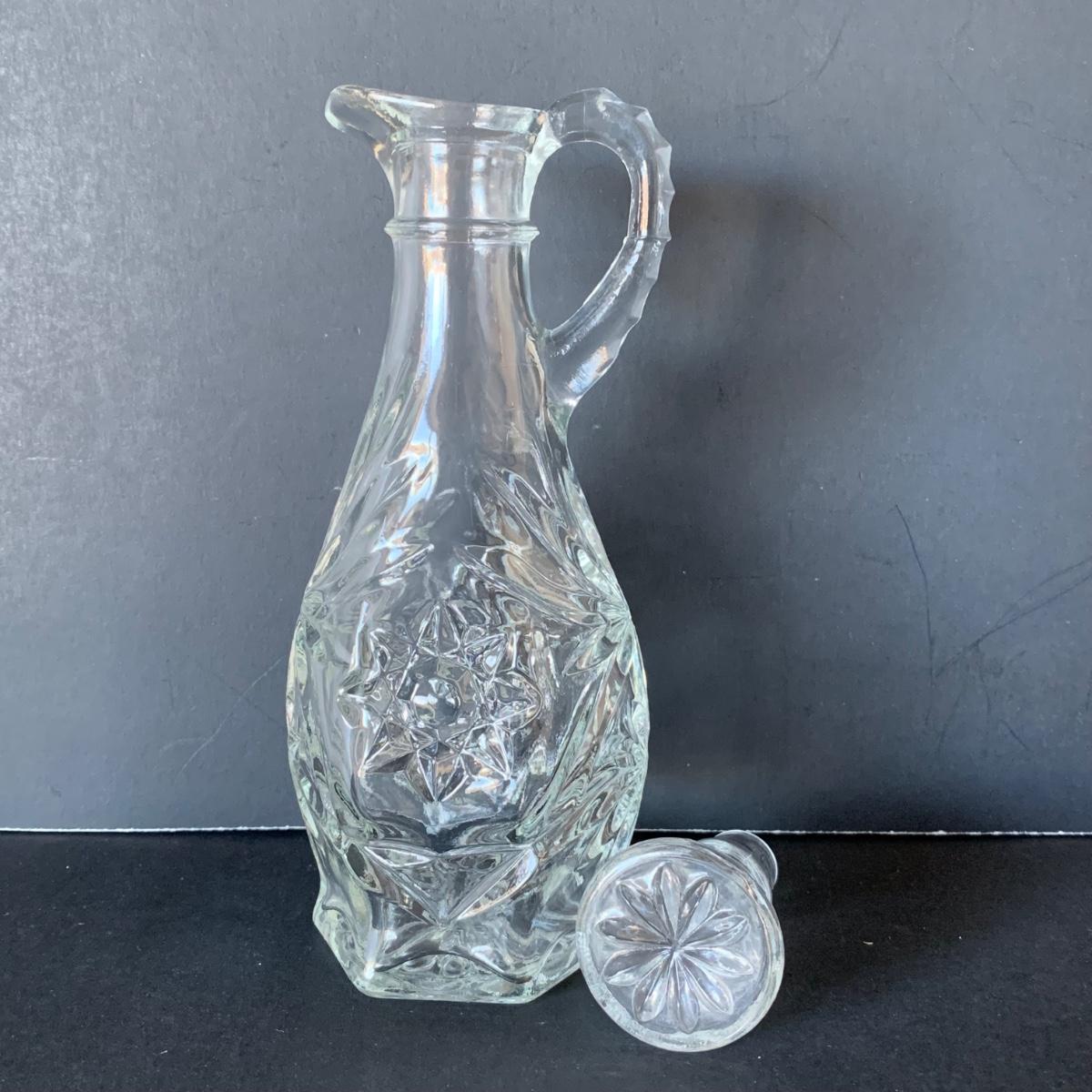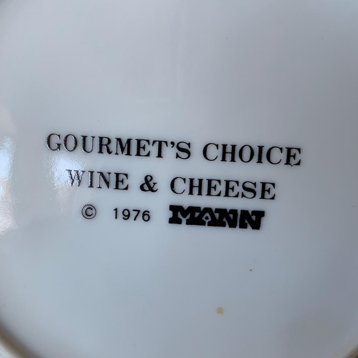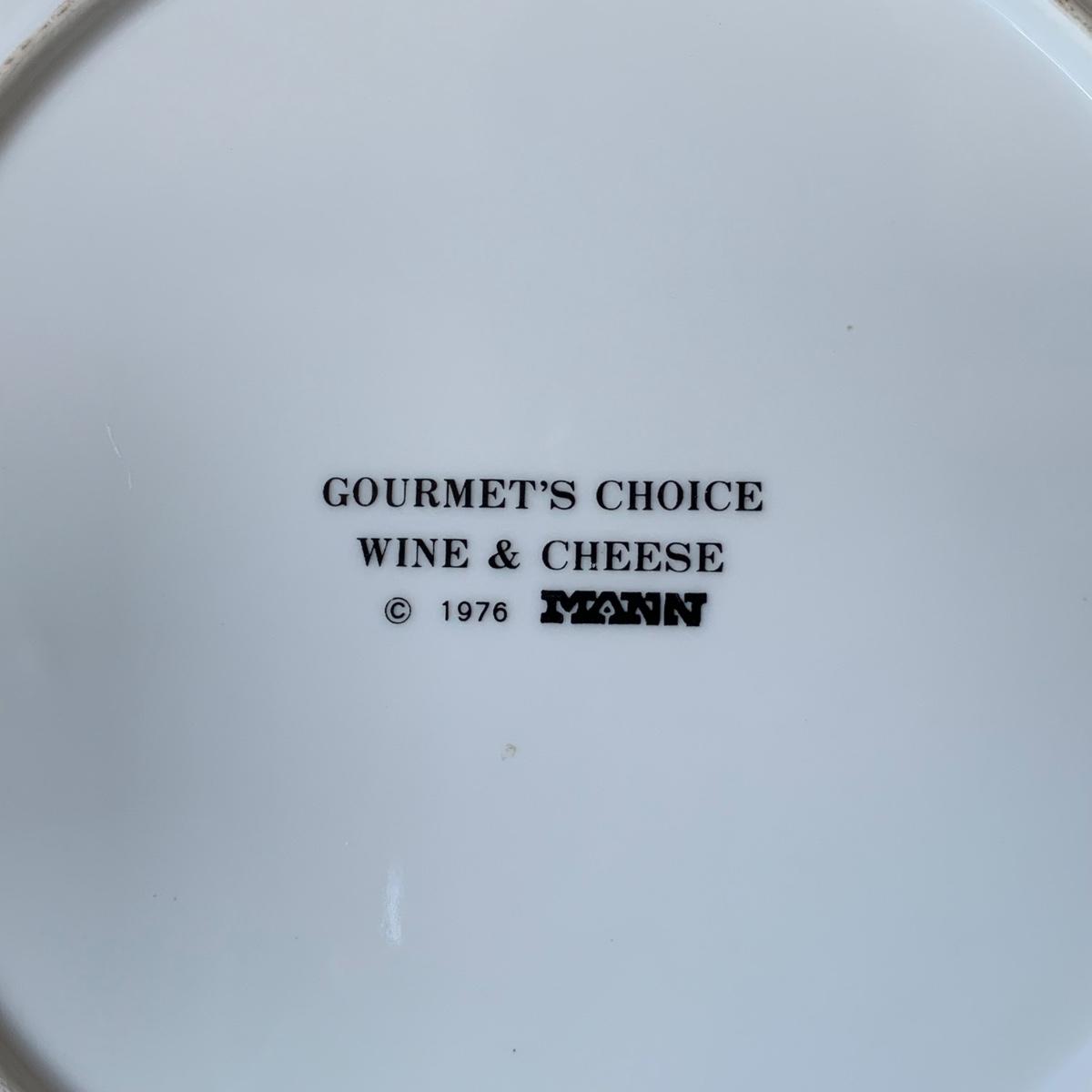 LOT 96 D: Vintage Starburst Anchor Hocking Oil & Vinegar Cruet W/ Stopper & Small Dishes, Mann Gourmet's Choice Wine & Cheese Plates, & Cheese/Pastry Cloche