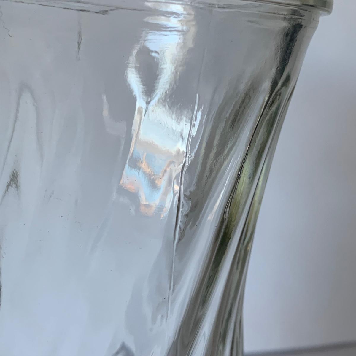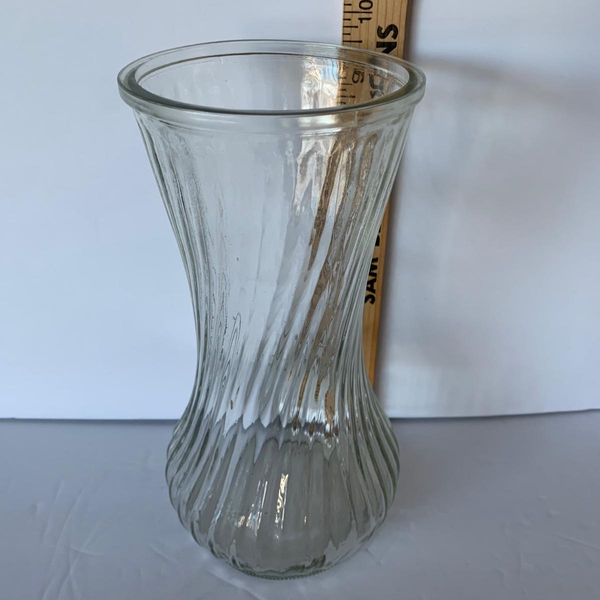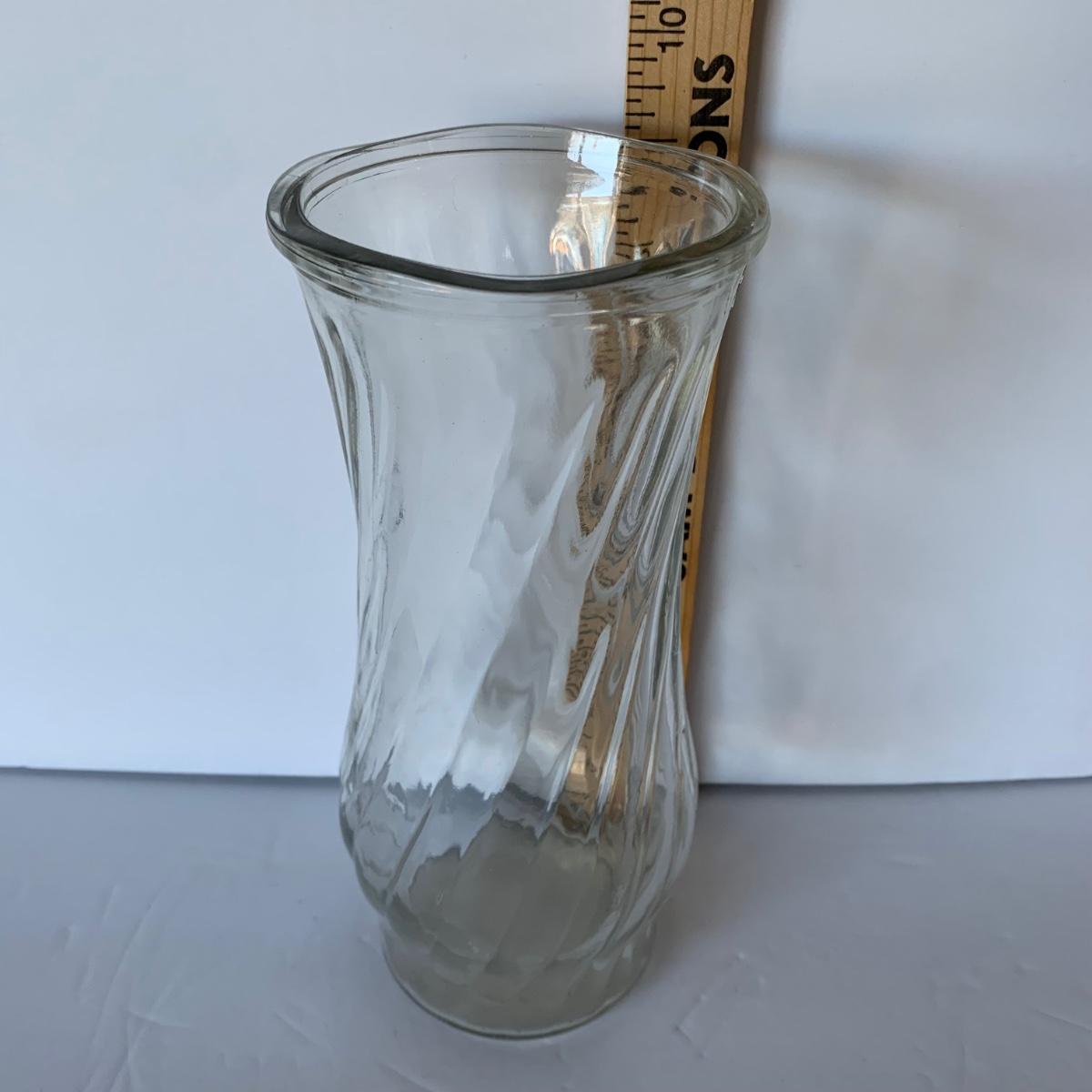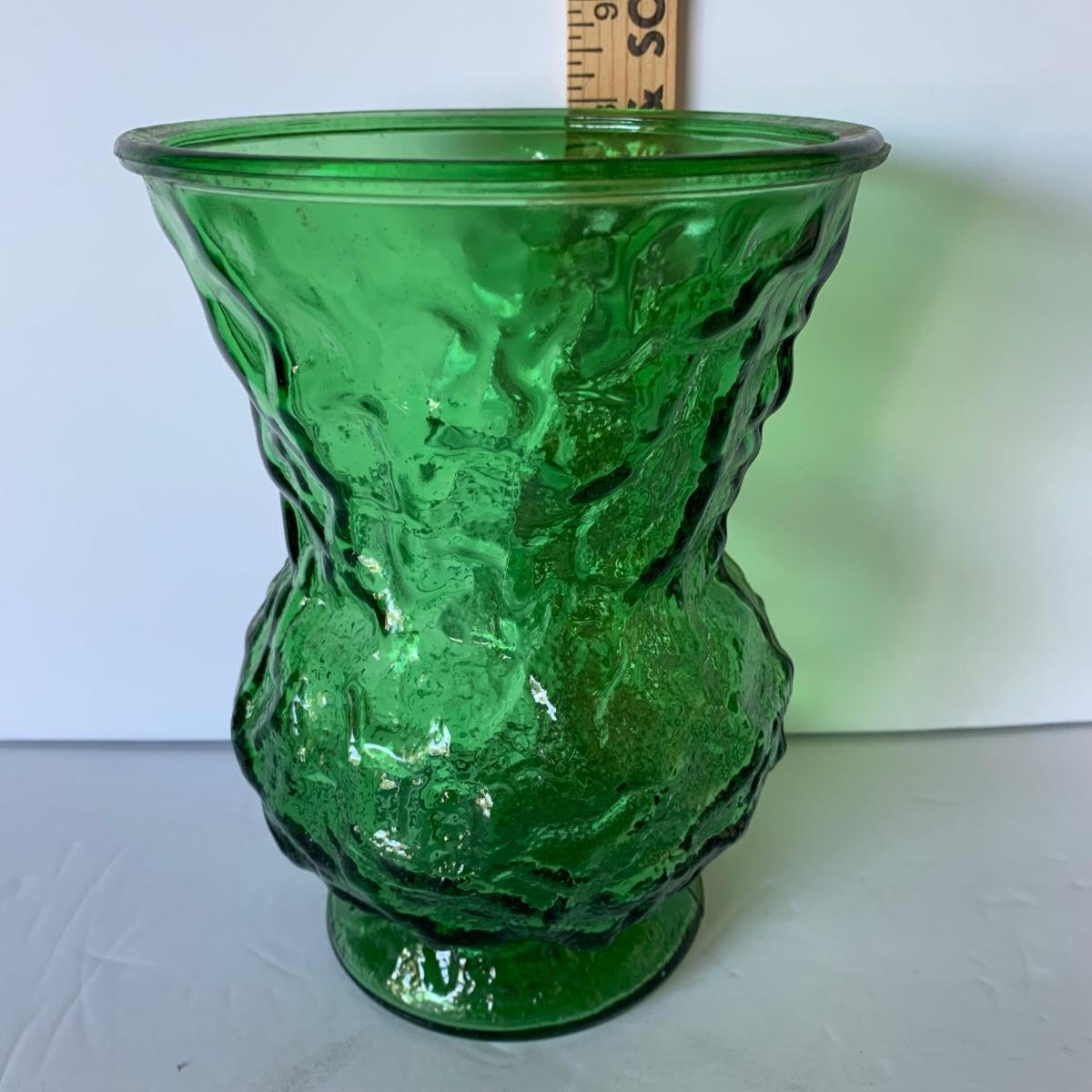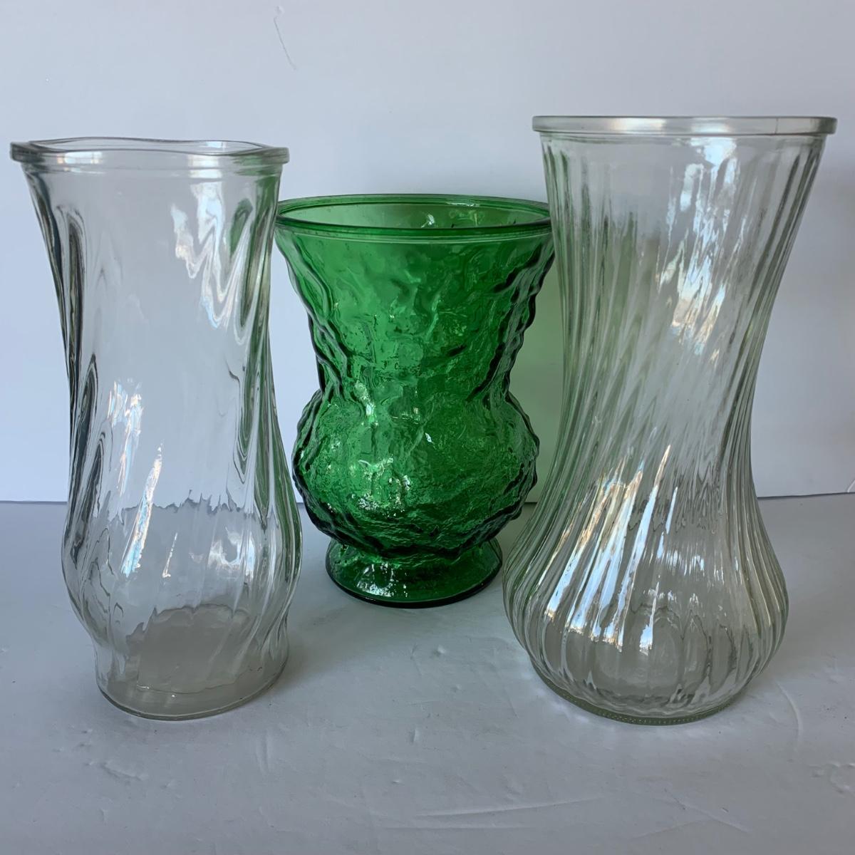 LOT 98 D: Vintage E.O. Brody Green Crinkle Glass Vase, Hoosier Glass Clear Swirl Vase, & Clear Glass Swirl Vase