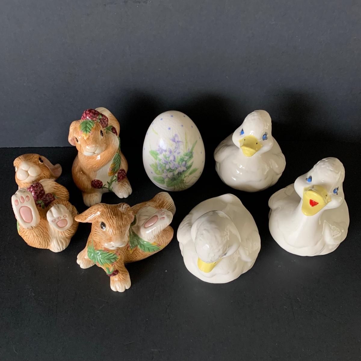 LOT 109 K: Ceramic Floral Egg, Ducks, & Bunnies