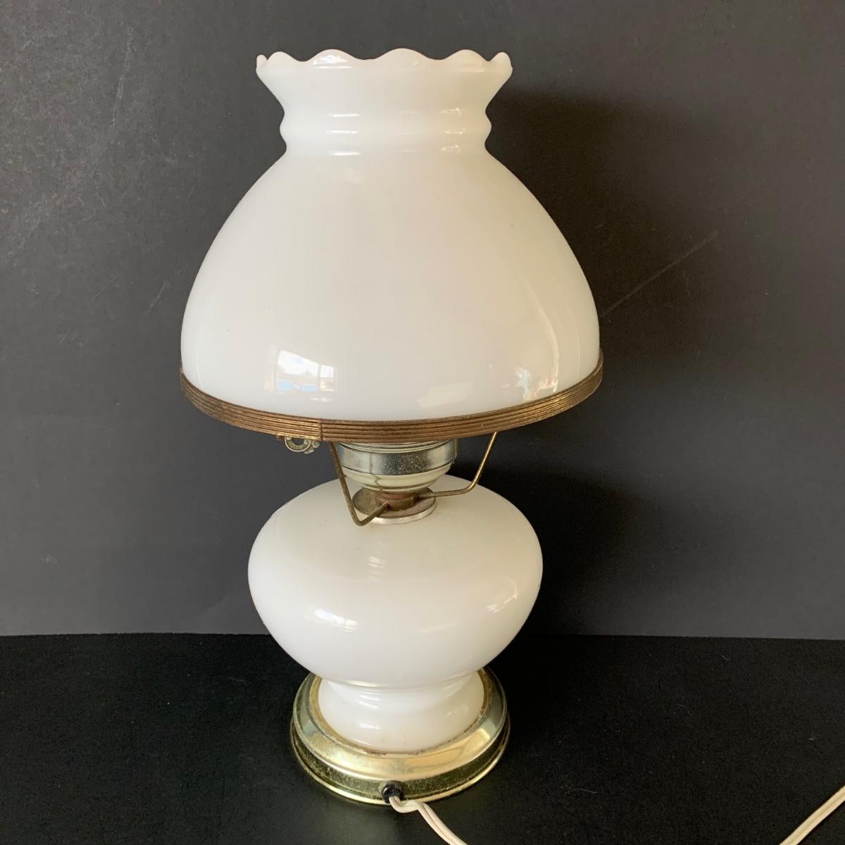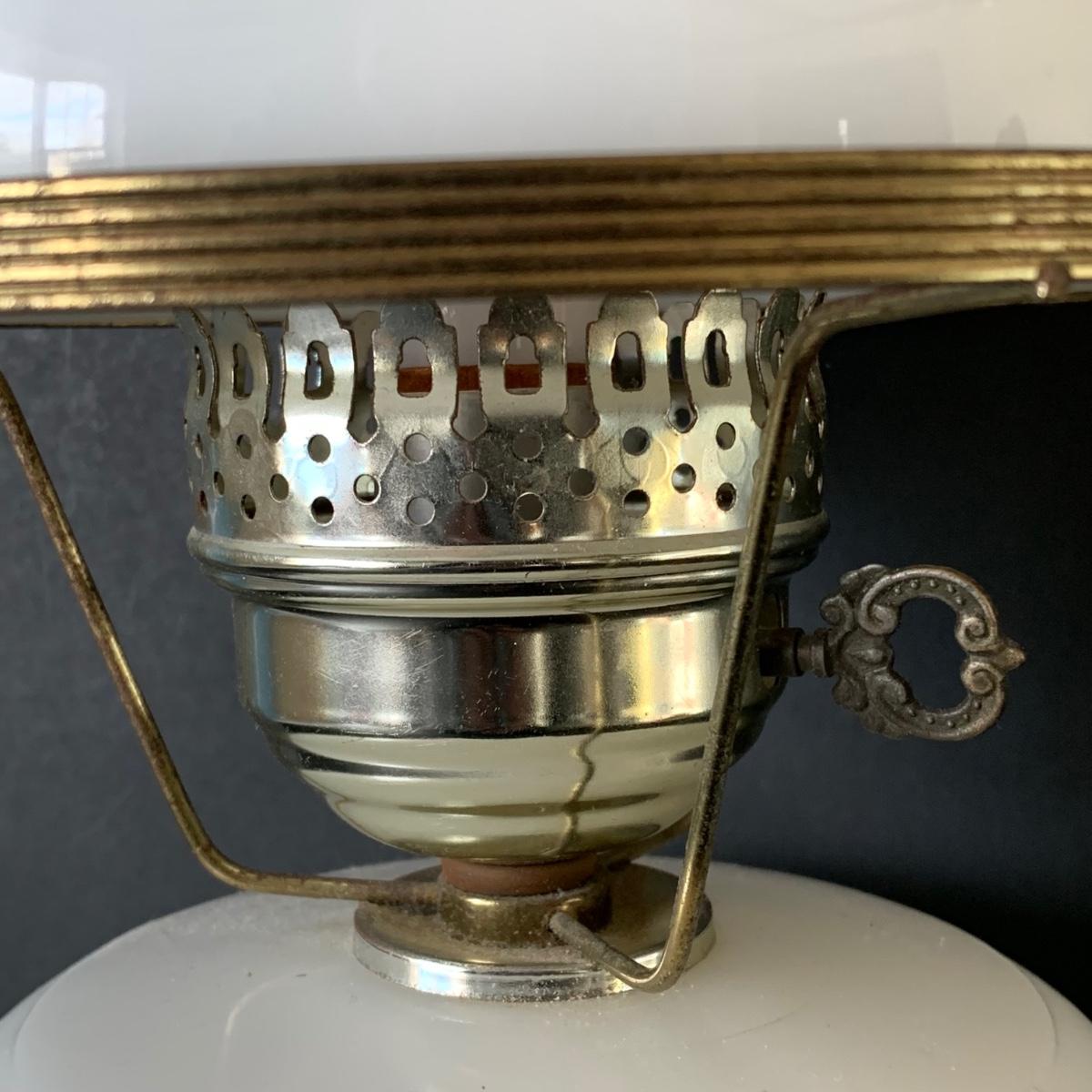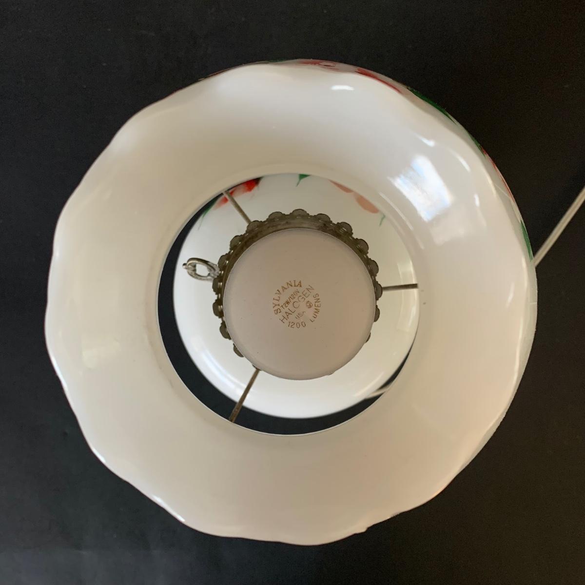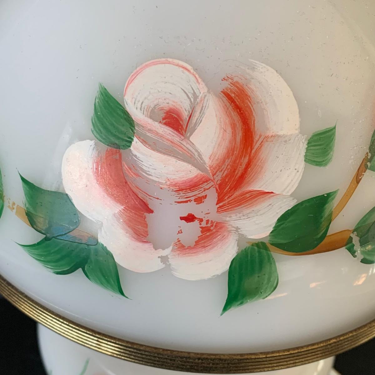 LOT 111 K: Vintage Hand Painted Milk Glass Hurricane Lamp