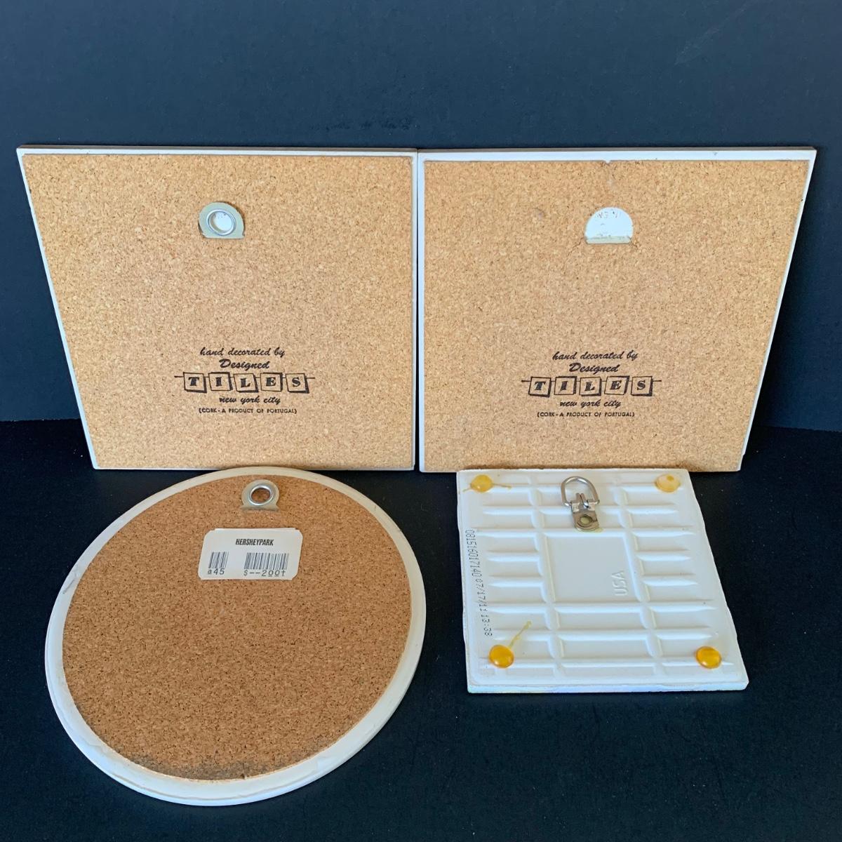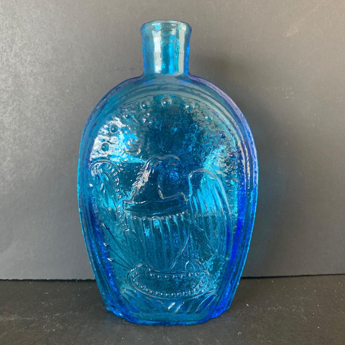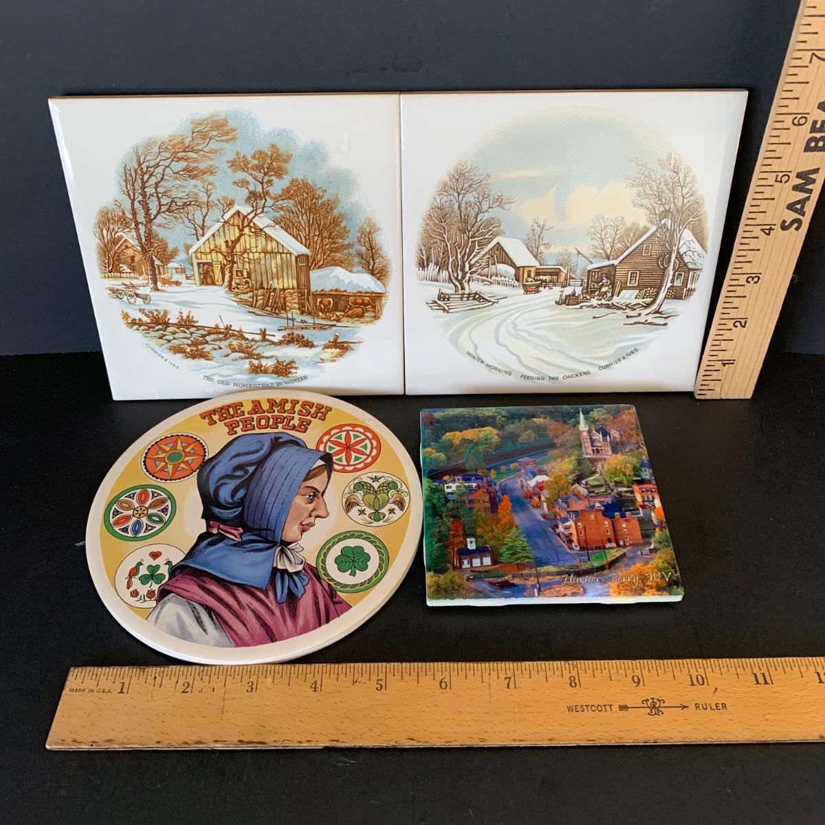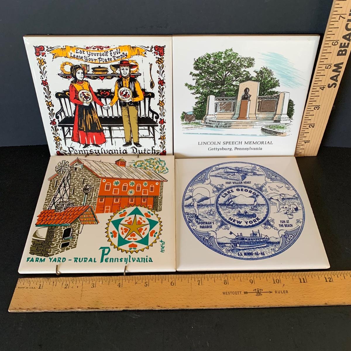 LOT 112 K Vintage Blue Glass Bottle W/ Eagle On Shield, Money Mug, Pennsylvania Themed Trivets, & More