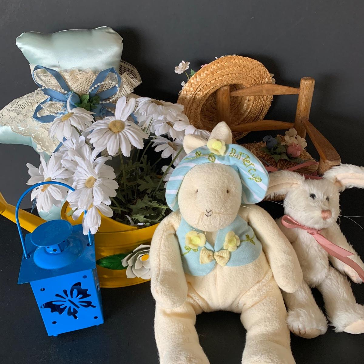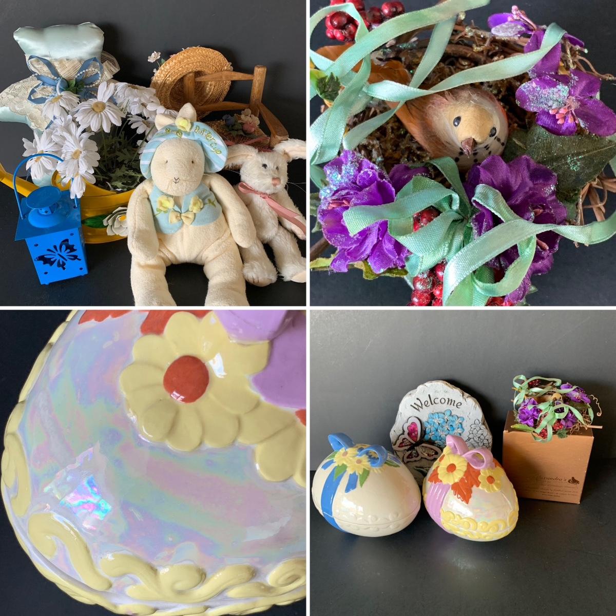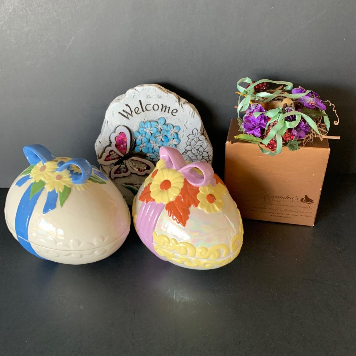 LOT 116 K: Ceramic White & Iridescent Egg Dishes W/Lids, Alexandra's Nesting Bird, Bunnies By The Bay & Boyds Bears Stuffed Animals & More