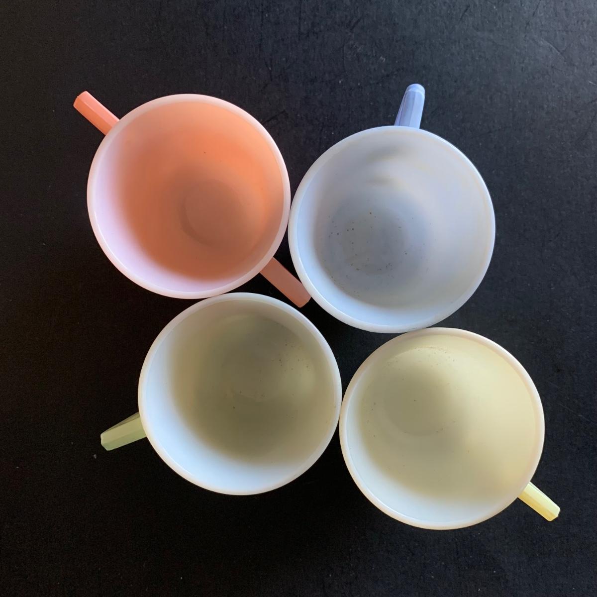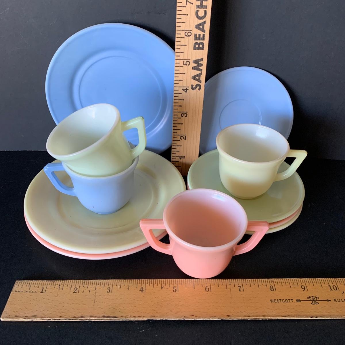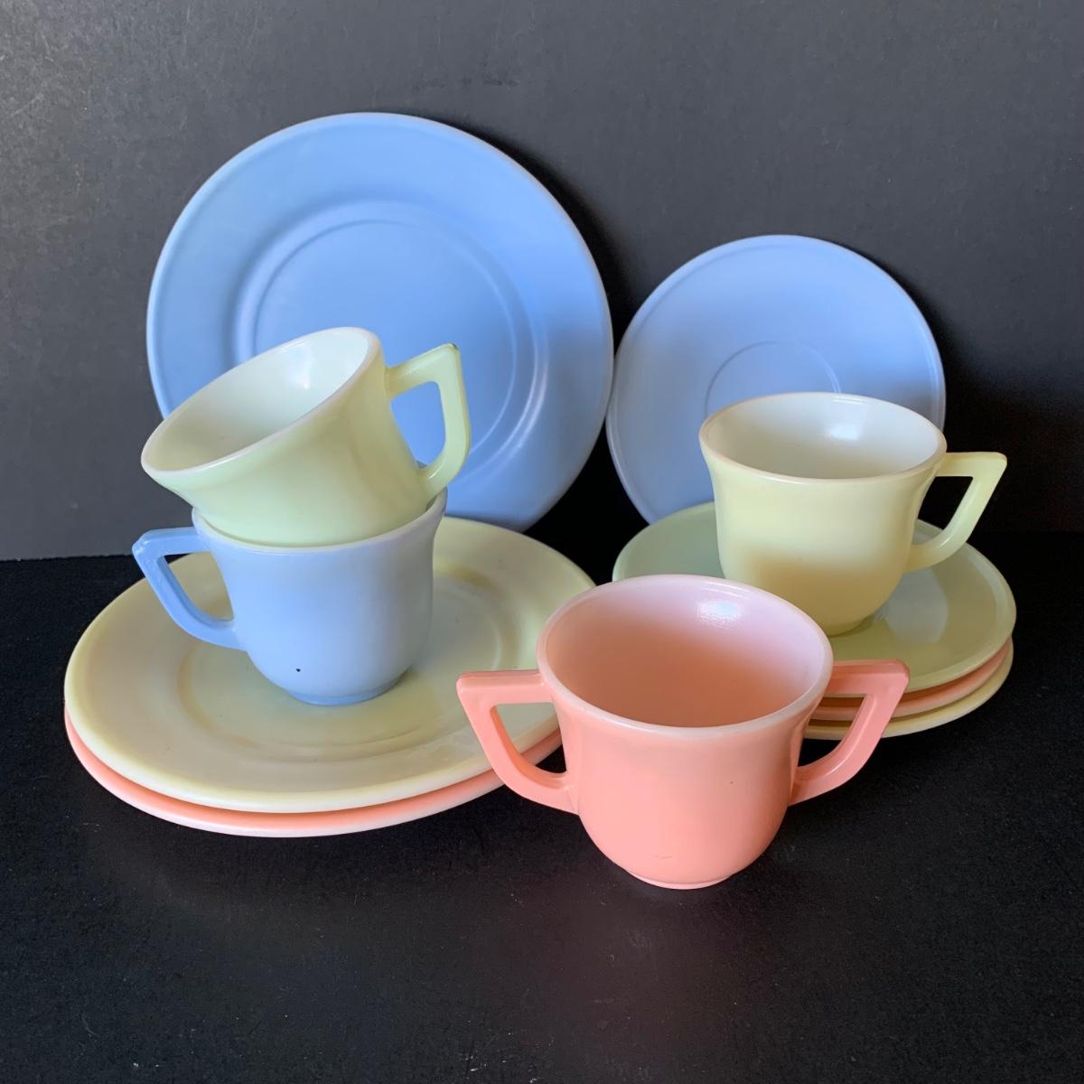 LOT 118 K: Vintage Hazel Atlas Pastel Milk Glass Tea Set