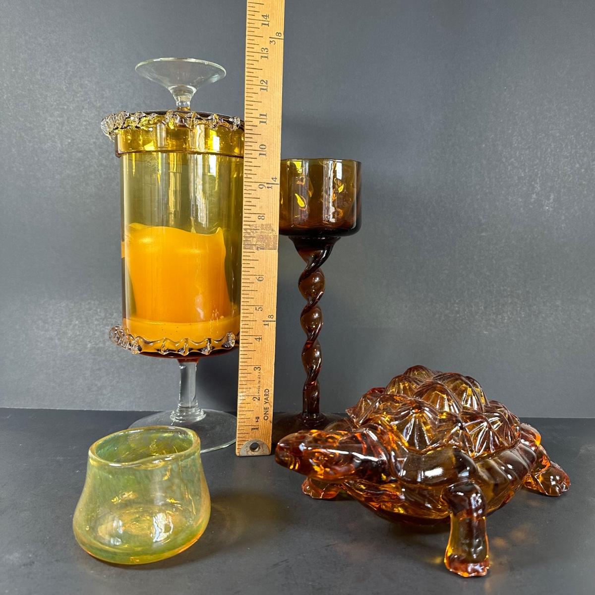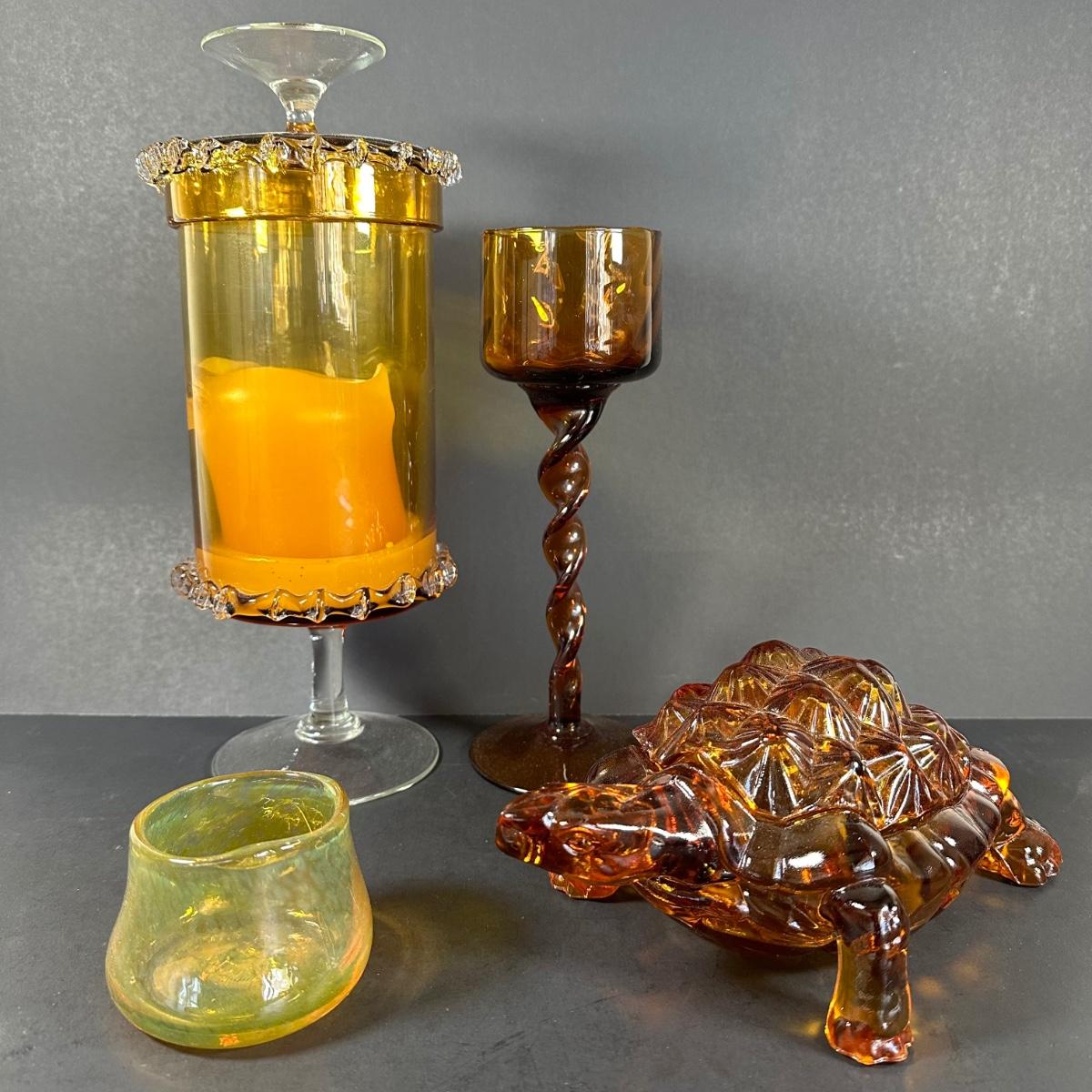 LOT 136L: Amber Glass Candy Dishes - Vintage LG Wright Turtle & More