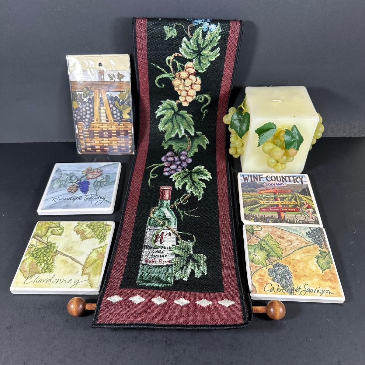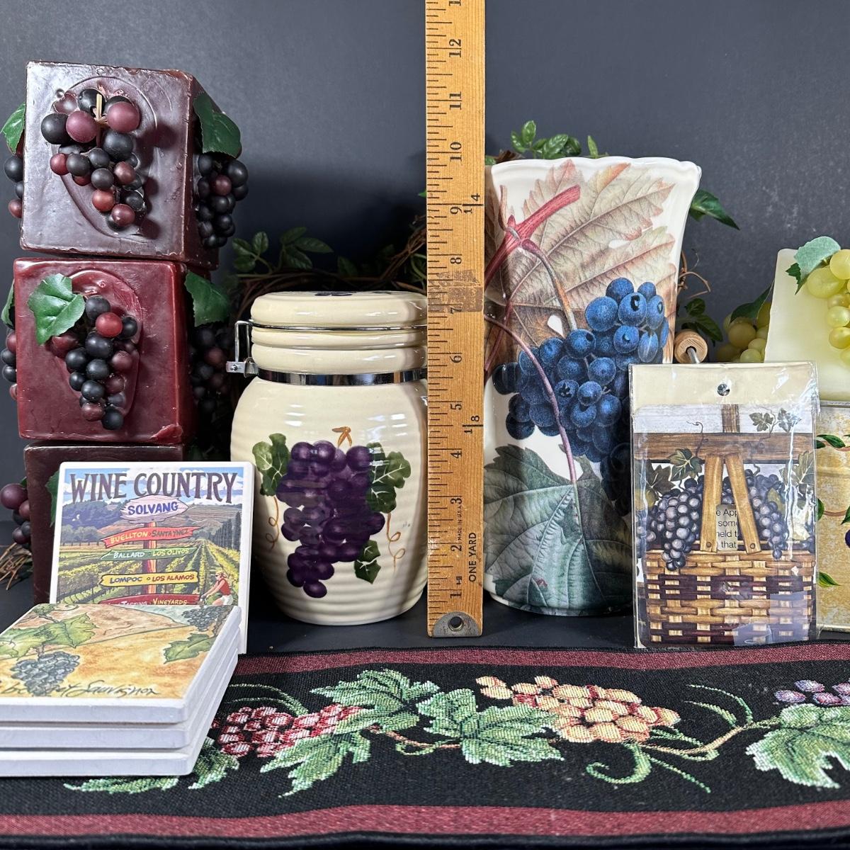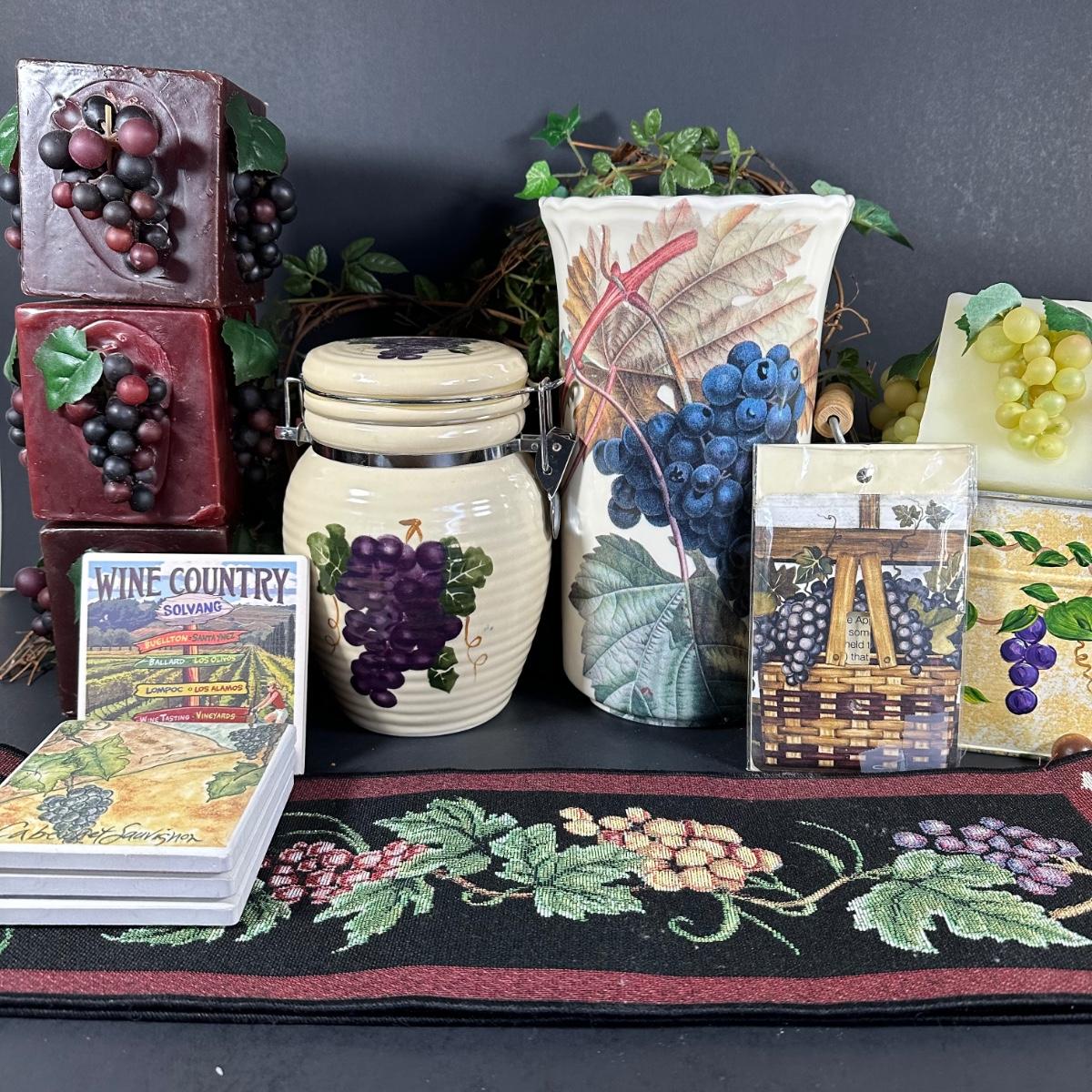 LOT 145L: Wine/Grape Themed Home Decor - Candles, Canisters, Vases & More