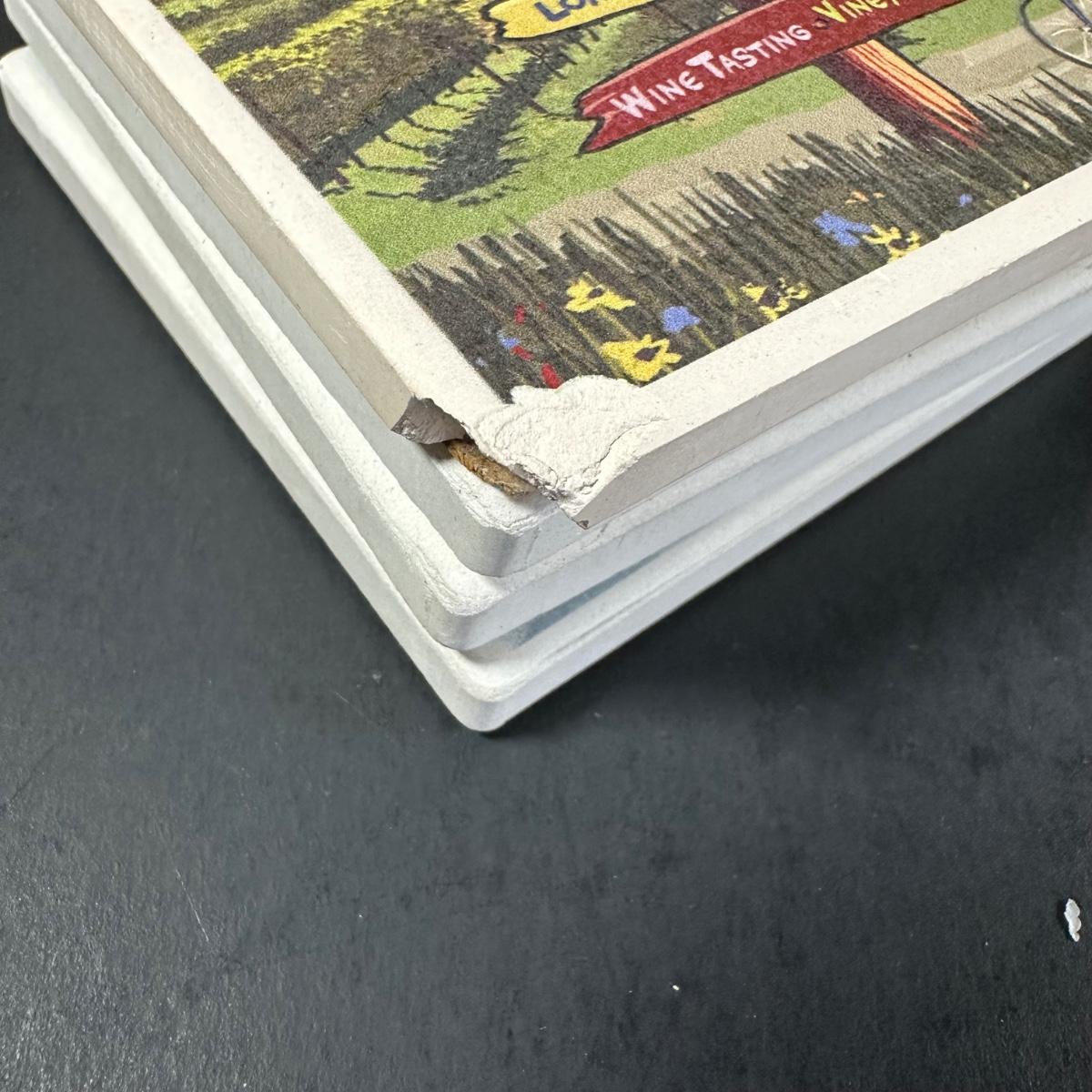 One coaster has a chip - Please see all pictures as they are the best representation of the items. The pictures show condition, measurements if taken, and what is included in the lot. Due to the large amount that we photograph and the time frame, we are not always able to take measurements. All items unless noted, are pre-owned and have been used. If you purchased furniture, you must bring help. We do not allow one person to carry large furniture out on their own. Bring help, tools and a truck for the safety of our client’s homes, and your personal safety. Any damages that result to the property including walls, and floors due to moving of the furniture will be charged to the buyer. Company policy. Thank you.