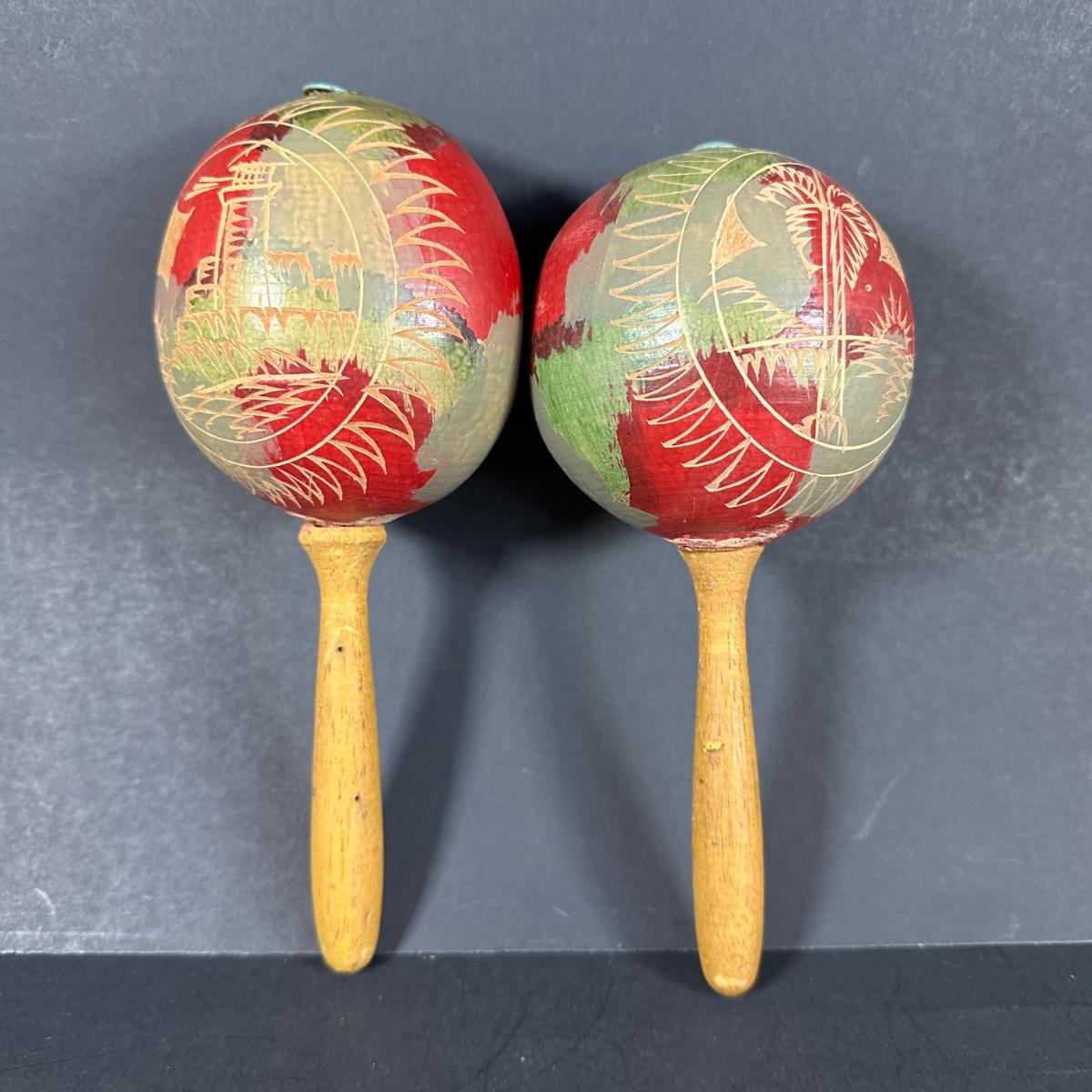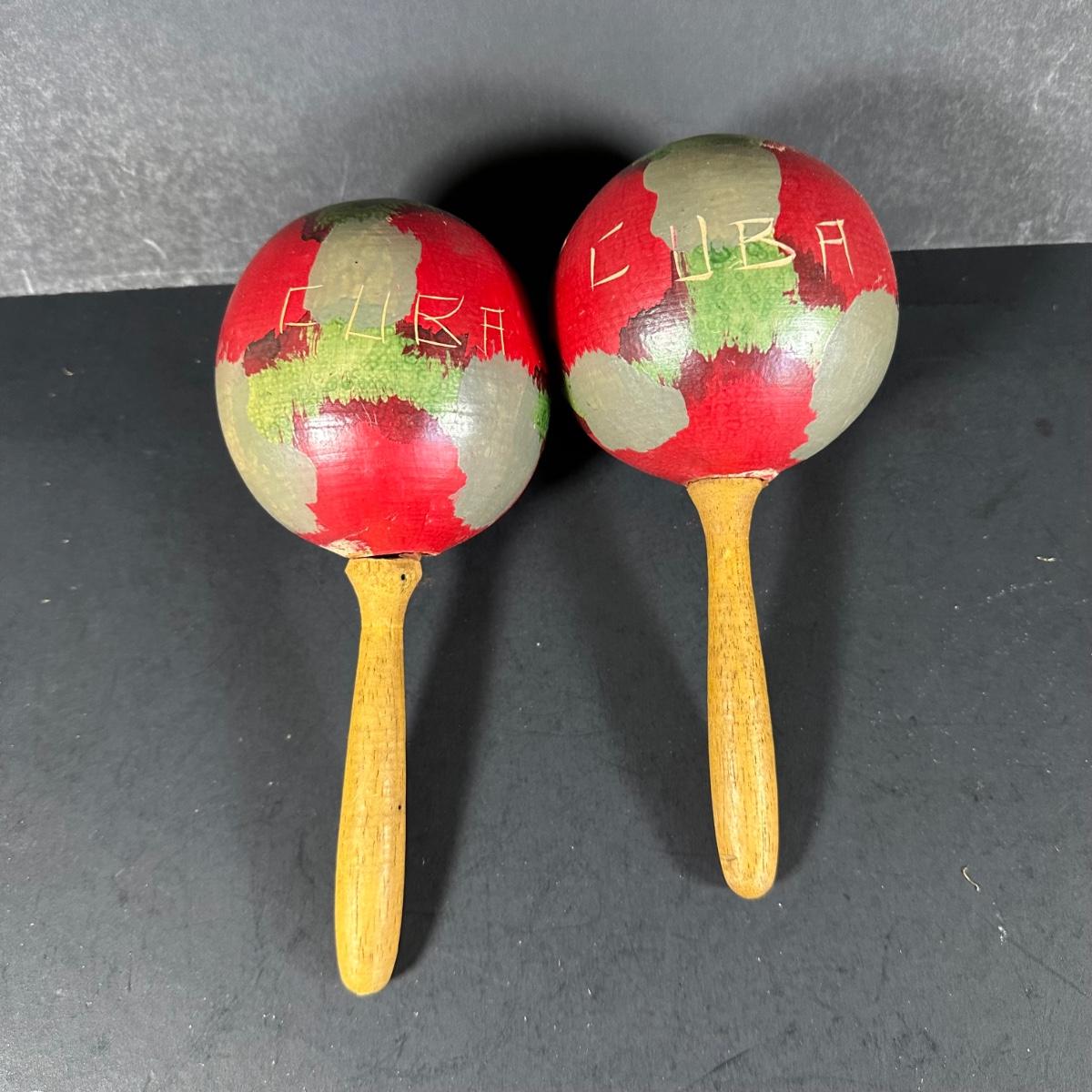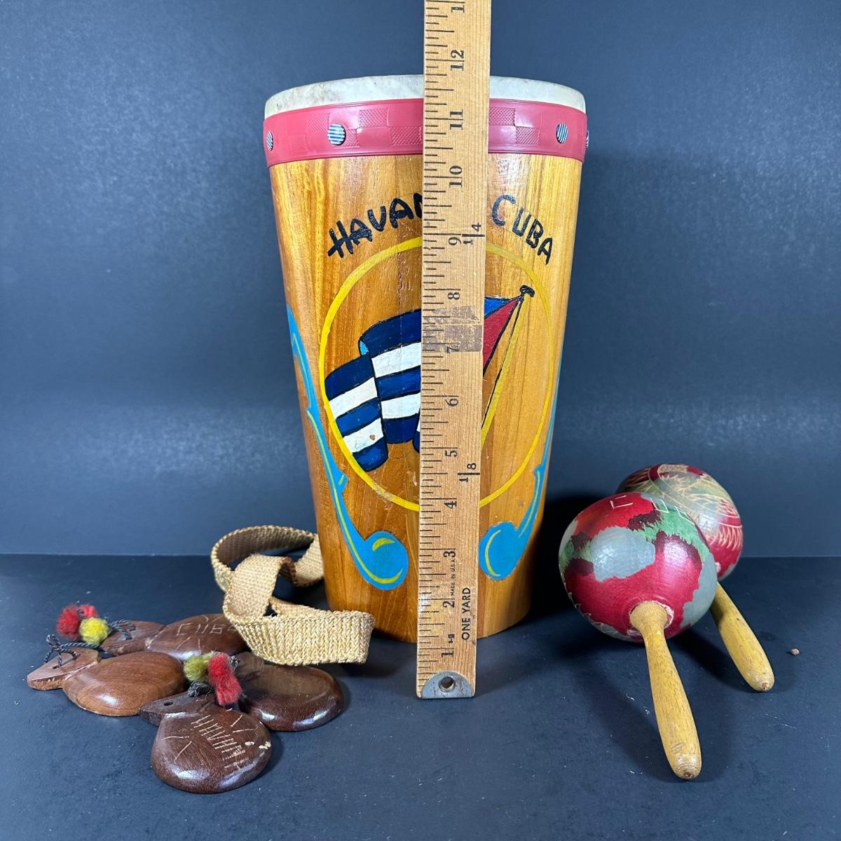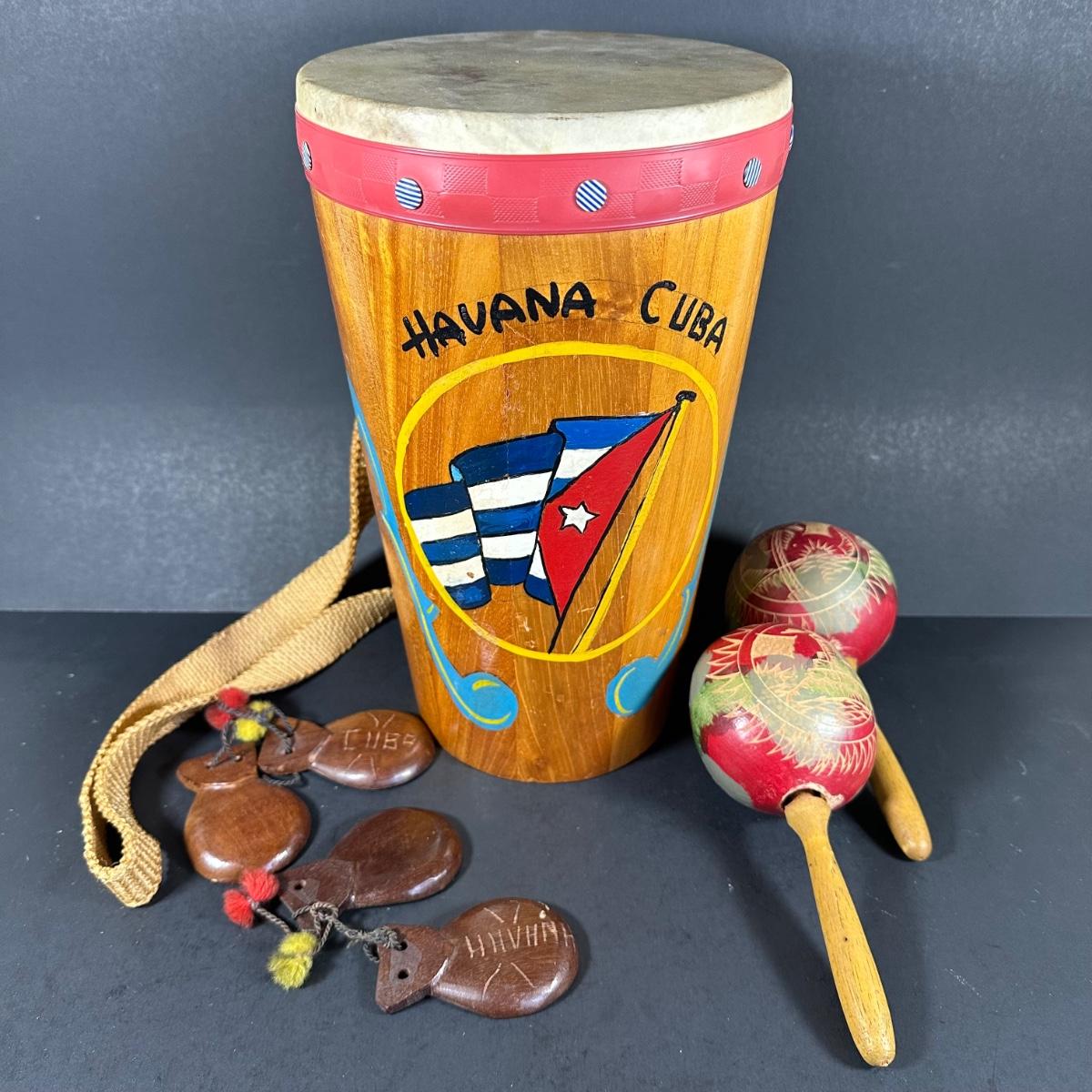 LOT 147L: Havana Cuba Souvenirs/ Instruments - Bongo Drum, Maracas & Castanets