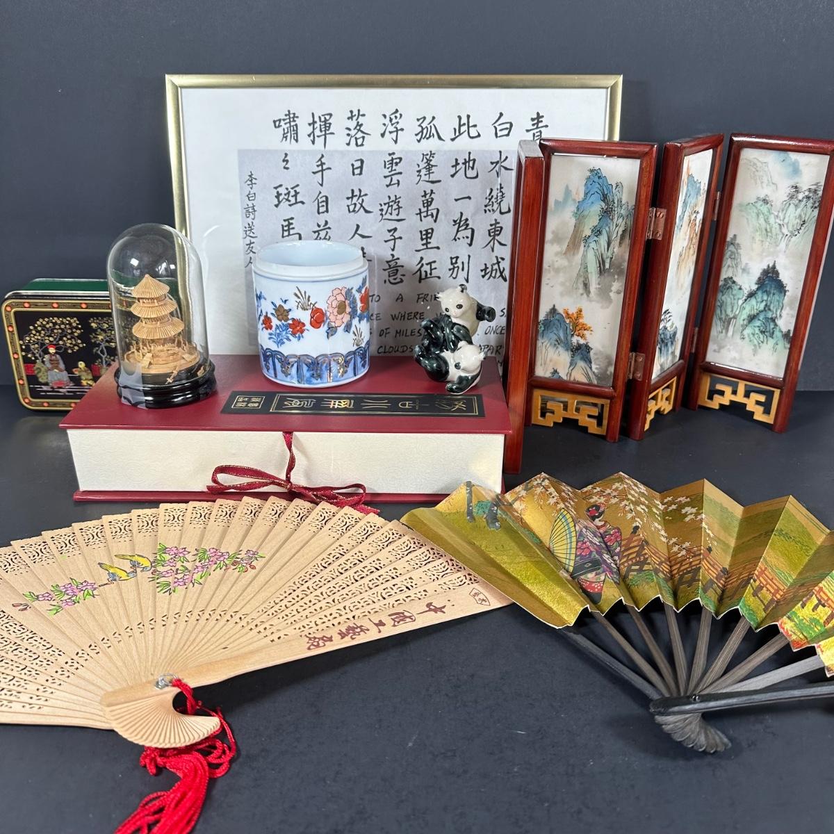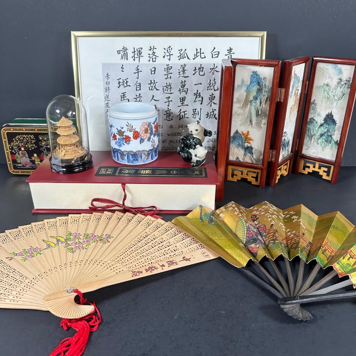 LOT 150L: Chinese Collectables & Souvenirs - Miniature Divider Screens, Decorative Fans & More