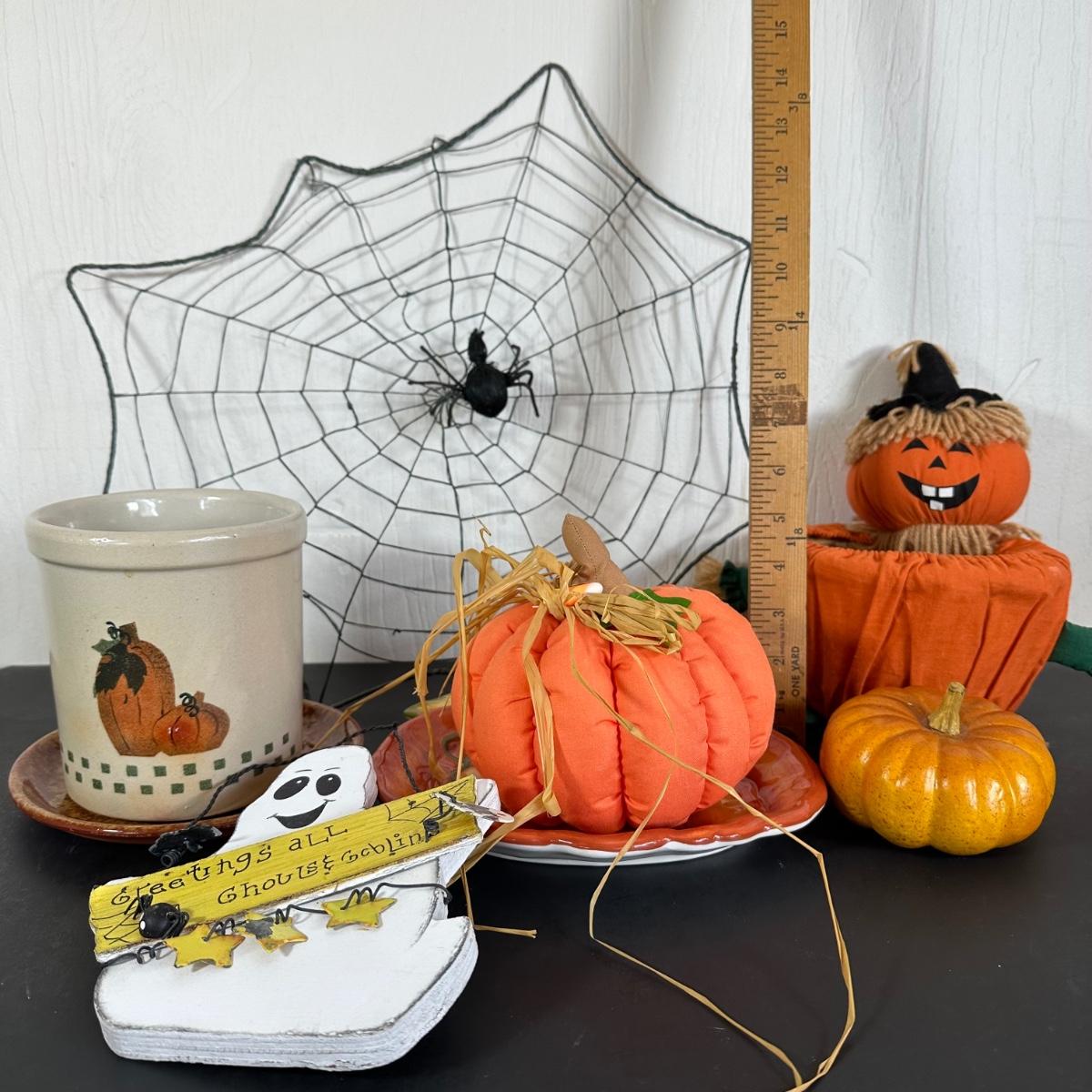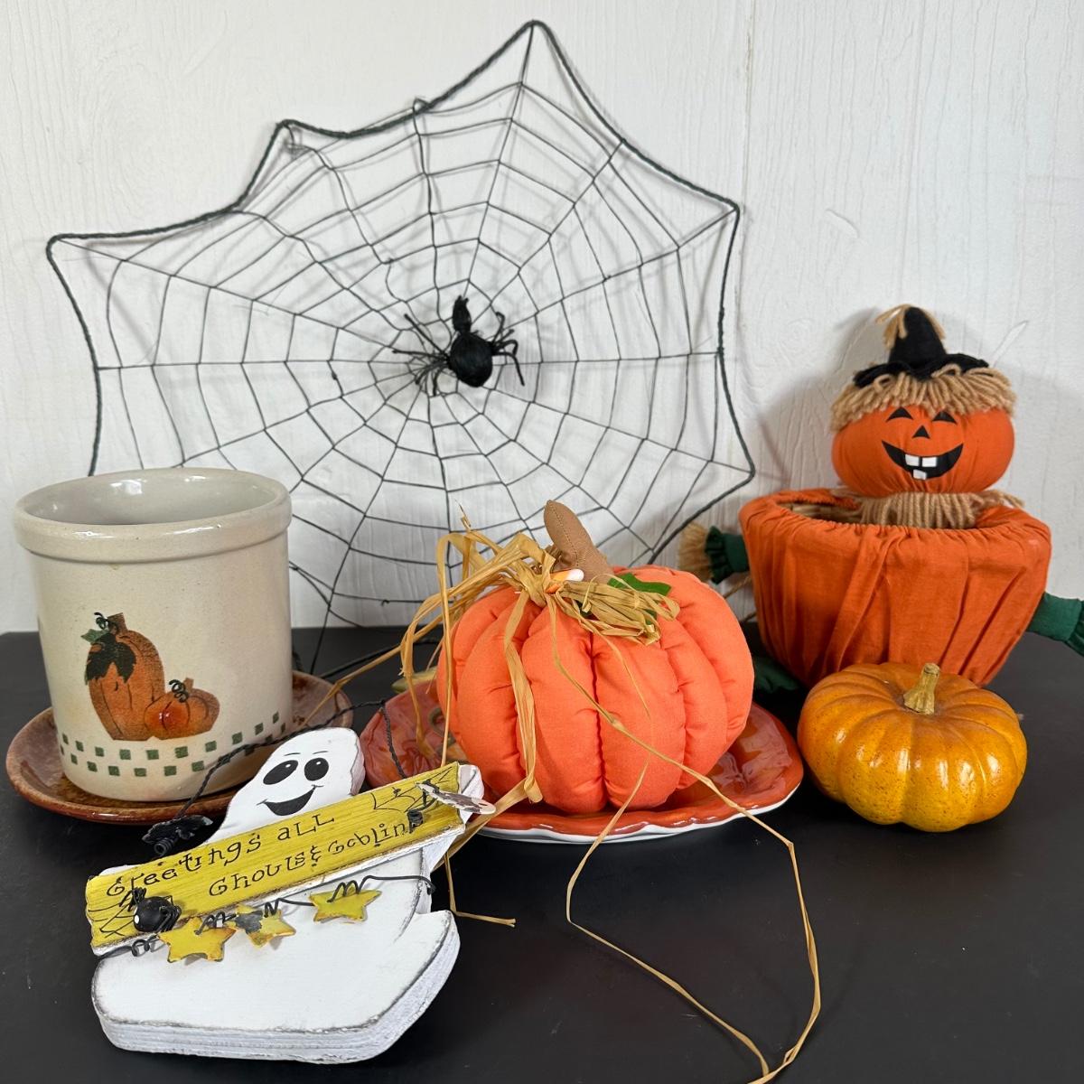 LOT 159L: Roseville Pottery Jar & Halloween Decorations