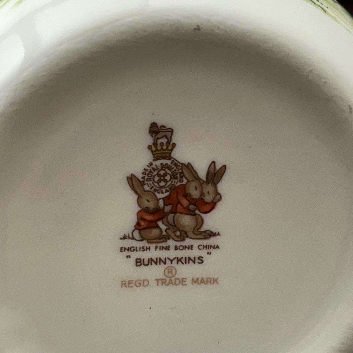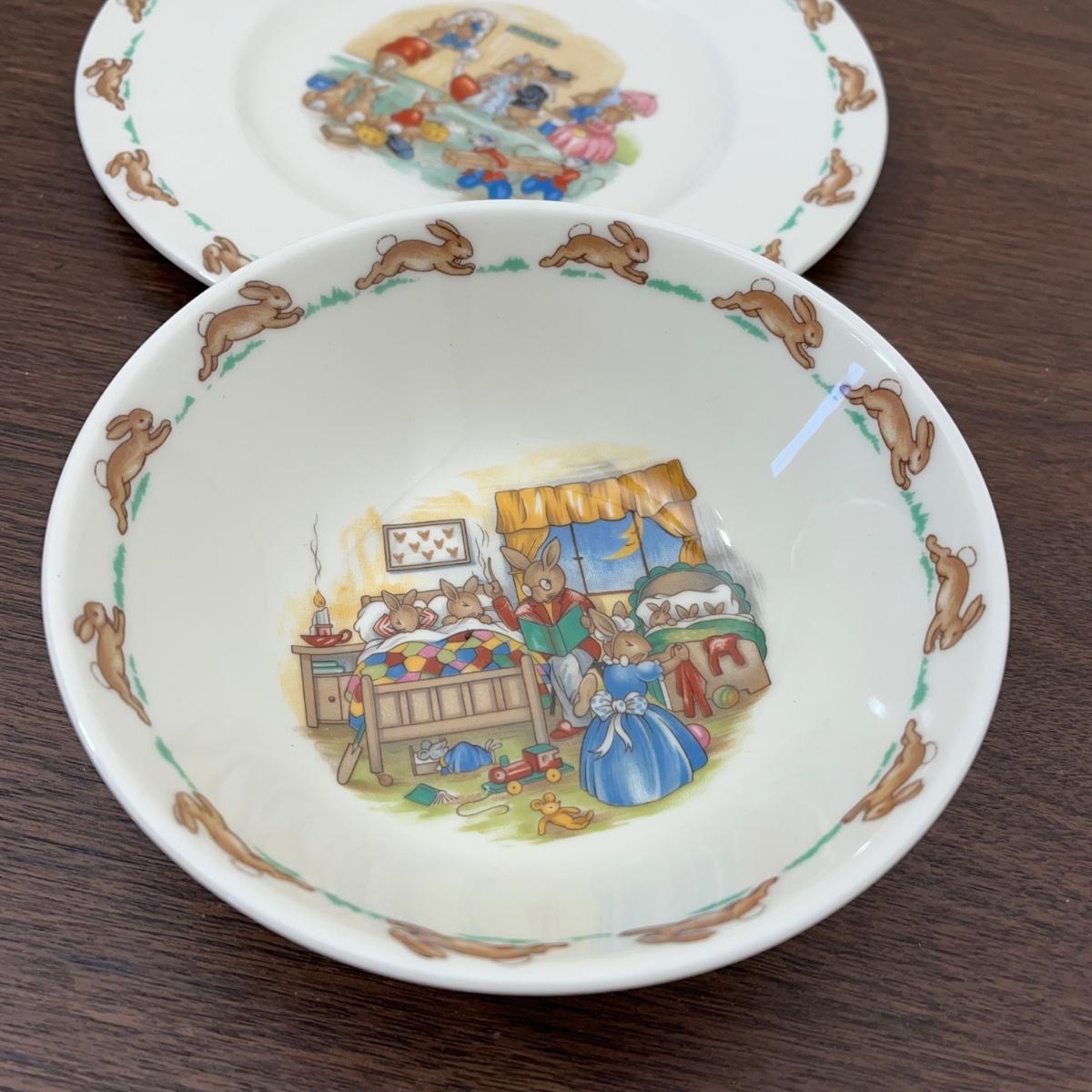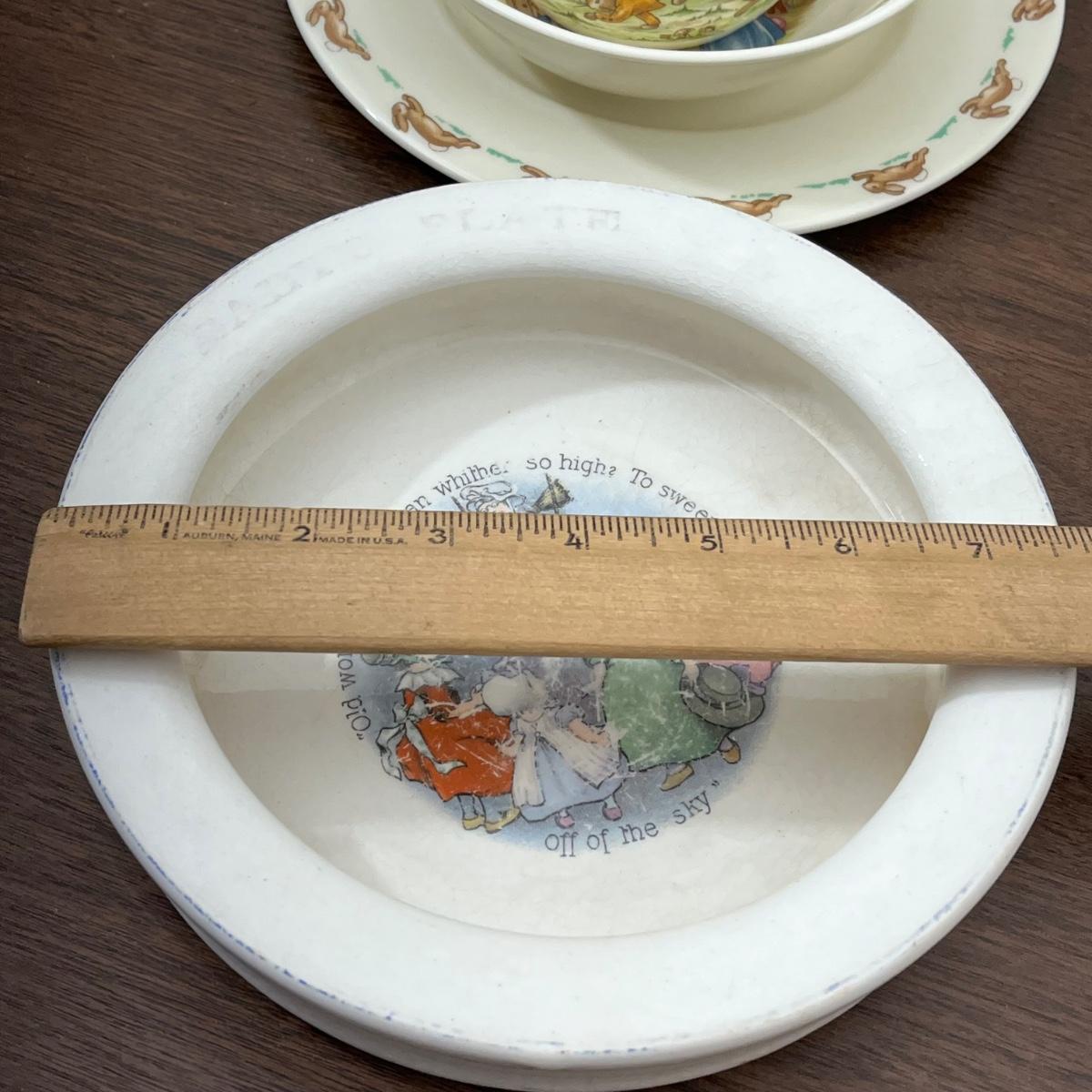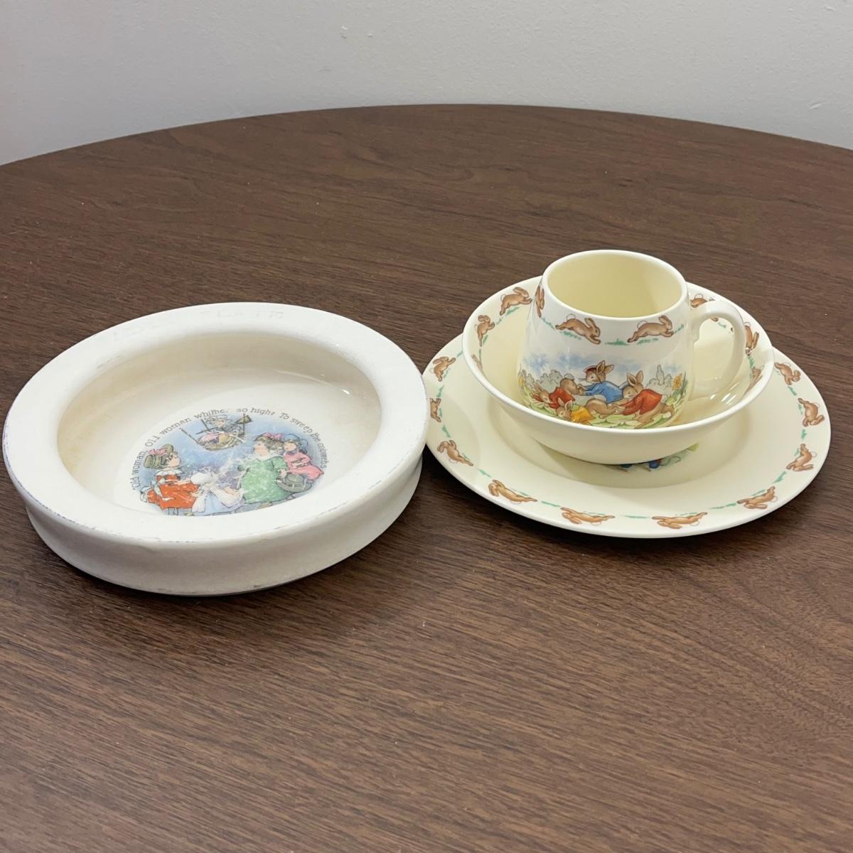 LOT 168K: Antique Wellsville Bowl and Vintage Royal Doulton Bunnykins Place Setting