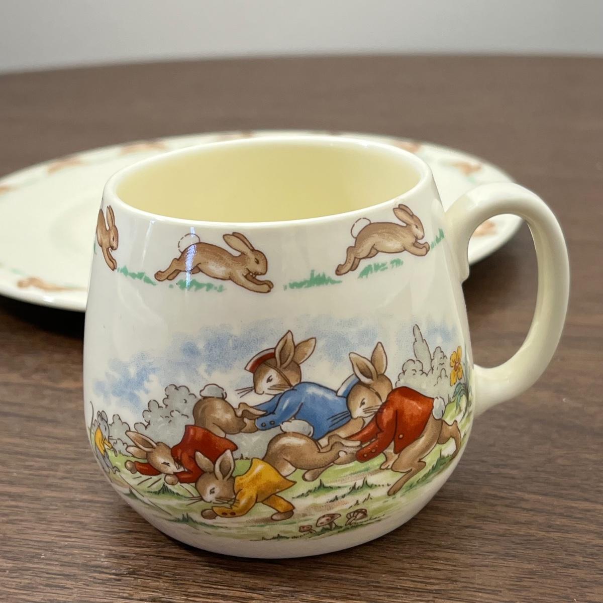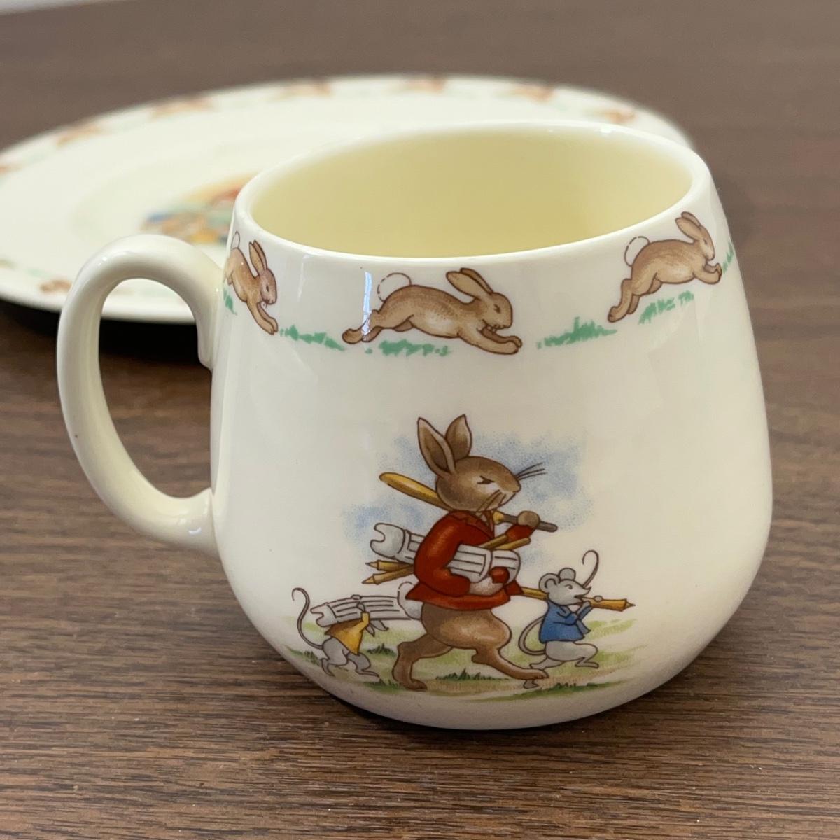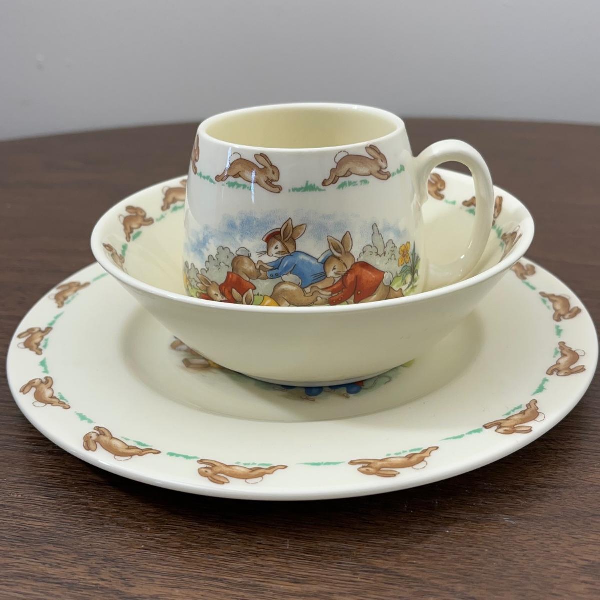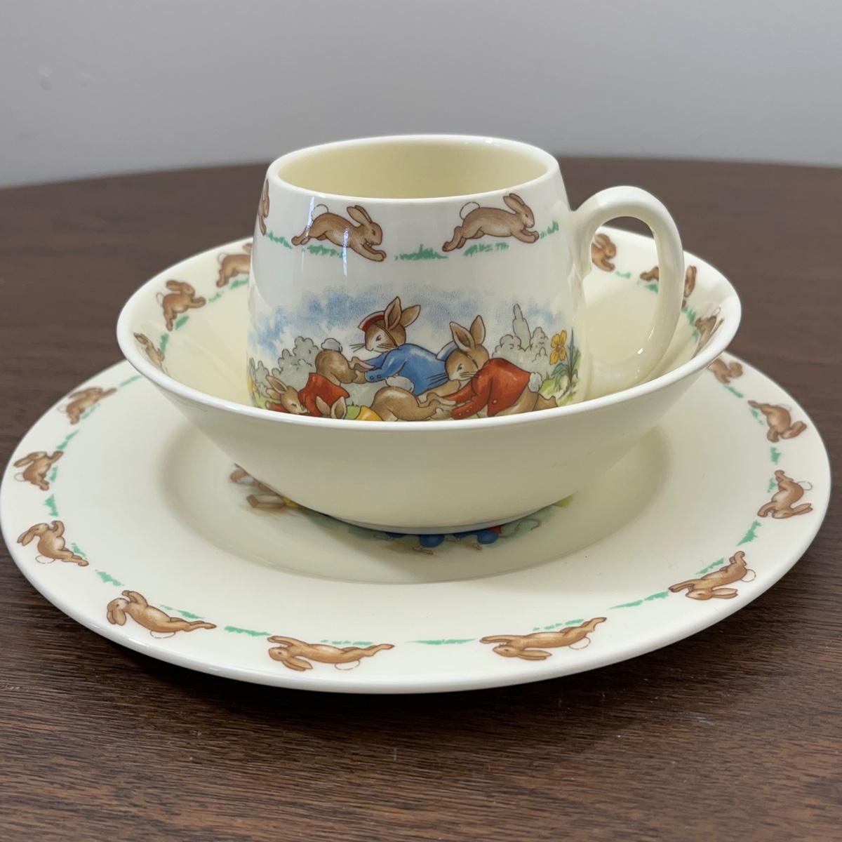 LOT 168K: Antique Wellsville Bowl and Vintage Royal Doulton Bunnykins Place Setting