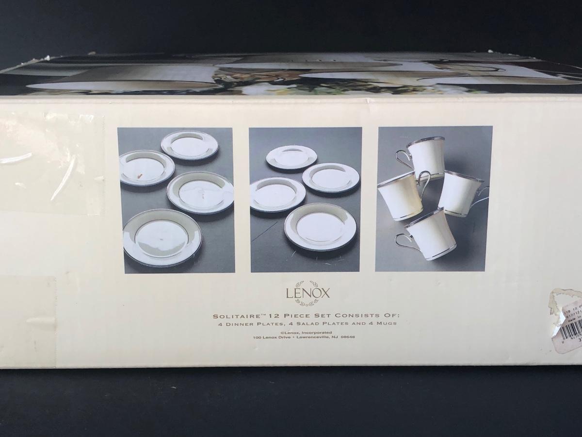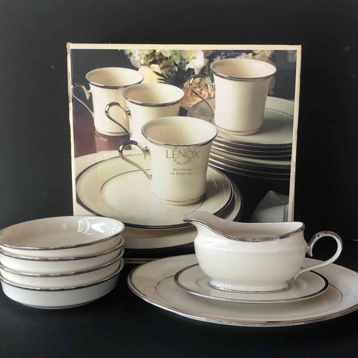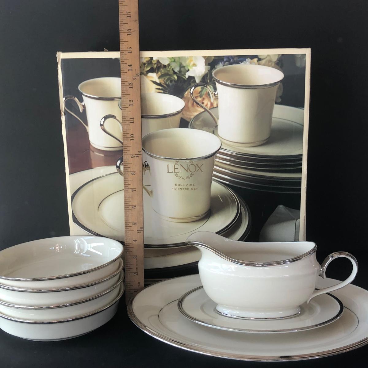 LOT 205K: Lenox Solitaire - Boxed Set of 12 Plates and Mugs w/ Four Bowls, Gravy Boat & Oval Platter
