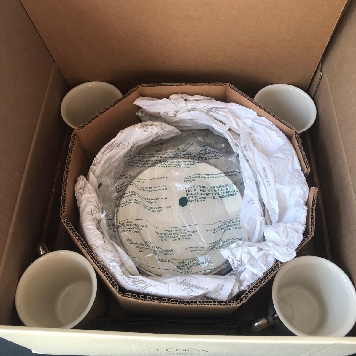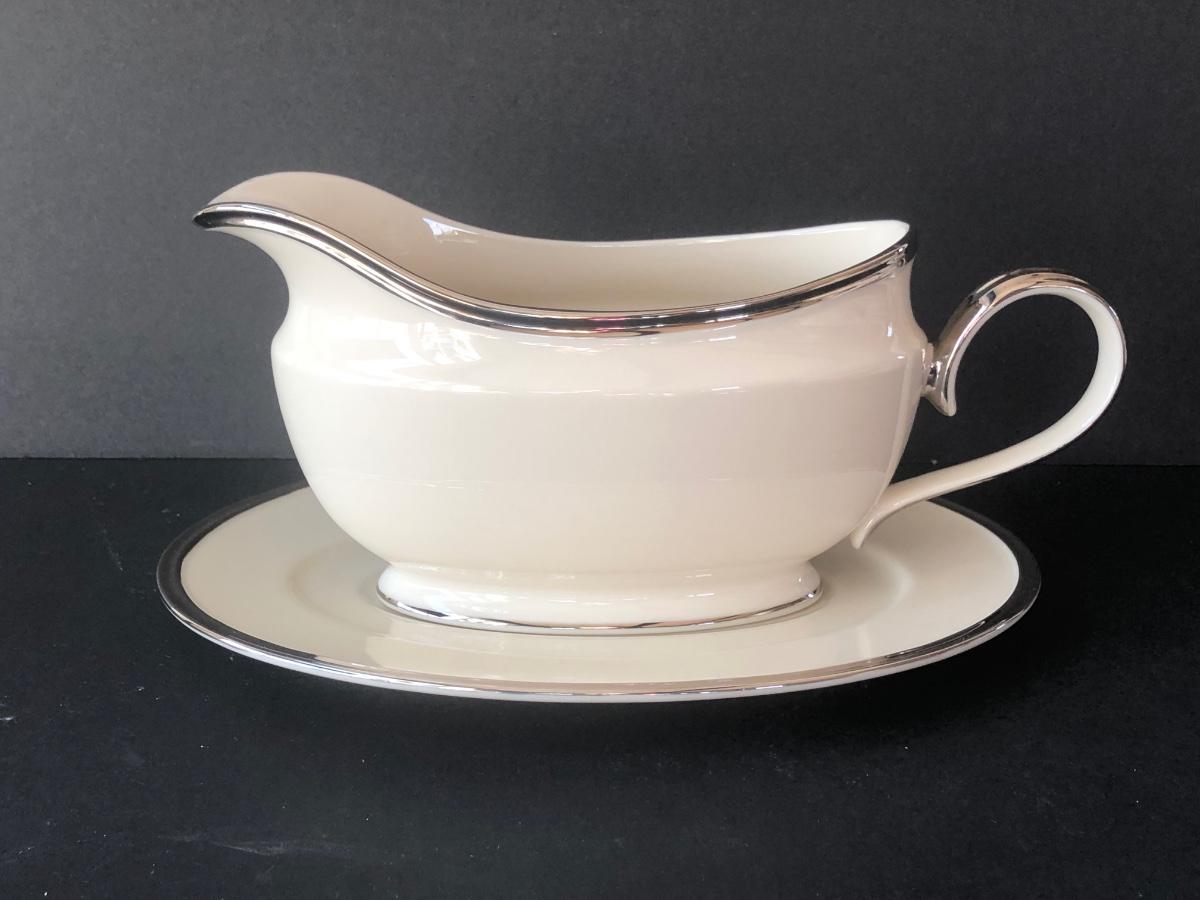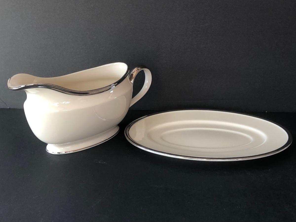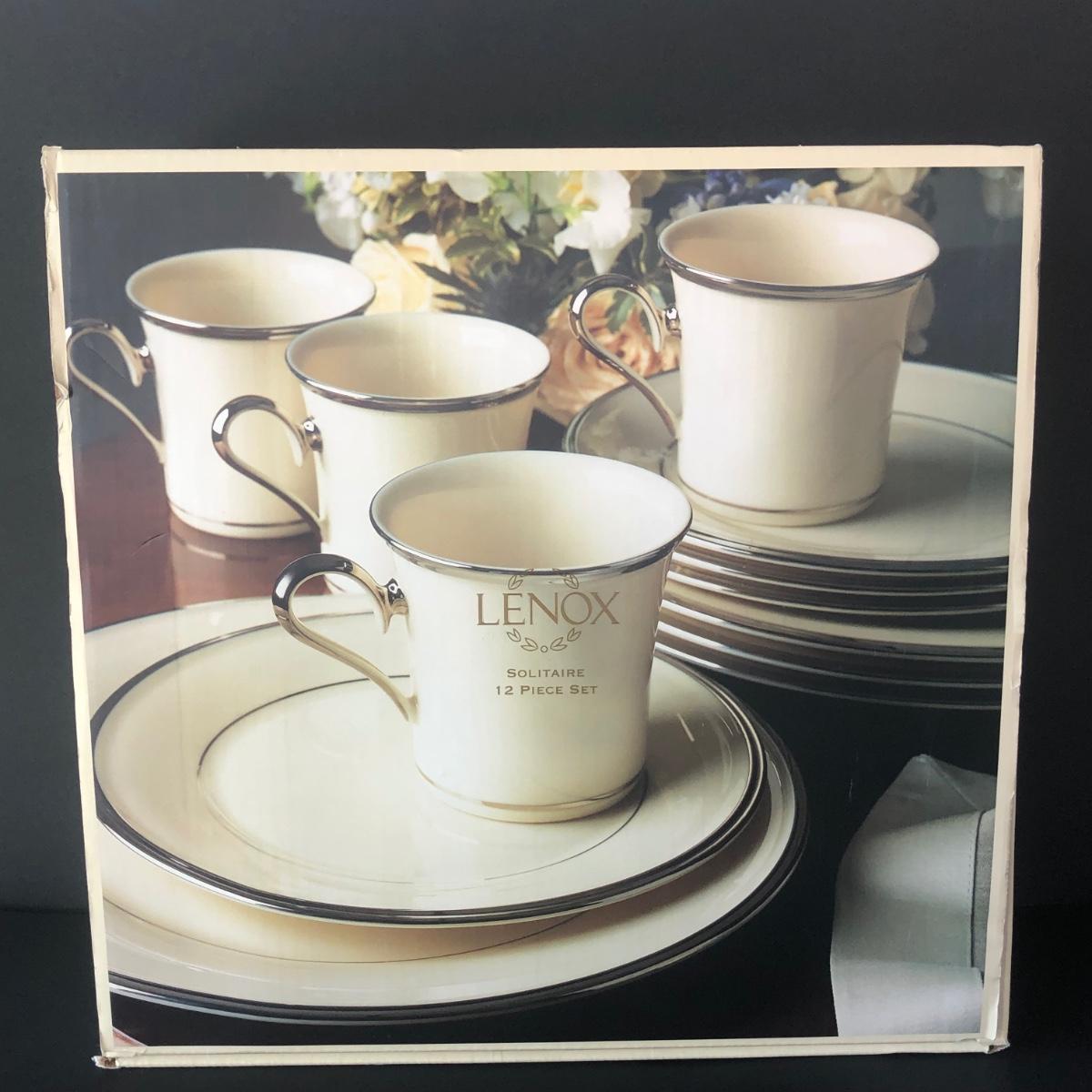 LOT 205K: Lenox Solitaire - Boxed Set of 12 Plates and Mugs w/ Four Bowls, Gravy Boat & Oval Platter