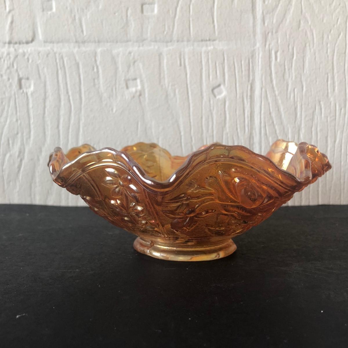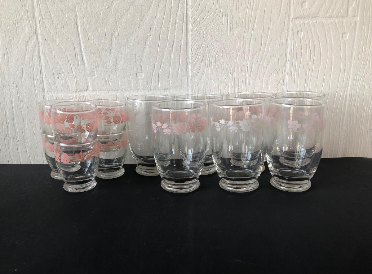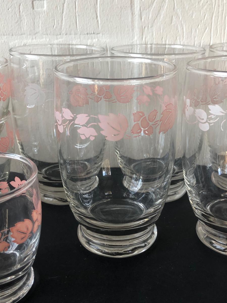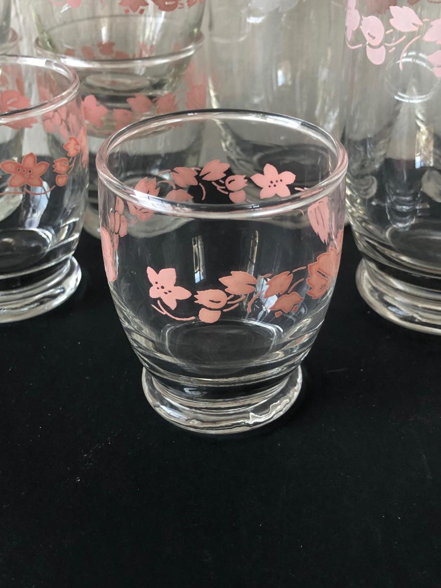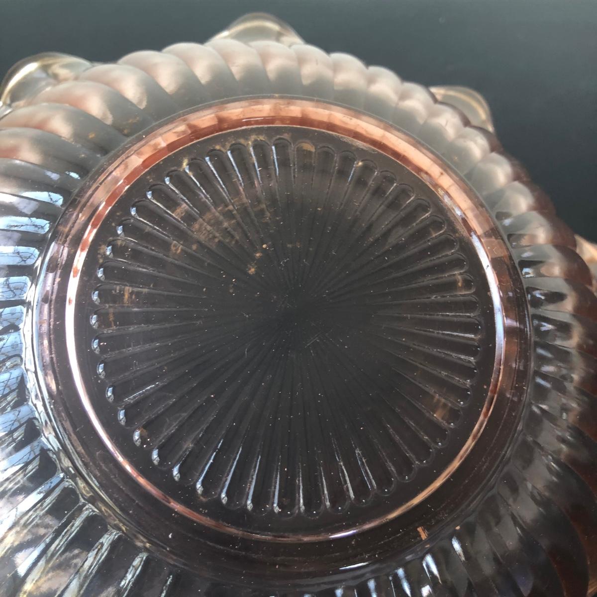 LOT 215K: Pink Depression Glass Wavy Bowl, Carnival Glass Bowls & Pink Floral Glasses in 2 Sizes