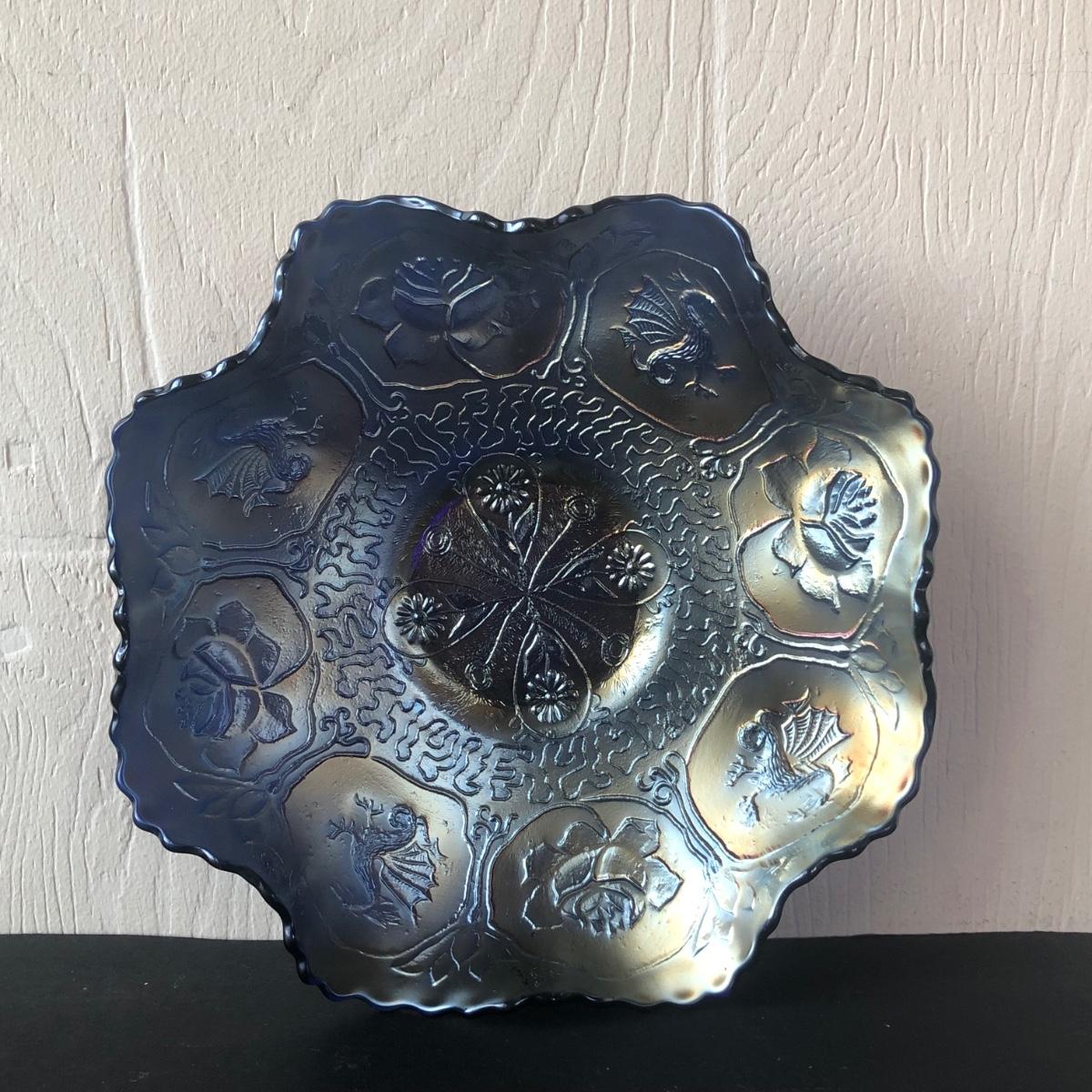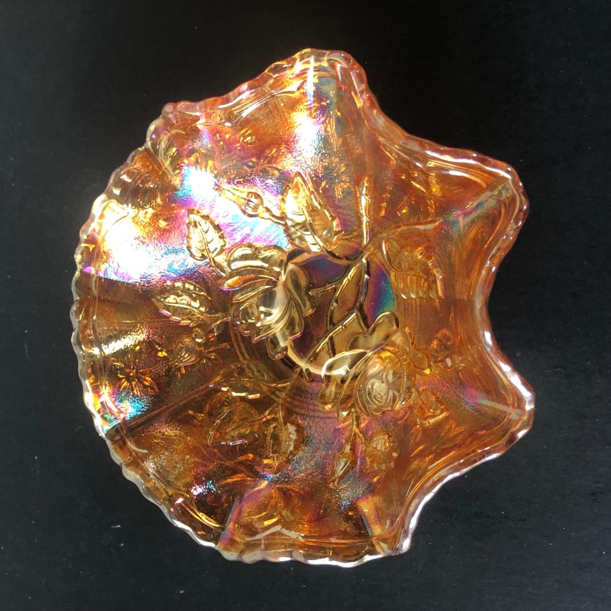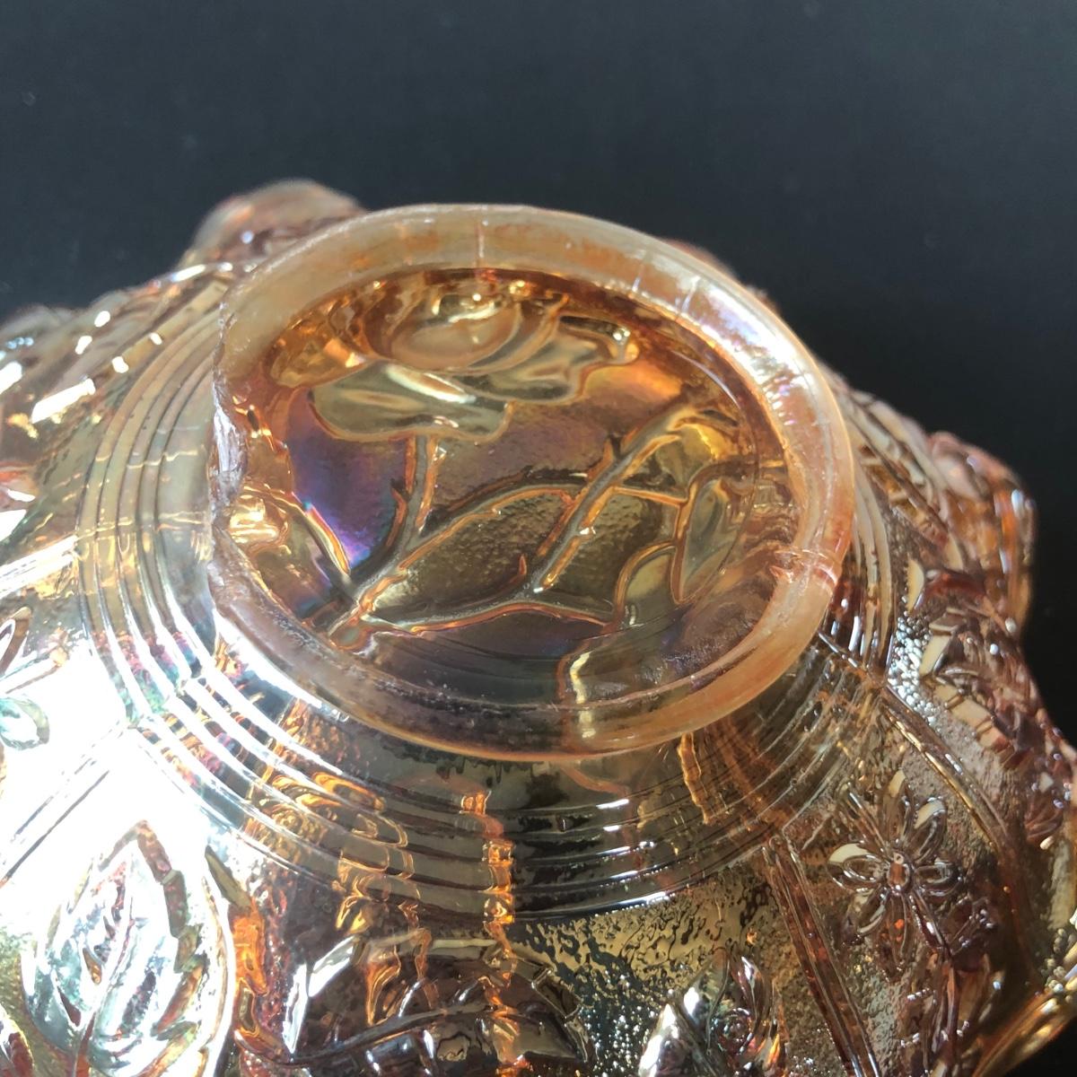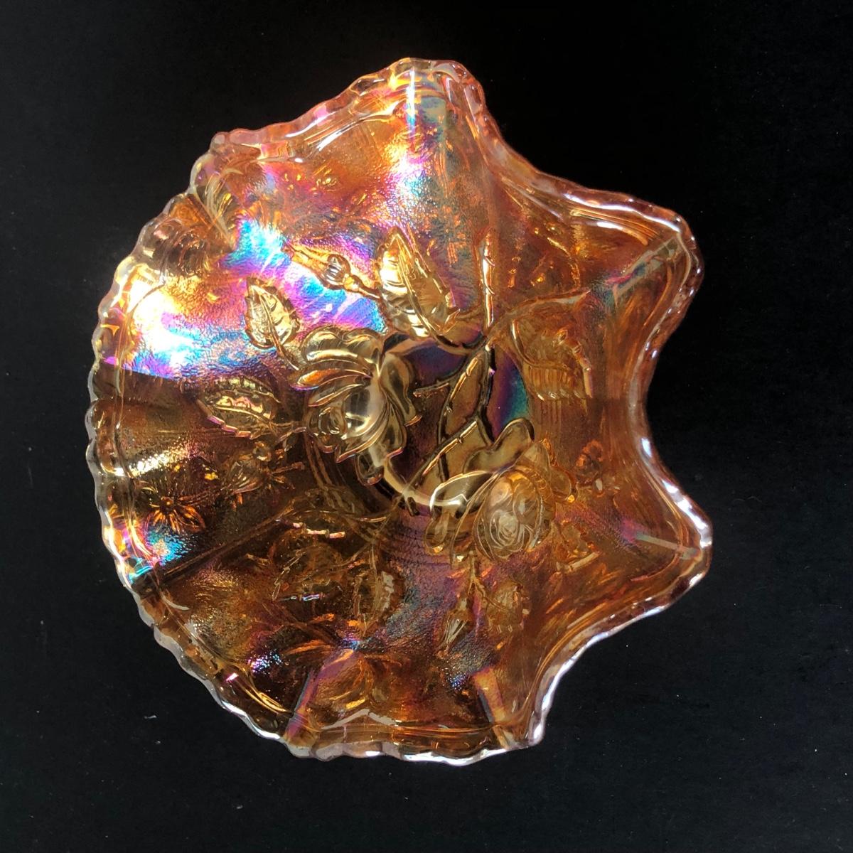 LOT 215K: Pink Depression Glass Wavy Bowl, Carnival Glass Bowls & Pink Floral Glasses in 2 Sizes
