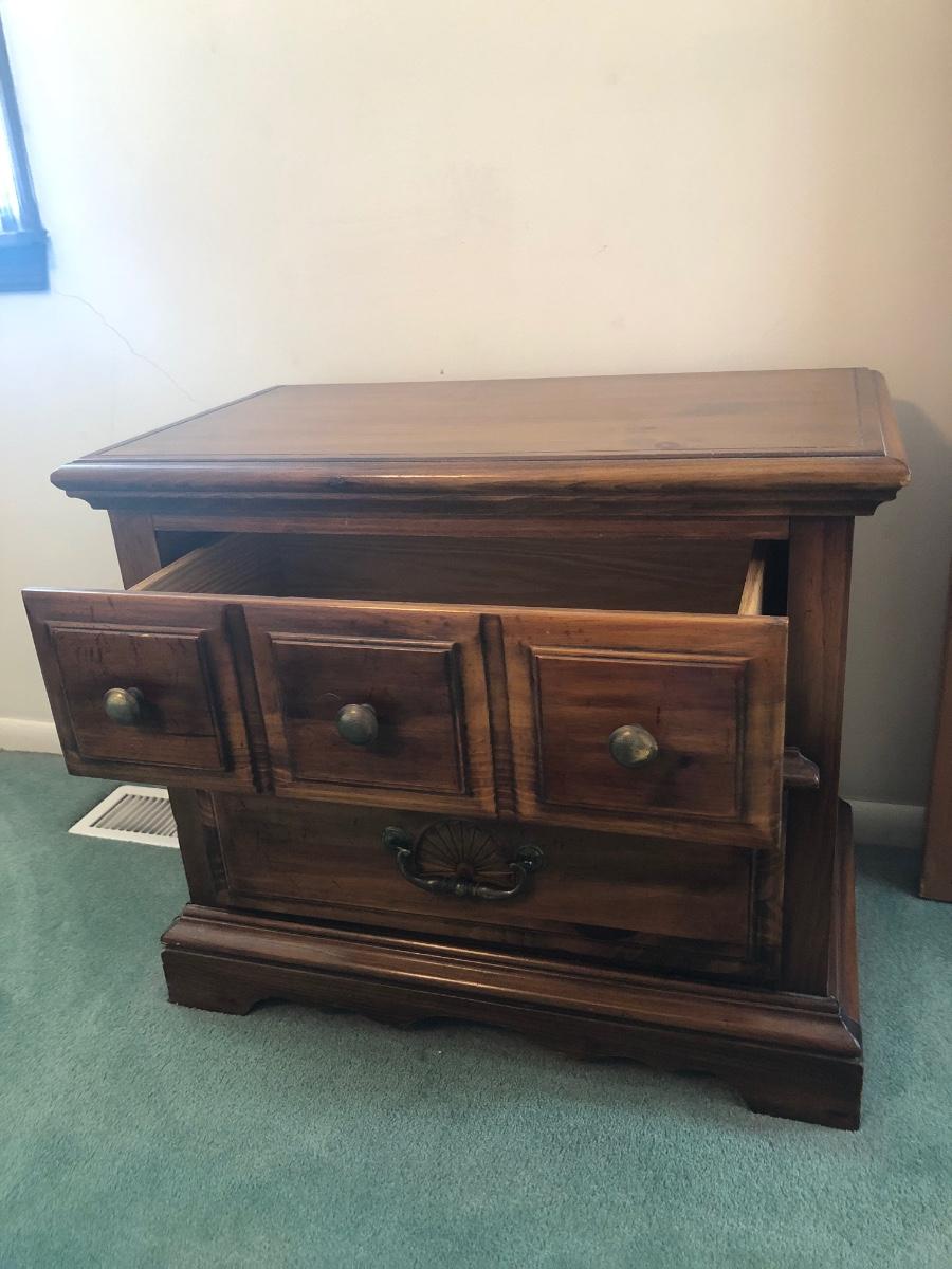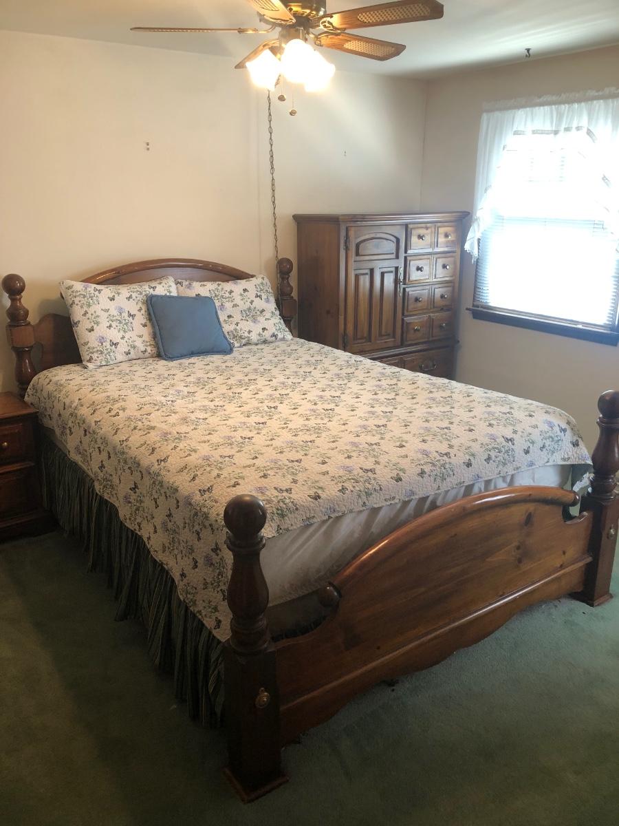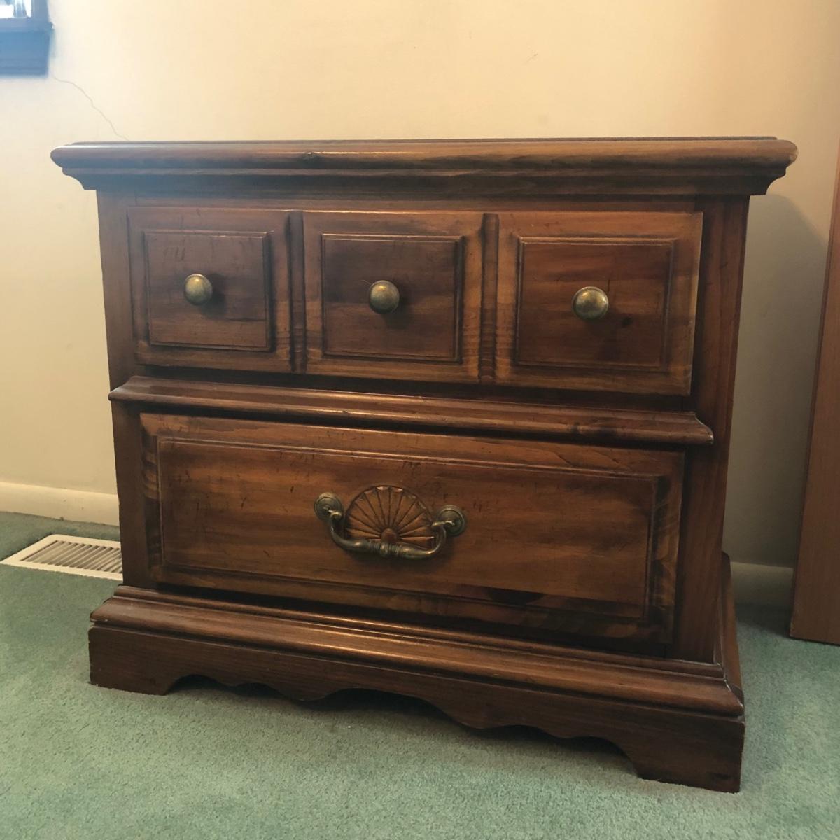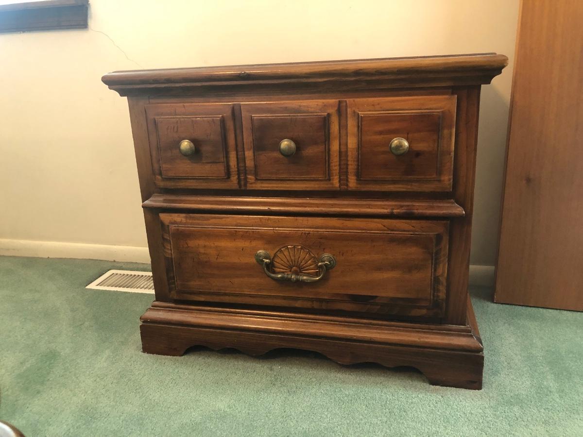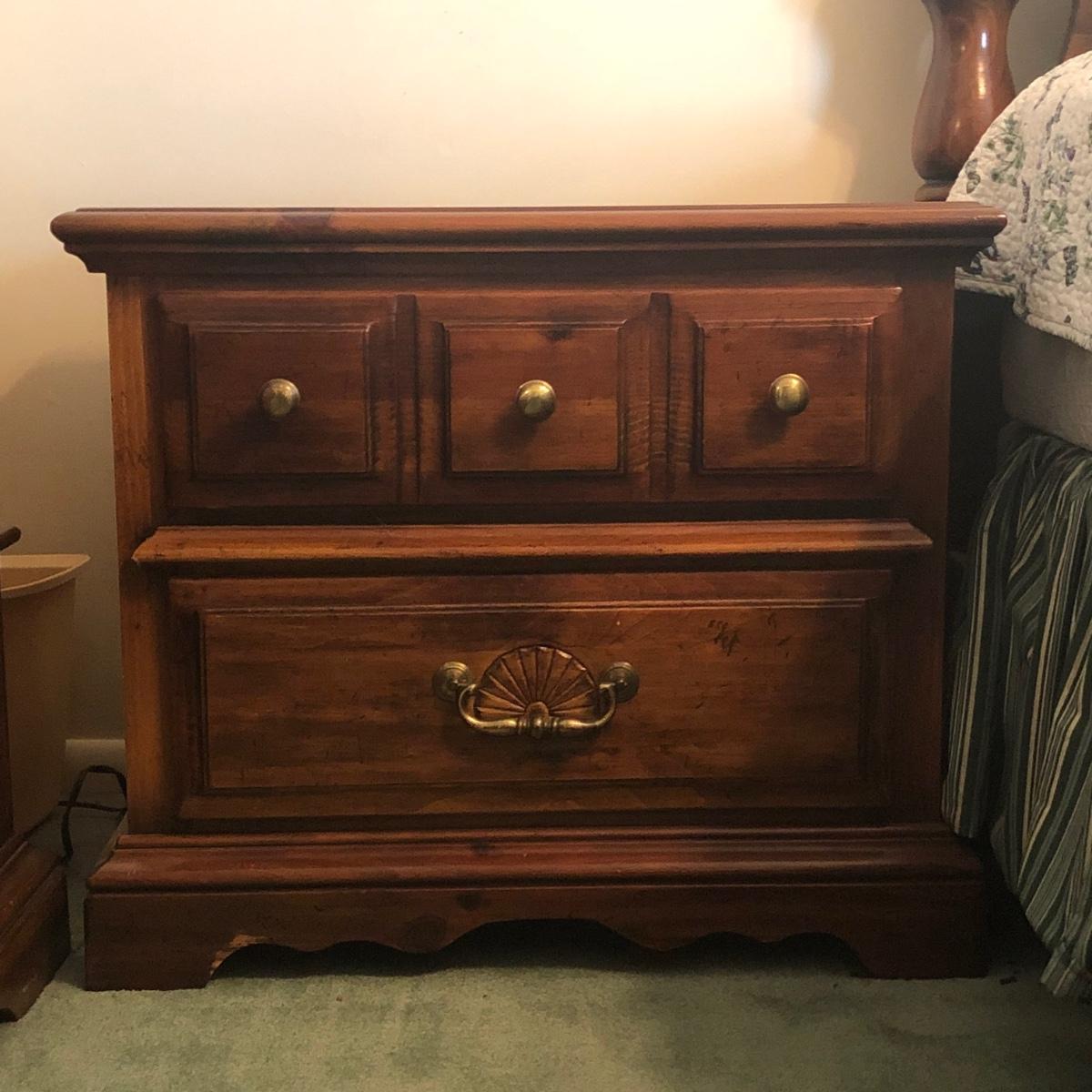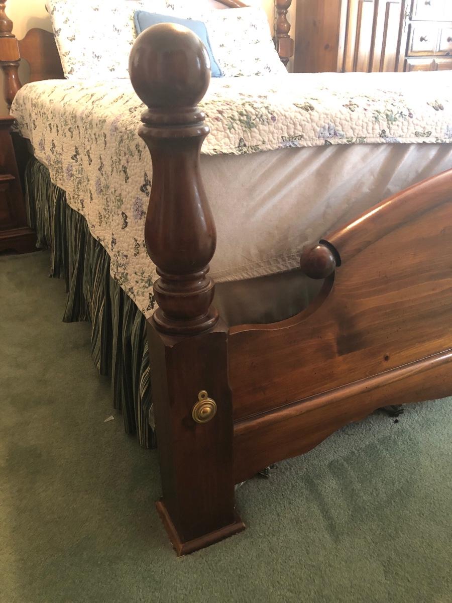 LOT 221Y: Vintage Wood Bedroom Set - Bed Frame, Bureau, 2 Night Stands & Vanity