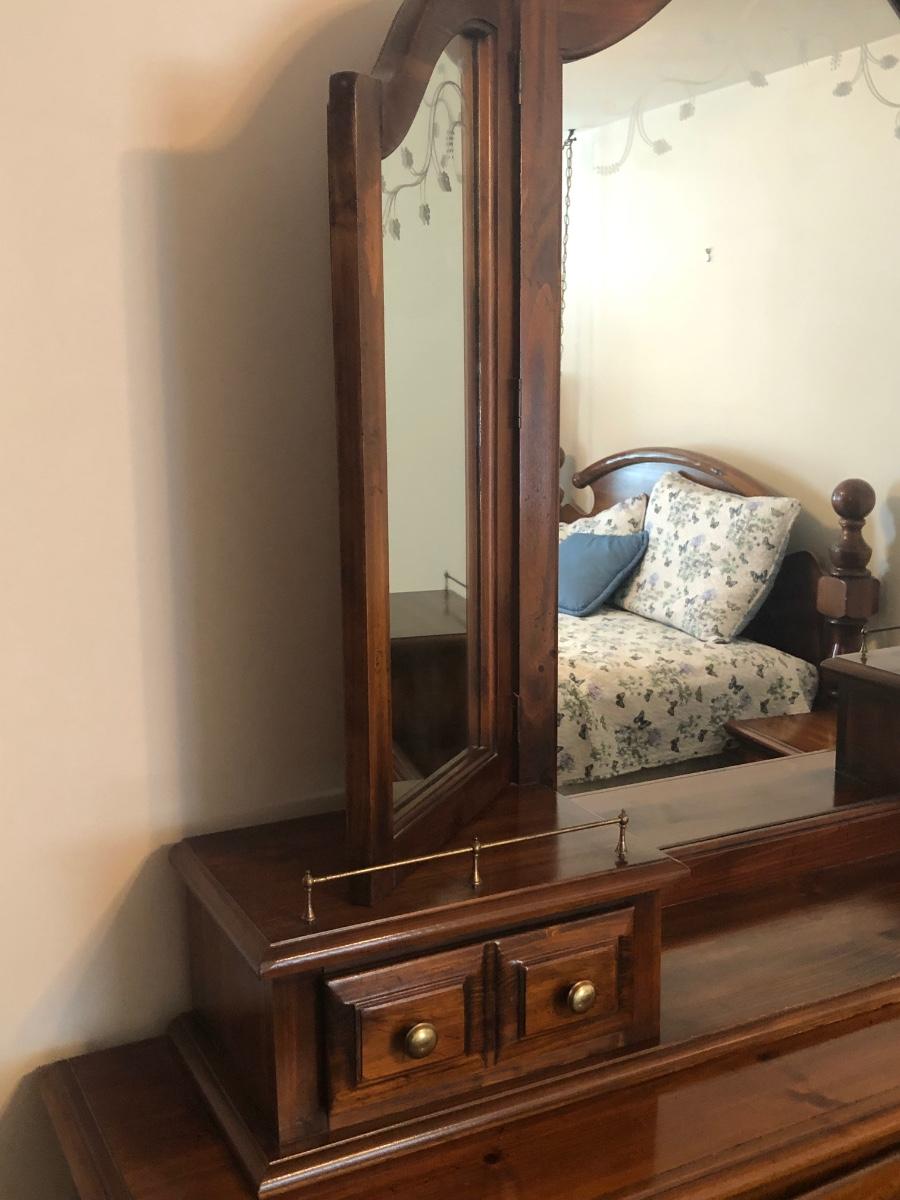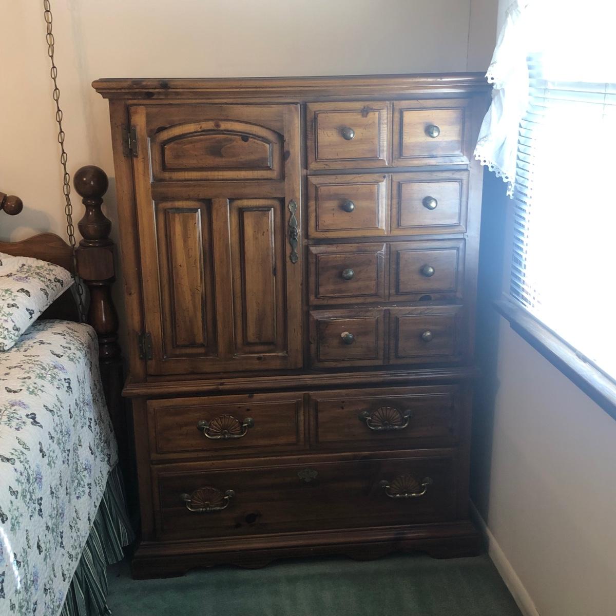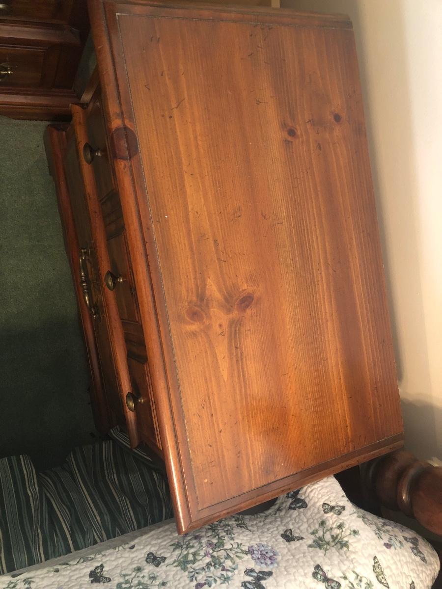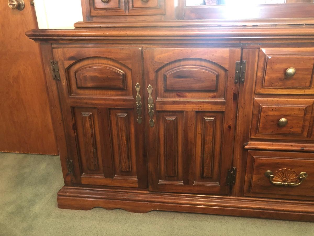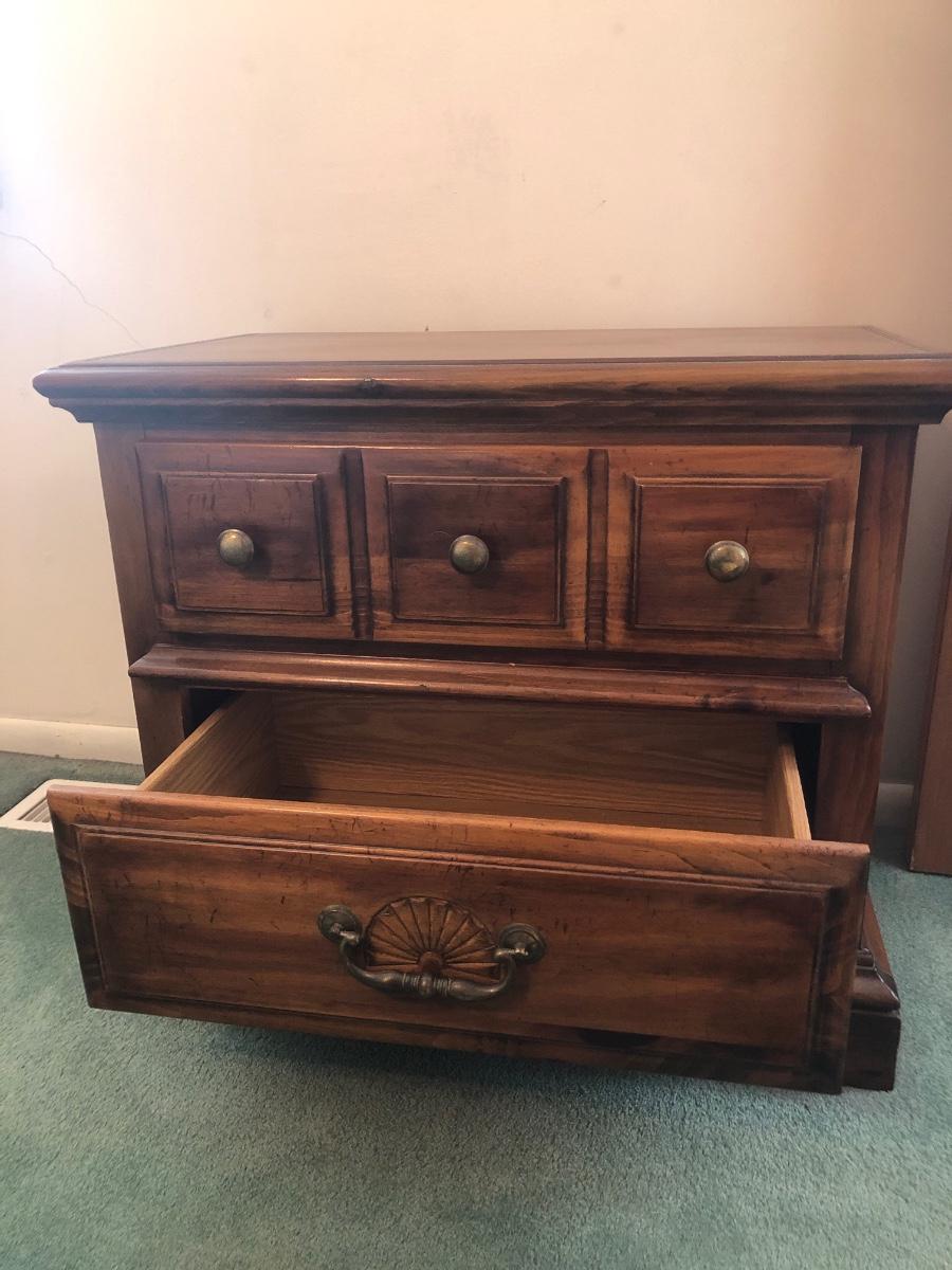 LOT 221Y: Vintage Wood Bedroom Set - Bed Frame, Bureau, 2 Night Stands & Vanity