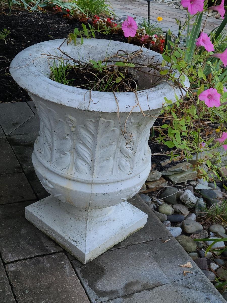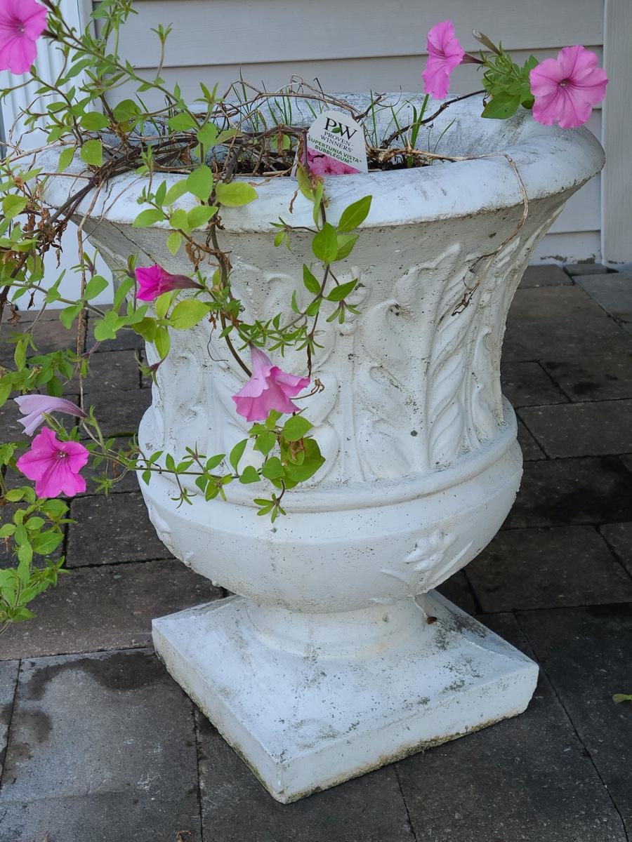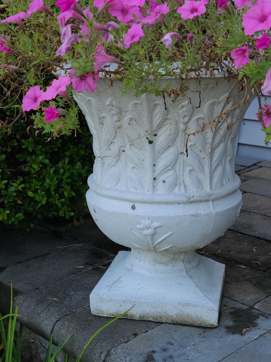 Lot 1001: Two Concrete Urn Planters with Flowers
