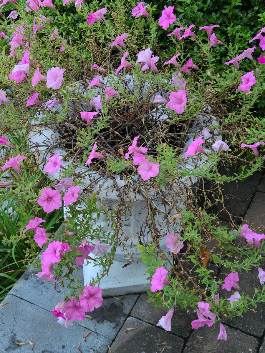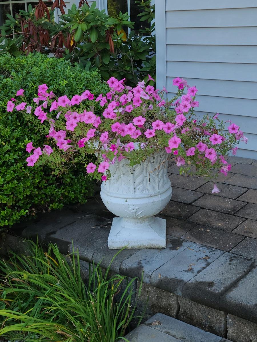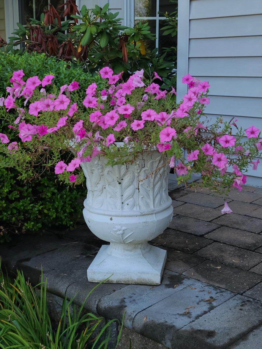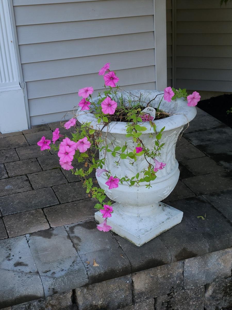 Lot 1001: Two Concrete Urn Planters with Flowers