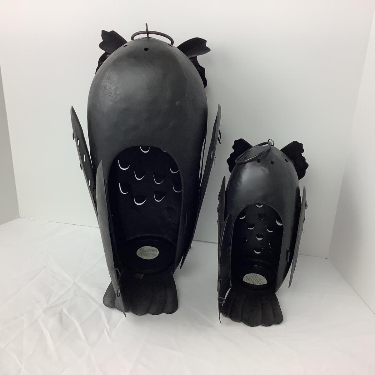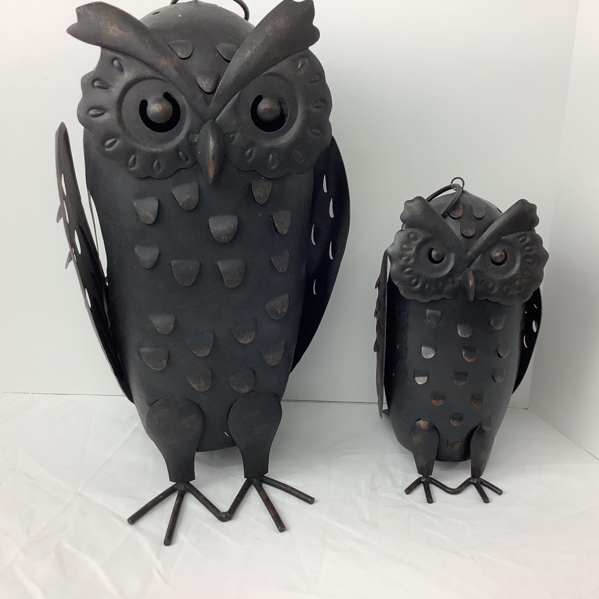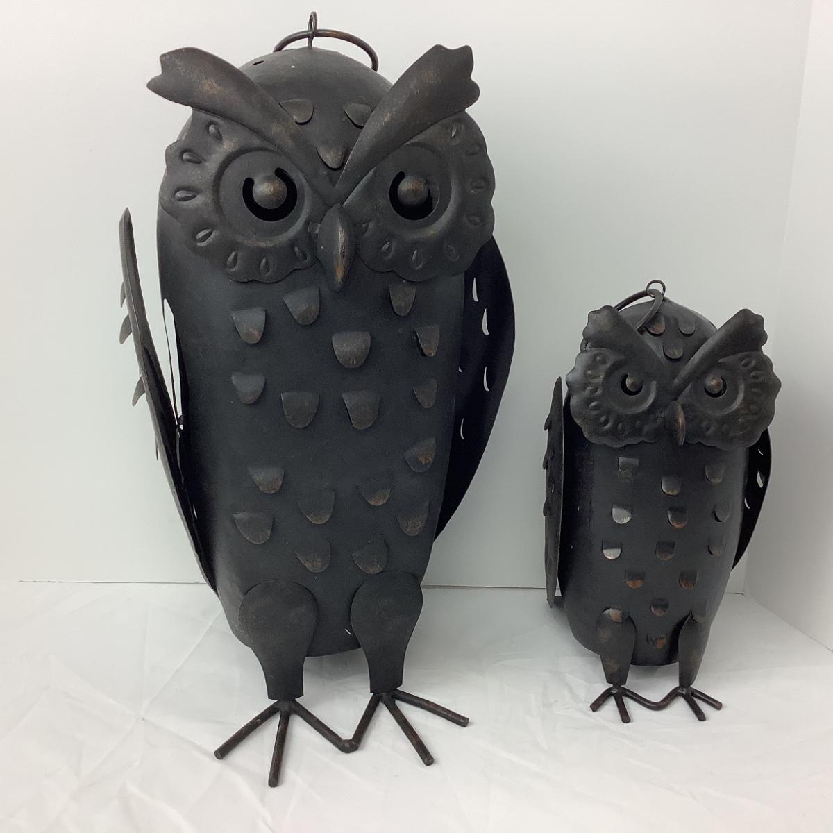 Lot # 1002. Pair of Pottery Barn Punched Metal Owl Candle Holders, Fall Decor